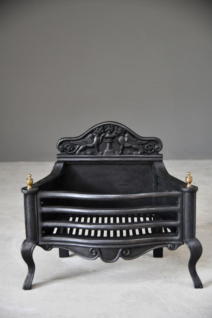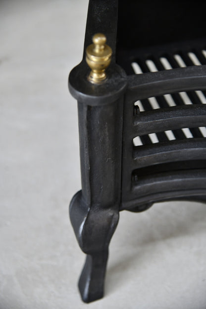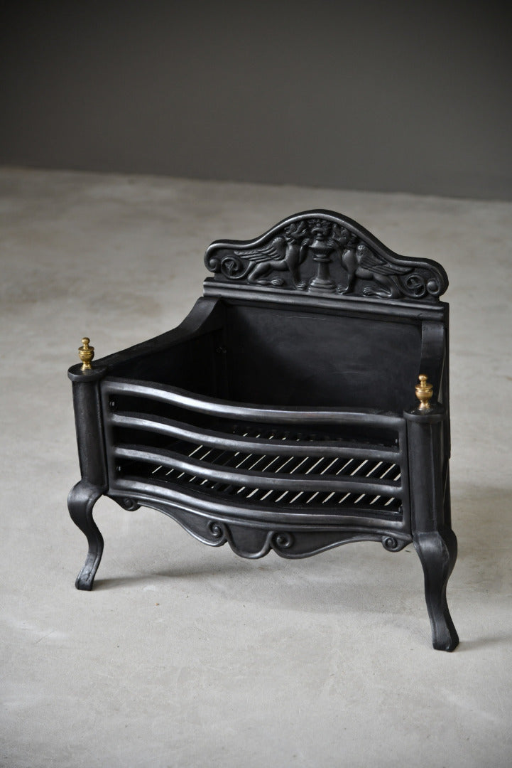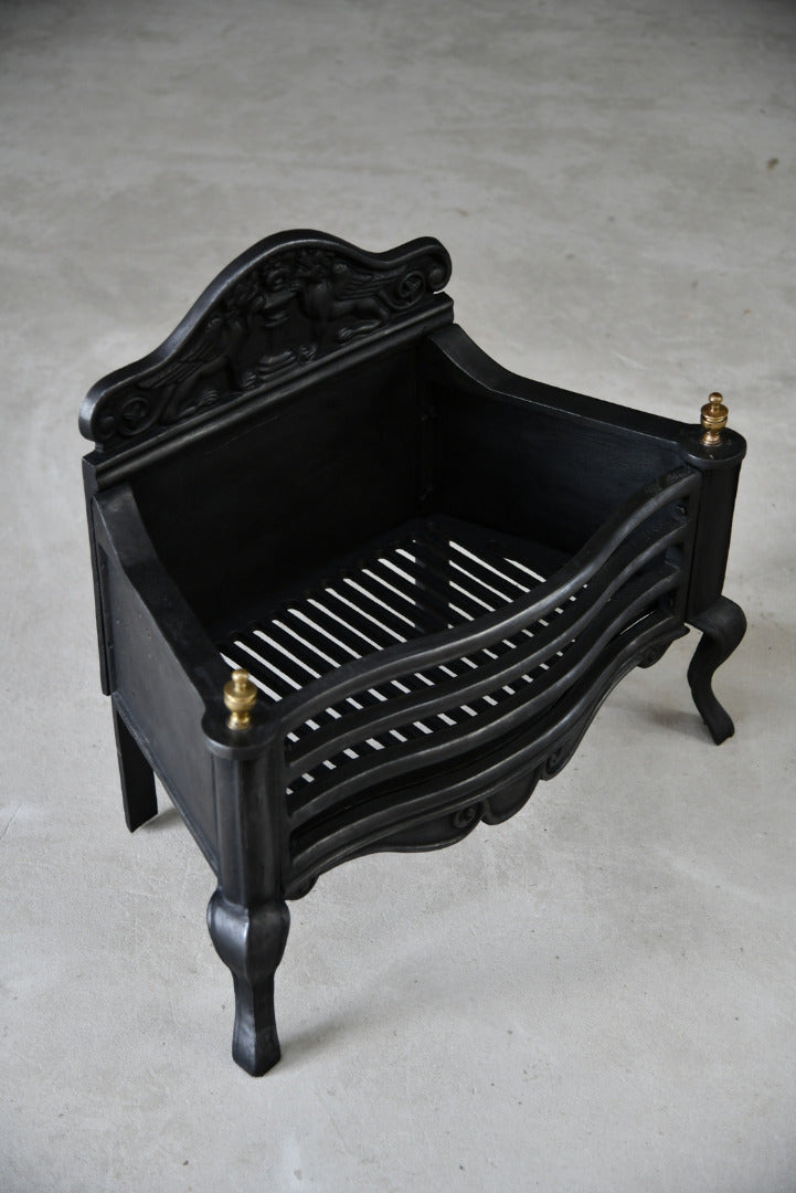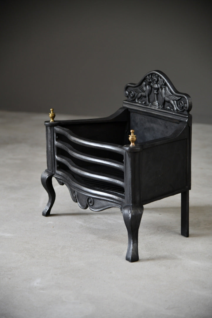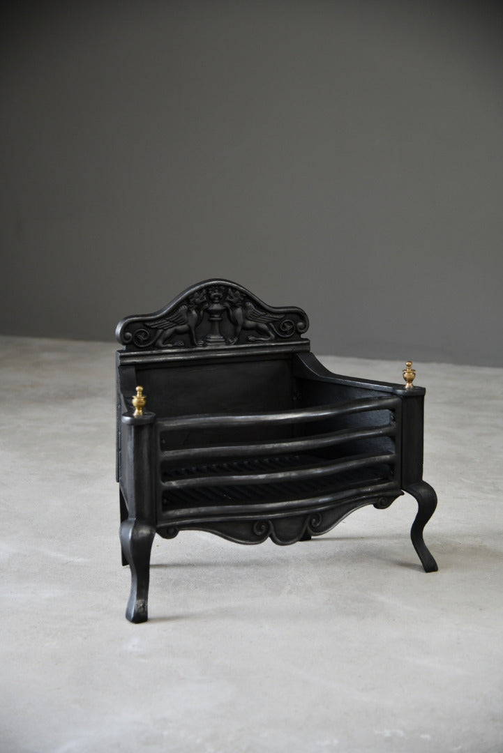 Cast Iron Fire Basket. Antique style cast iron fire basket on cabriole legs with brass finials.
