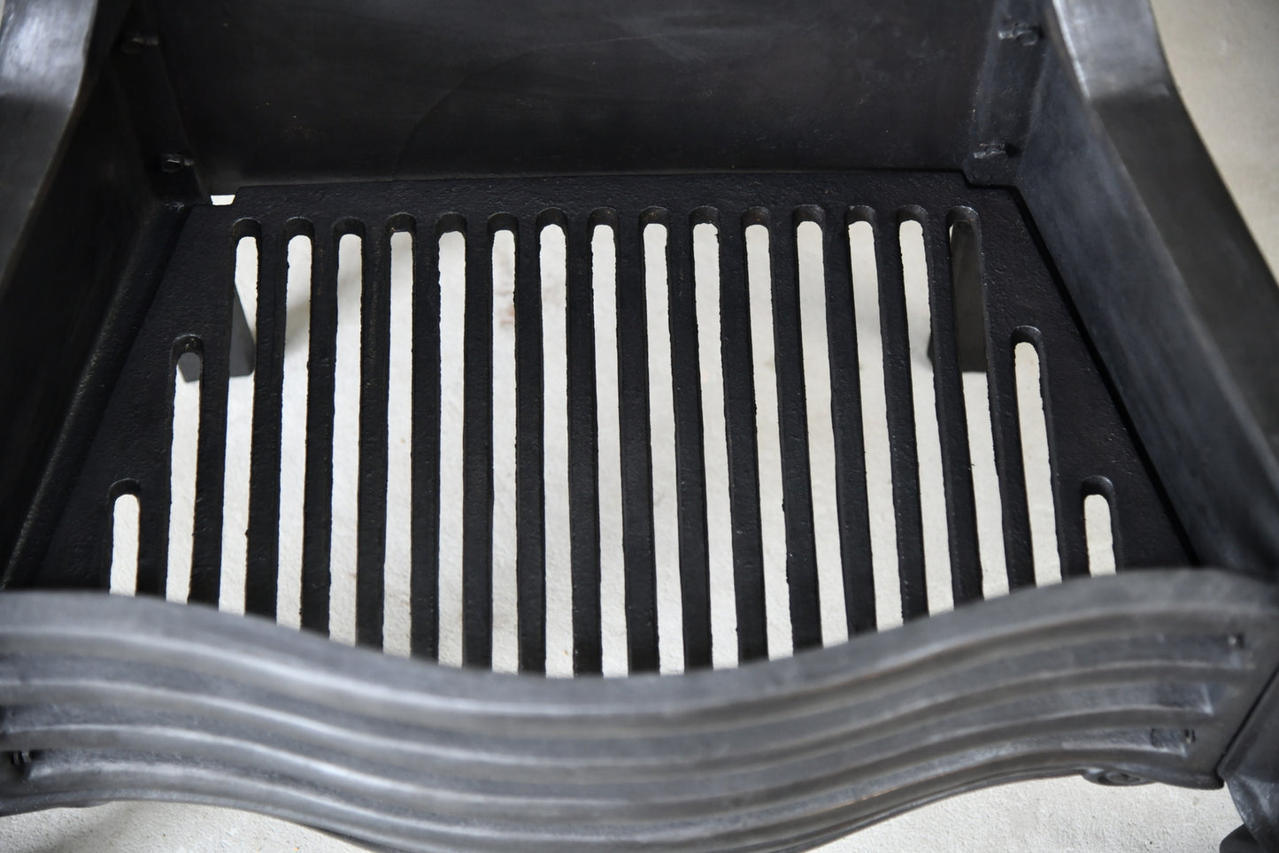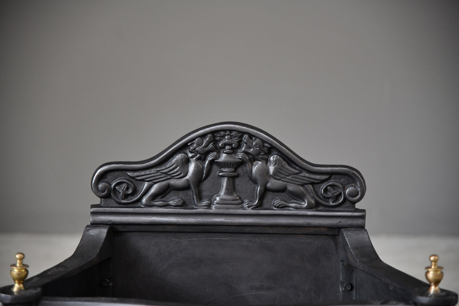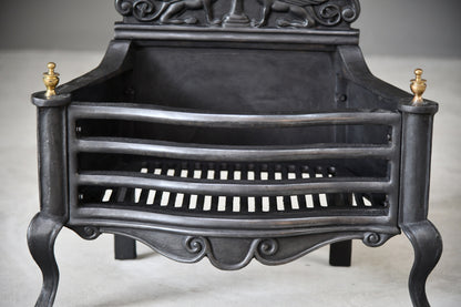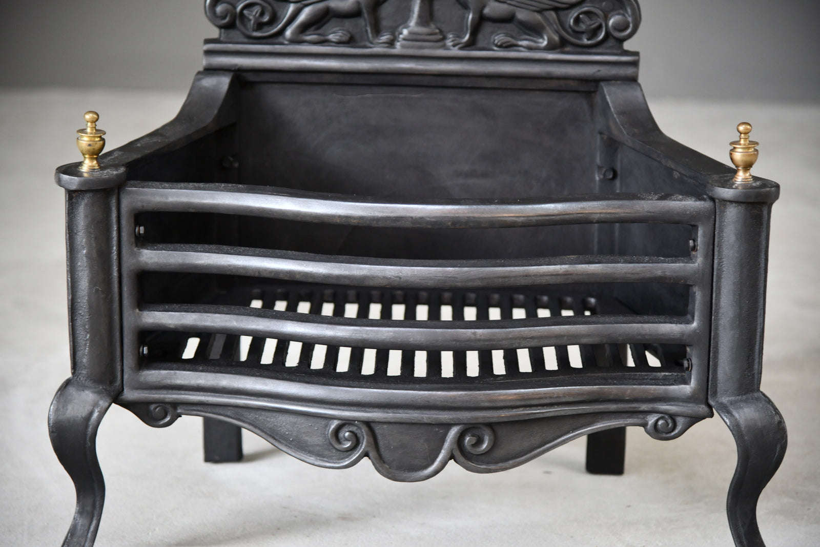 Cast Iron Fire Basket. Antique style cast iron fire basket on cabriole legs with brass finials.