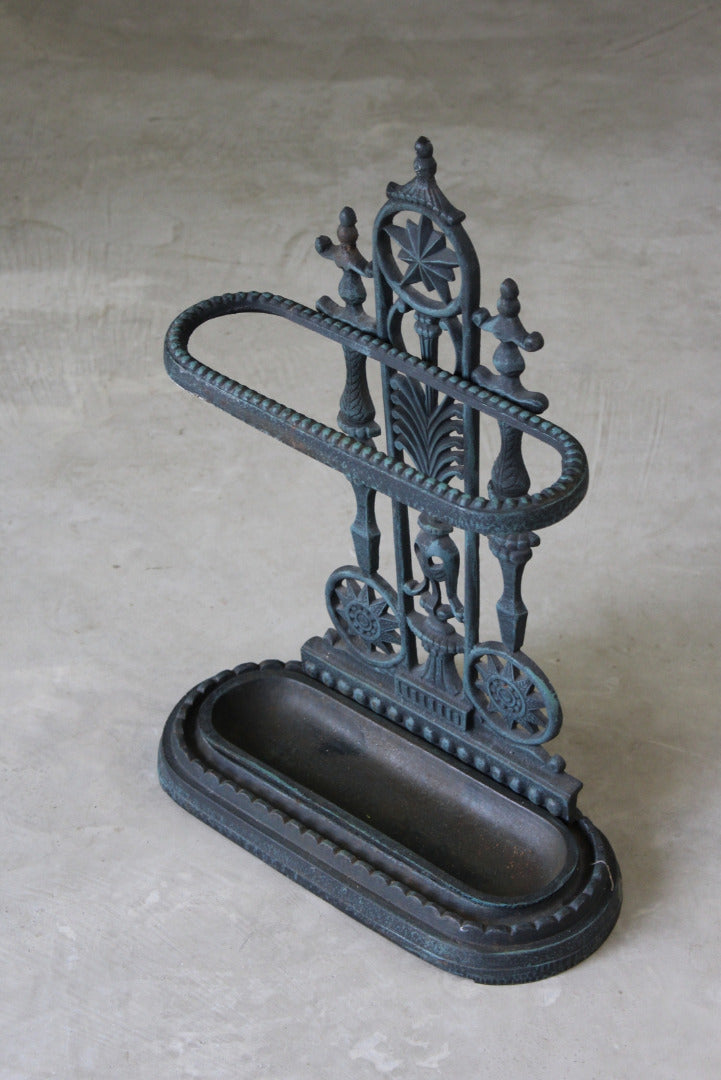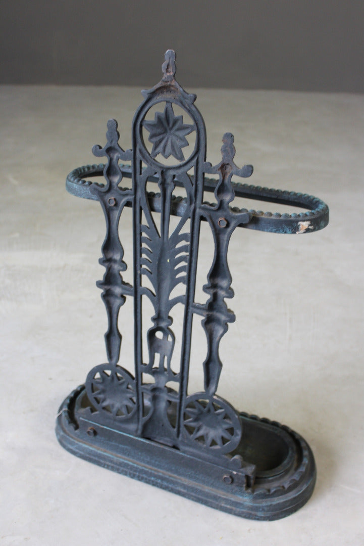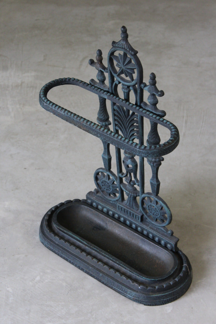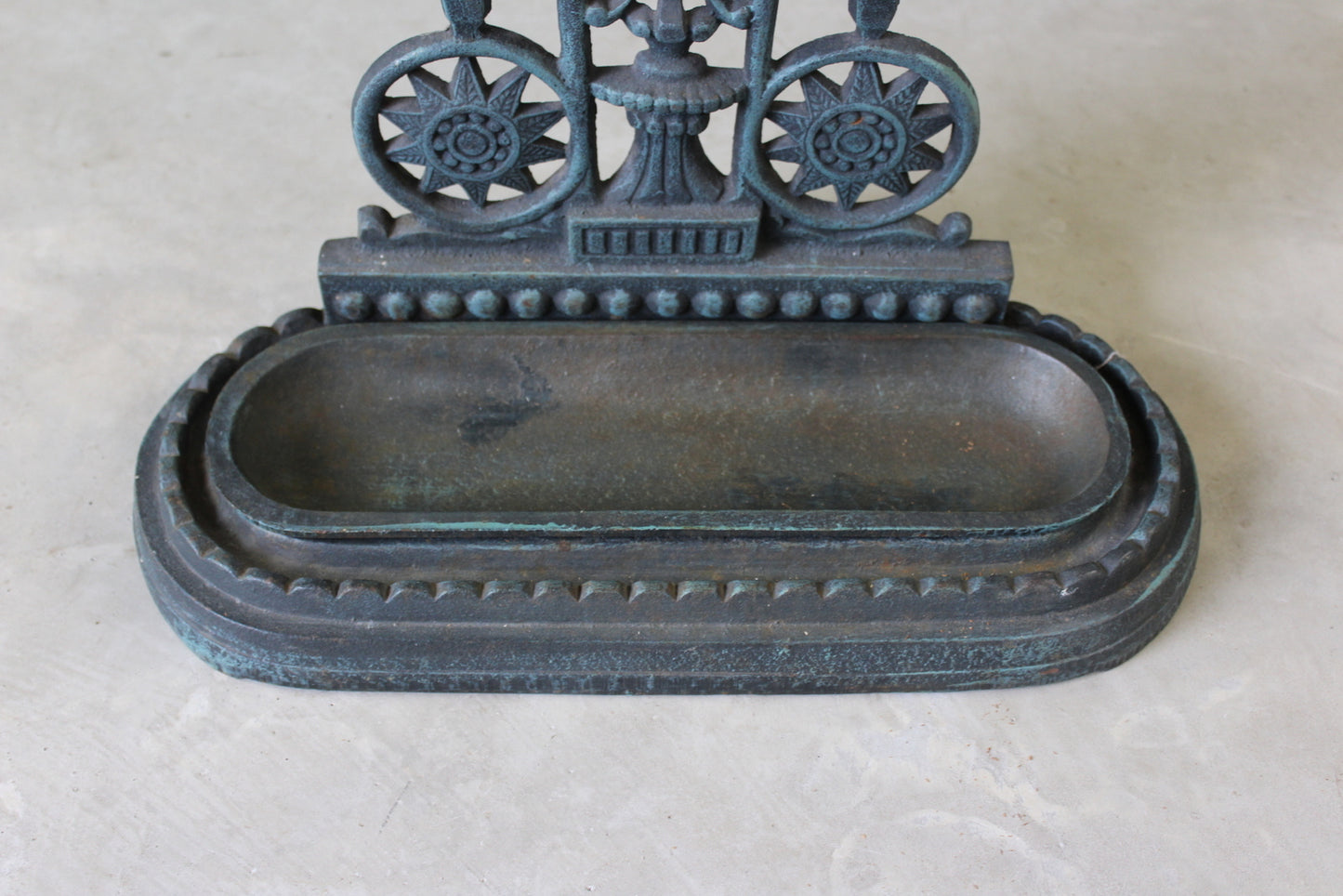 Cast iron stick stand. Victorian style ornate pierced hall stand with drip tray.
