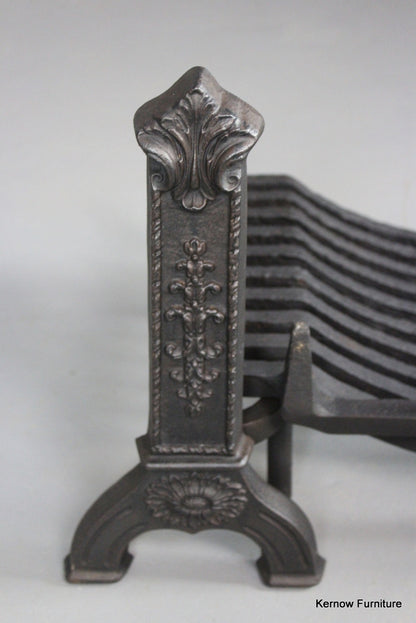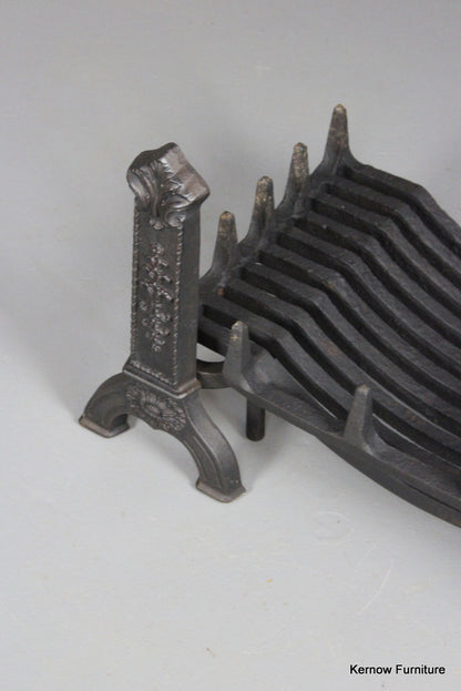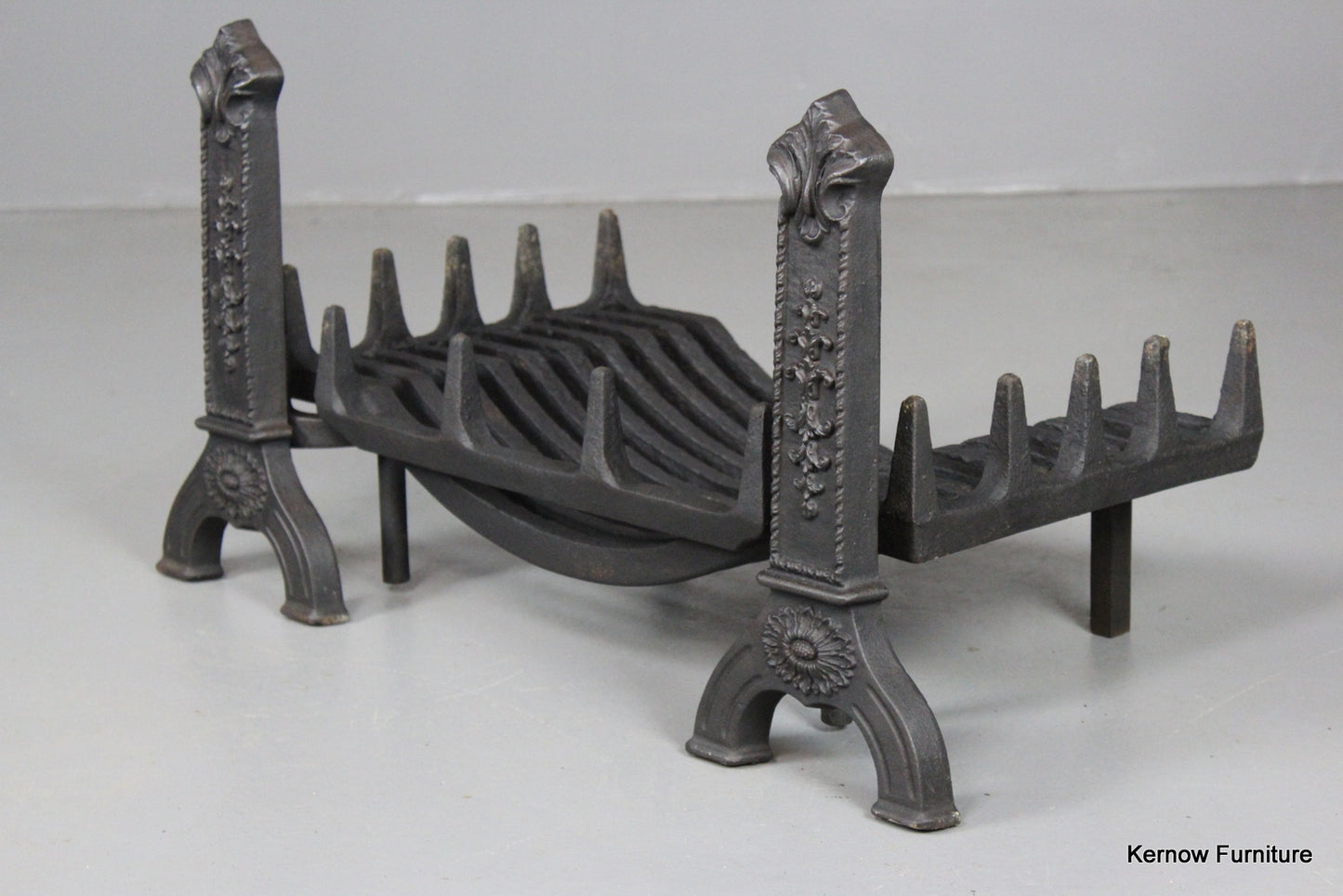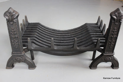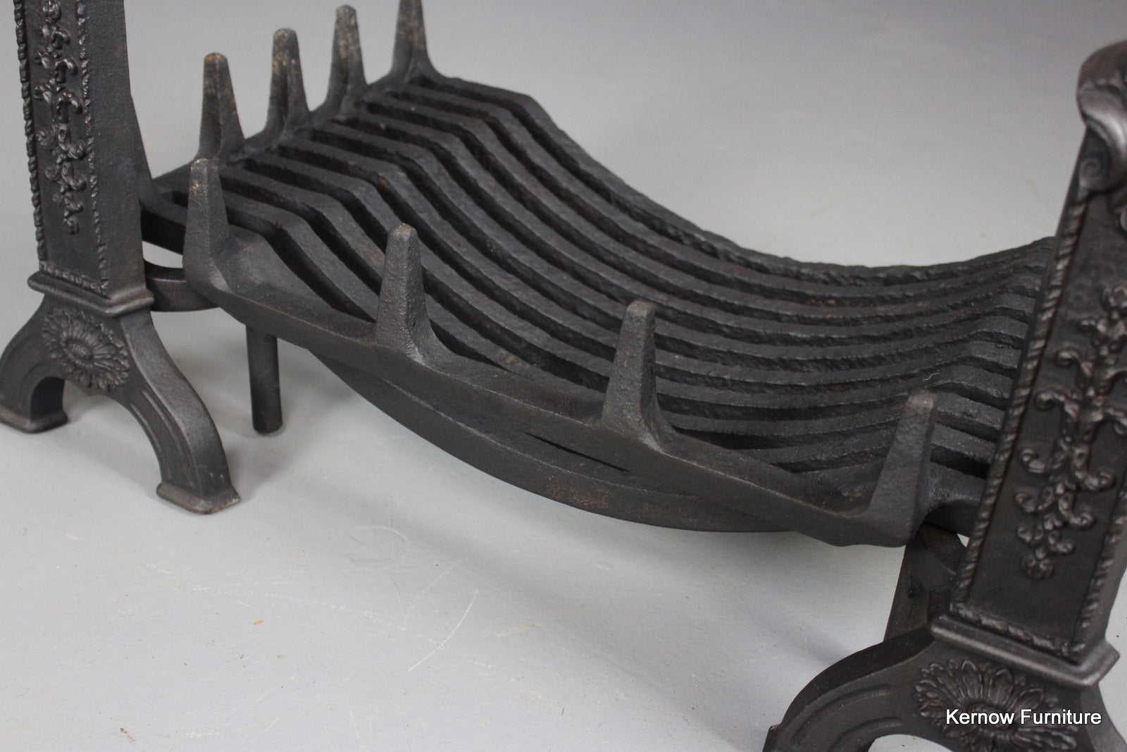Cast iron swans nest fire grate. 20th Century cast iron shaped swans nest fire grate with fire dogs. Perfect for an open fire place or inglenook.