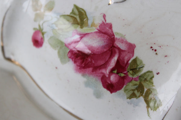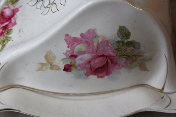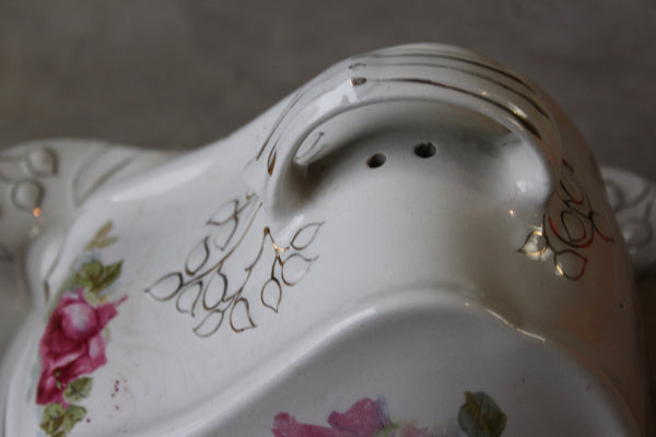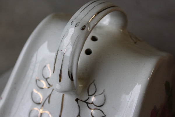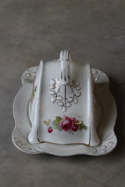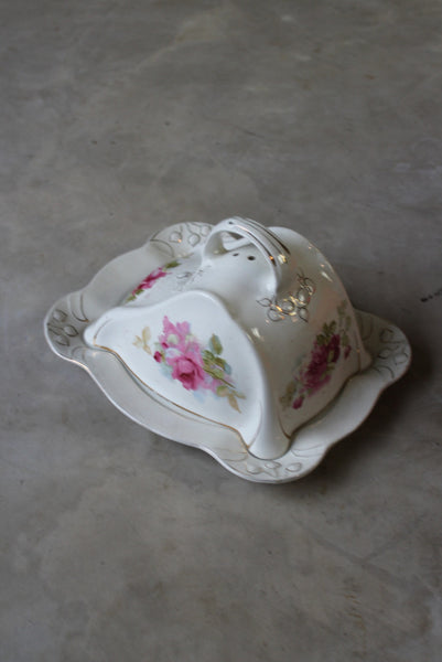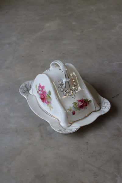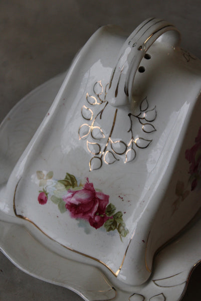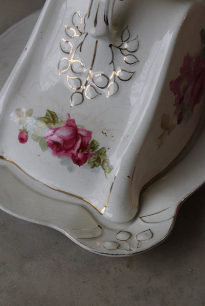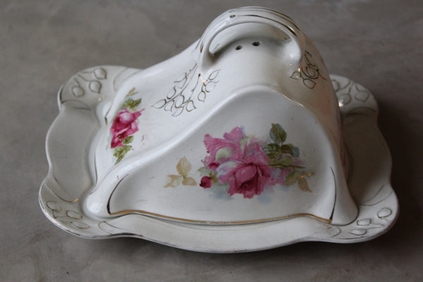 China cheese dish. Vintage china cheese dish with lid, rose and gilt decoration.