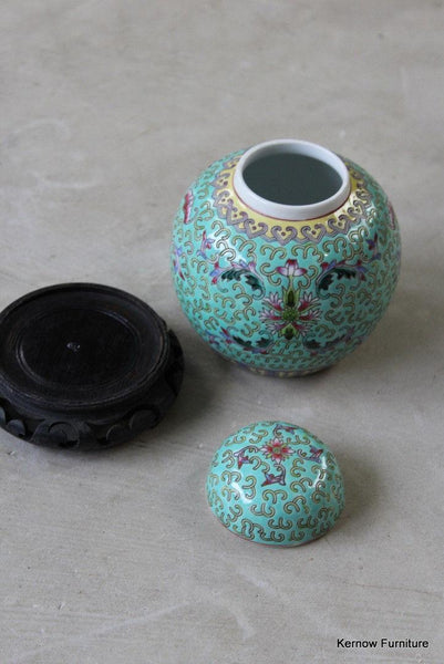 Chinese Famille Rose Ginger Jar on Wooden Stand