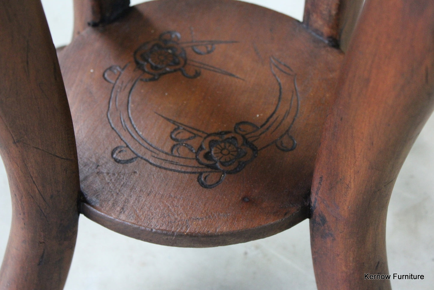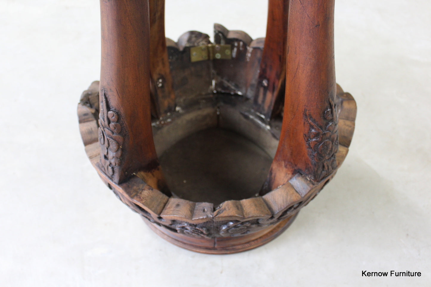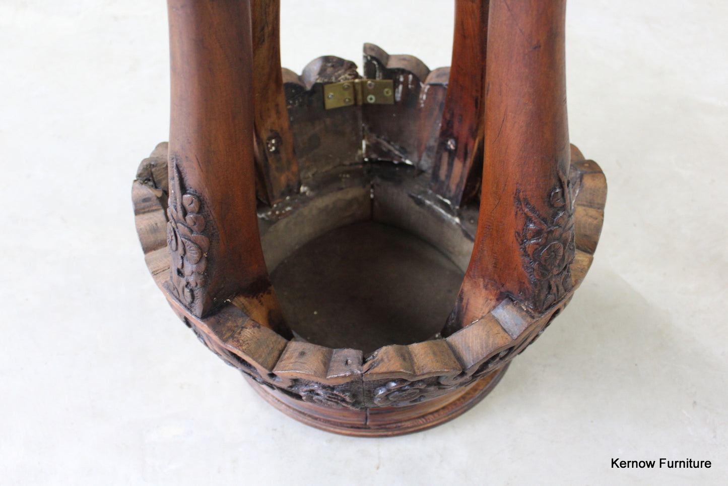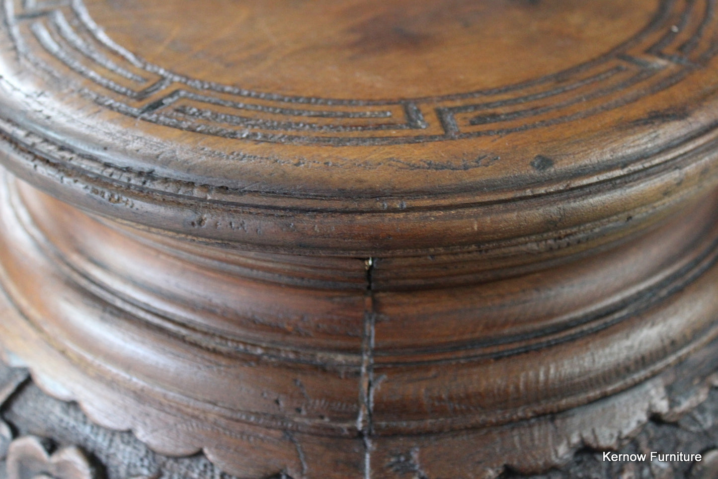 Chinese plant stand. Antique small round hard wood Chinese plant stand with floral carved decoration on short outswept legs.
