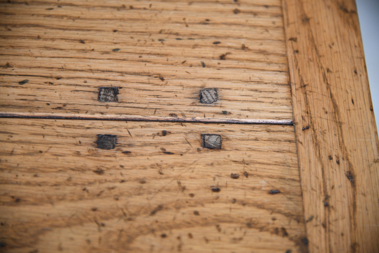 Country style oak refectory table. 20th Century solid light oak refectory dining table, good quality, 17th Century style, pegged joints, plank top with cleated ends on turned legs and joined by a central stretcher.