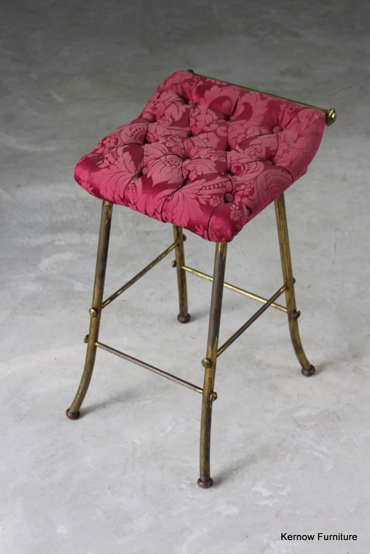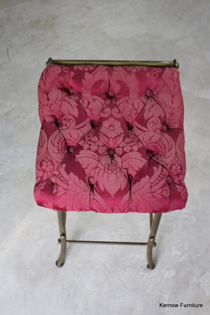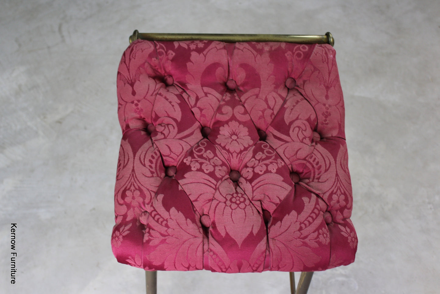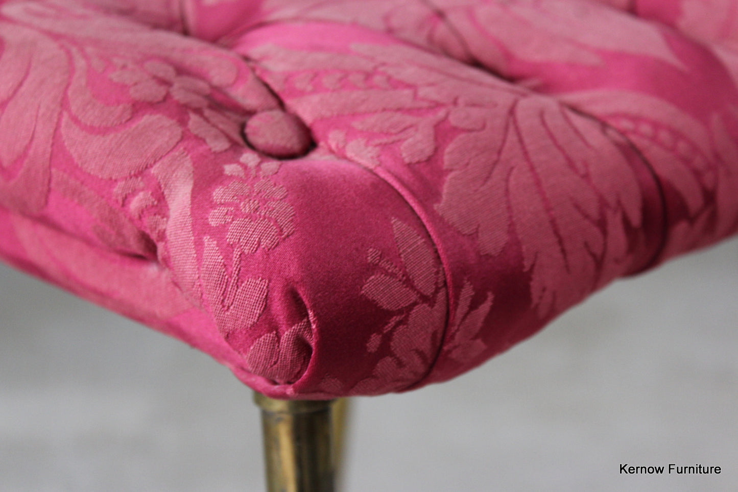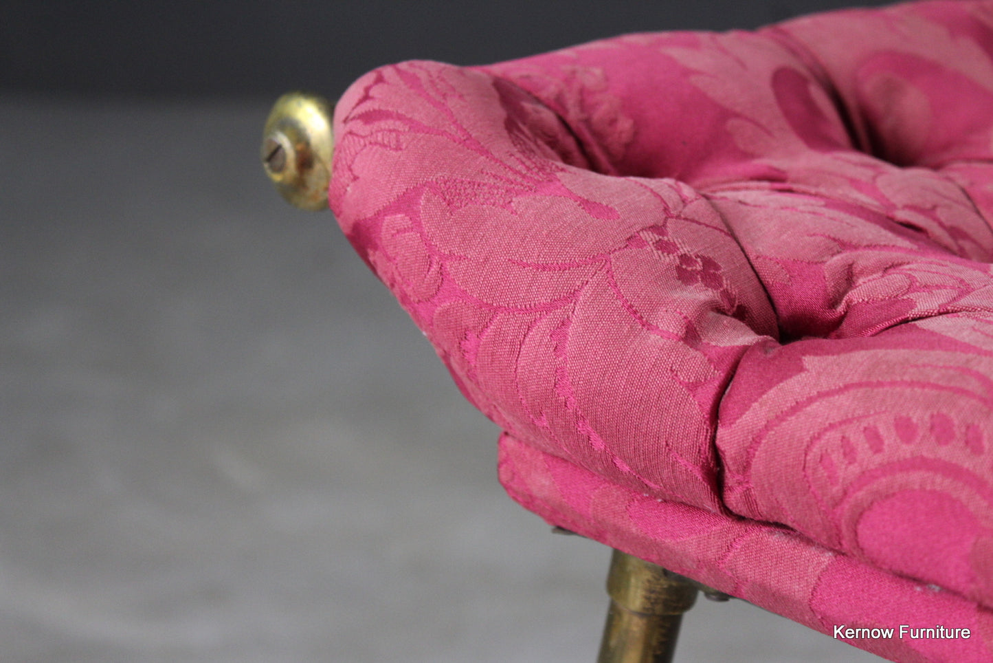Early 20th Century music stool, pink upholstered buttoned seat on fixed gilt metal frame.