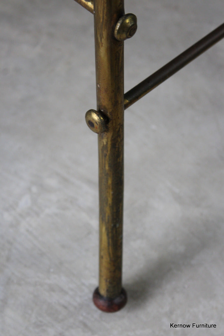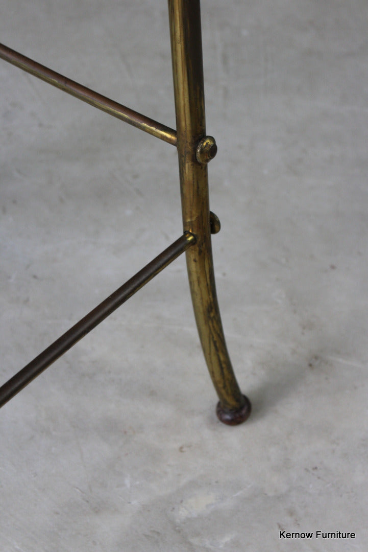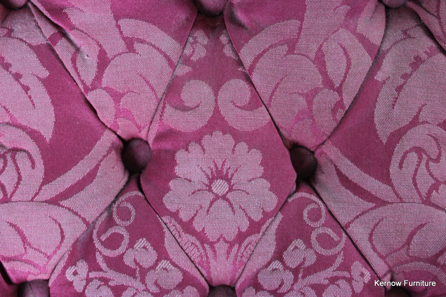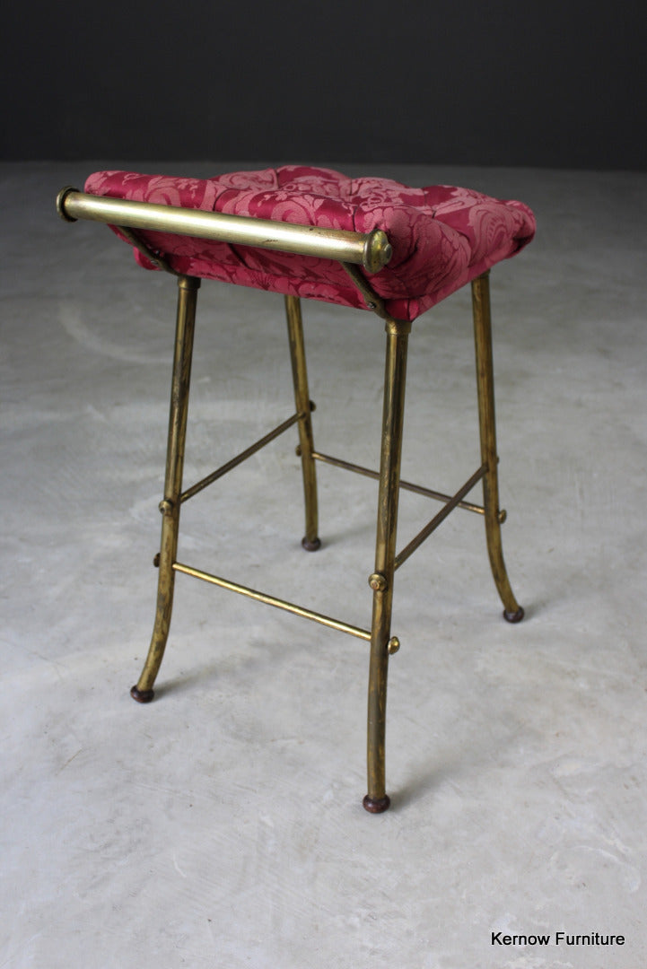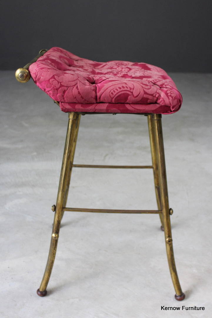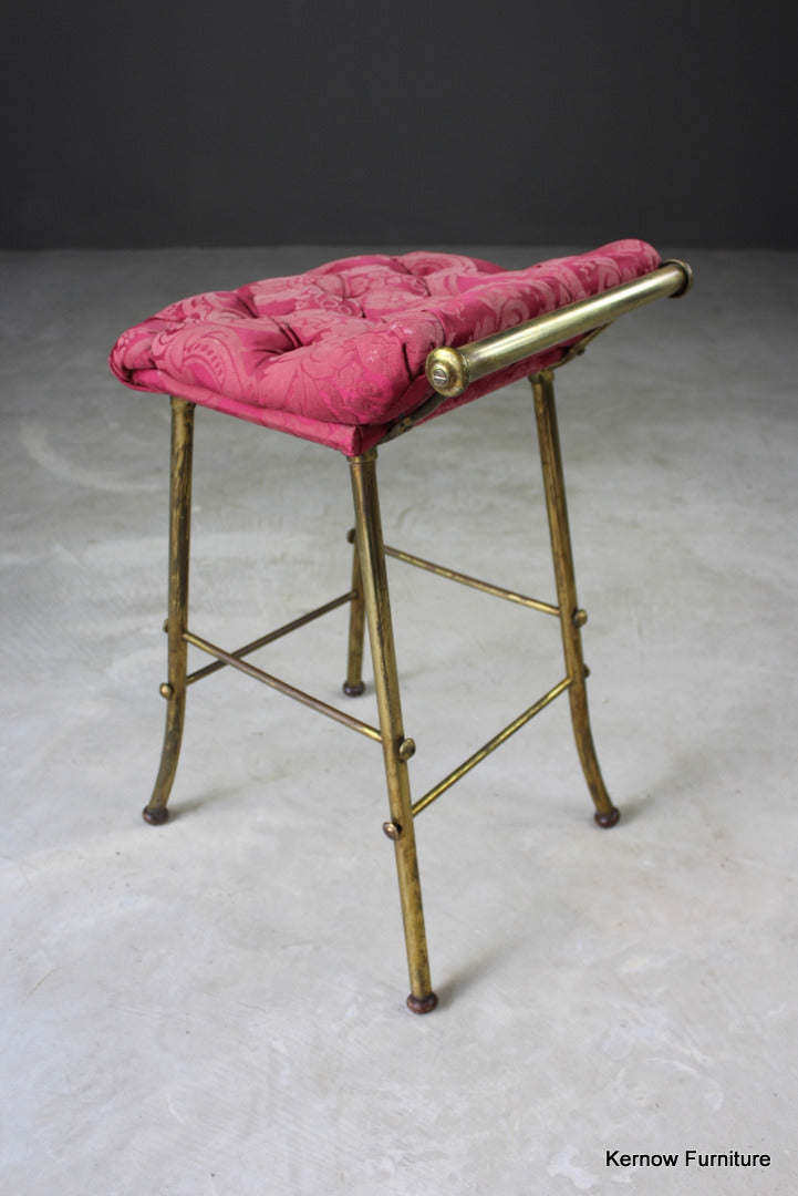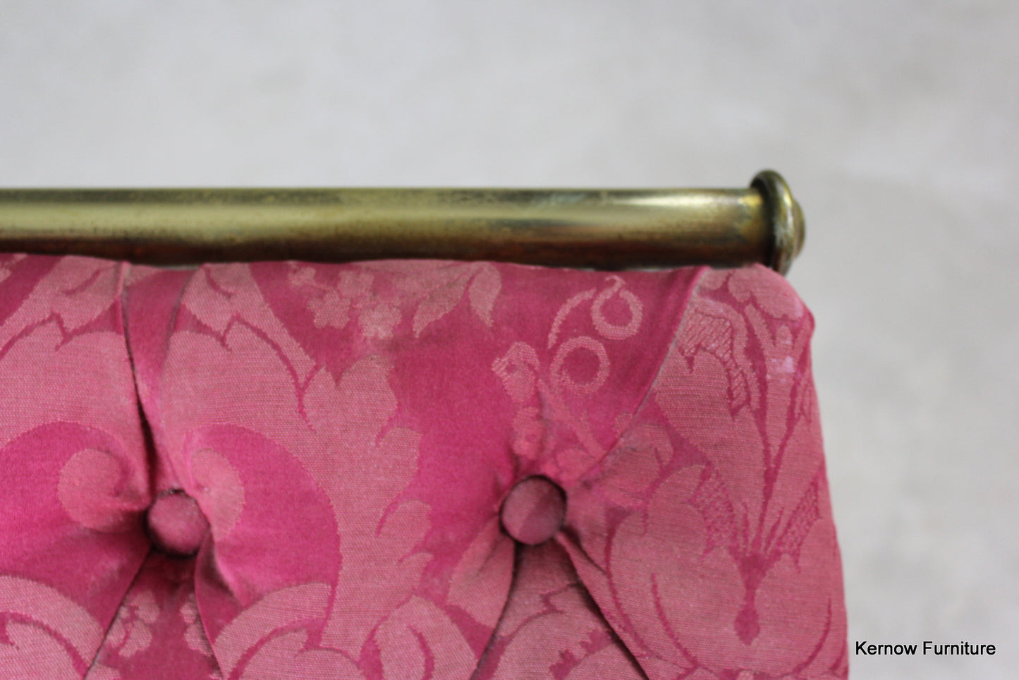 Early 20th Century music stool, pink upholstered buttoned seat on fixed gilt metal frame.