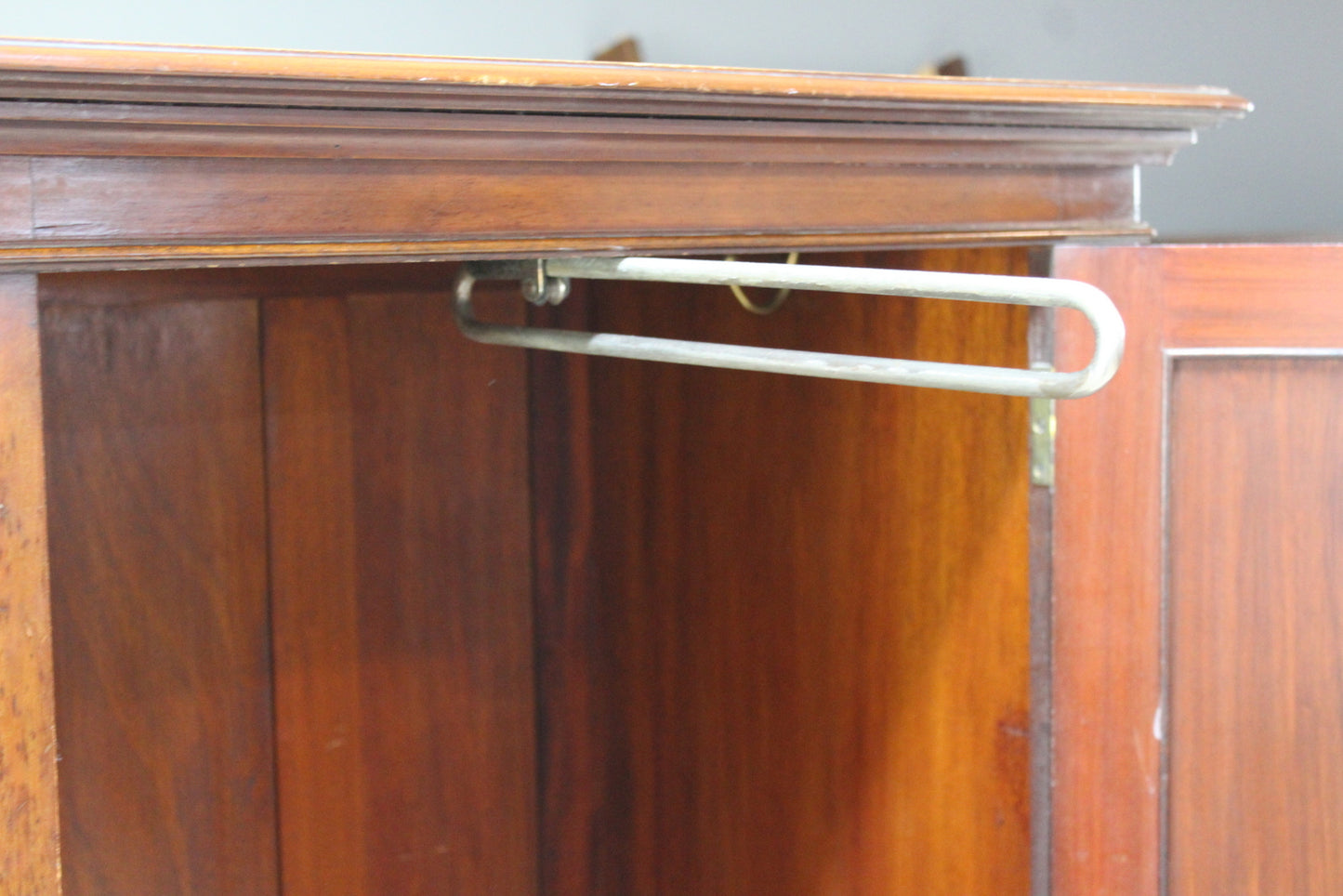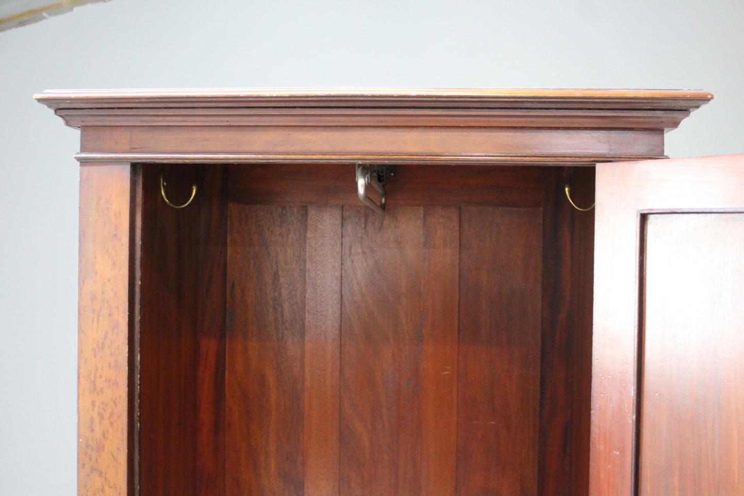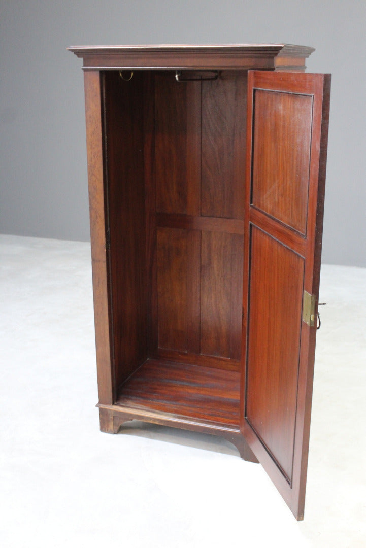 Edwardian mahogany hall robe. Edwardian mahogany small robe with single panelled door & single pull out hanger rail. Perfect for a childs room or hall for coats.