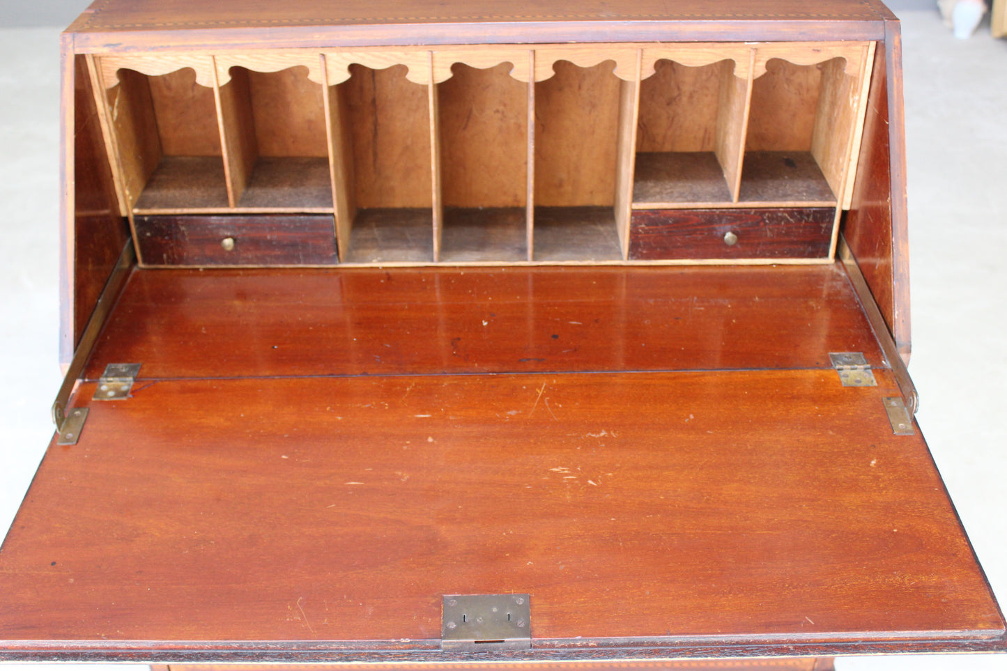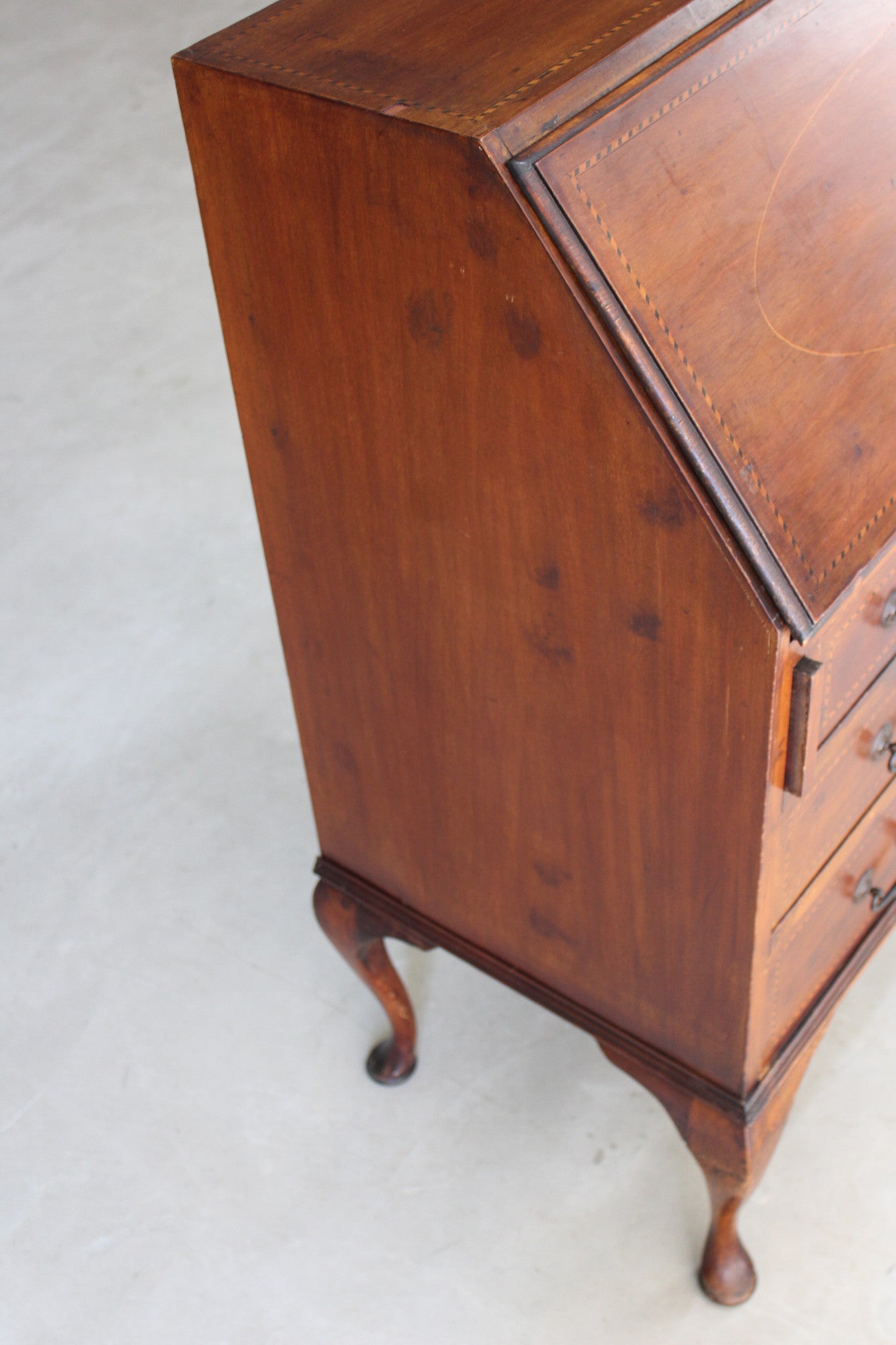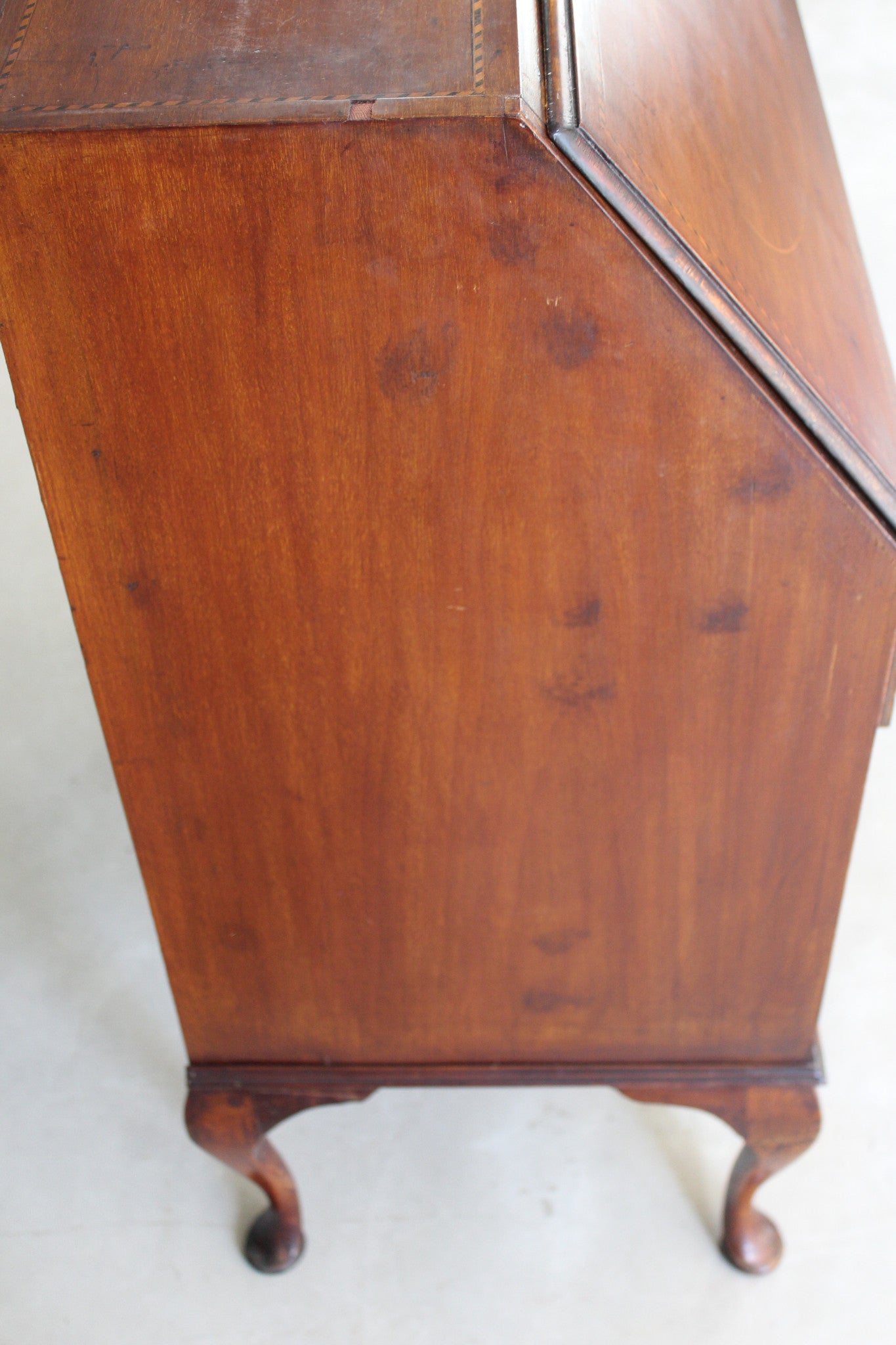 Edwardian mahogany writing bureau. Vintage mahogany writing bureau, fall front with fitted interior over 3 long drawers on cabriole legs.