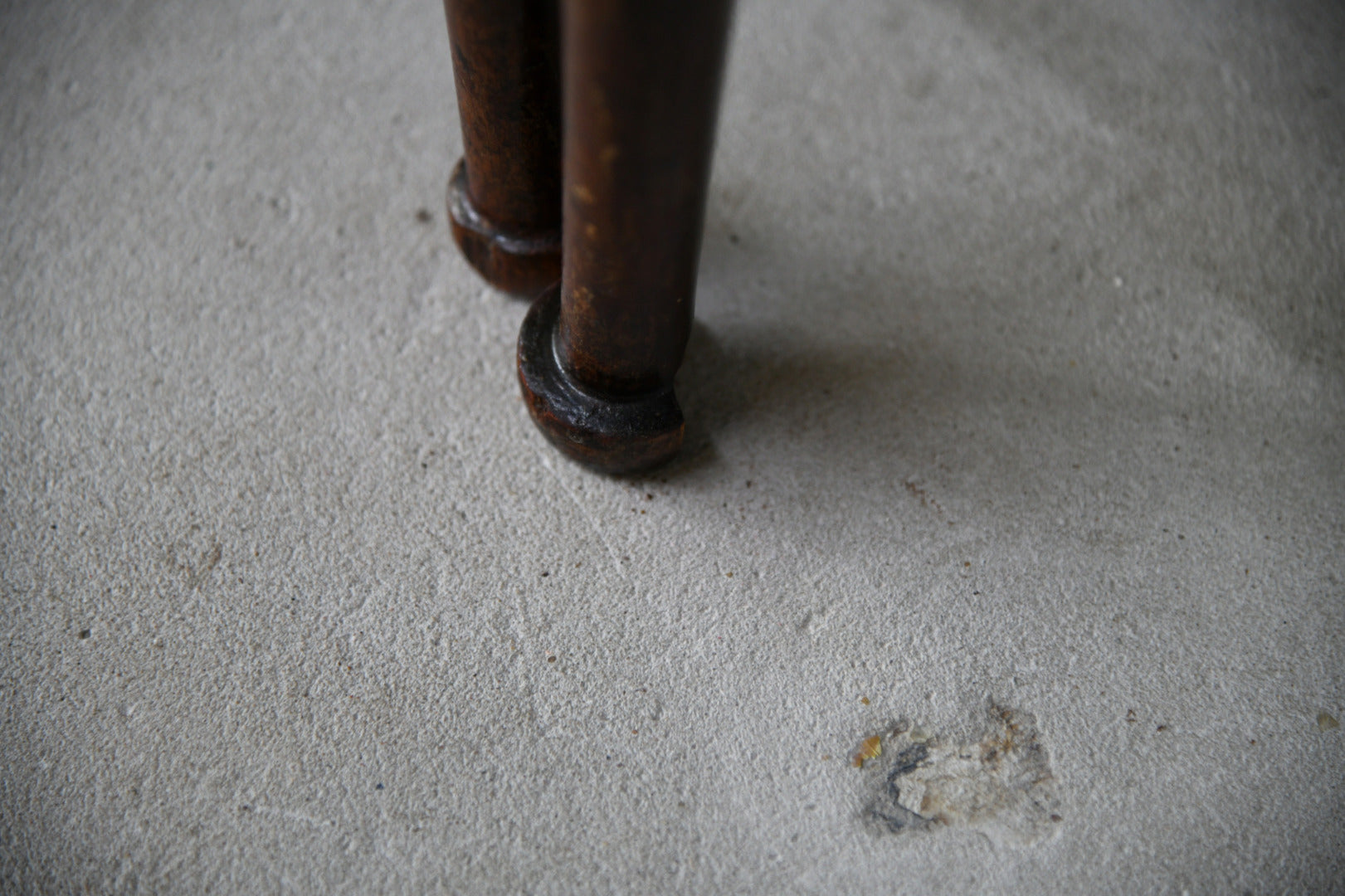 Condition: Solid condition, the chairs would benefit from the seats being reupholstered, the webbing has been repaired on one of the chairs and may need replacing, evidence of small amount of woodworm - this has been treated as a precaution, damage to the foot on one of the chairs.