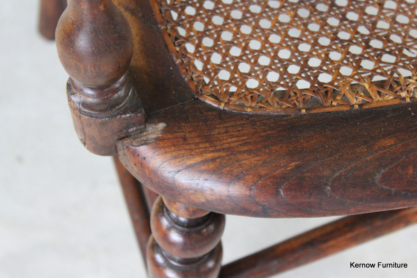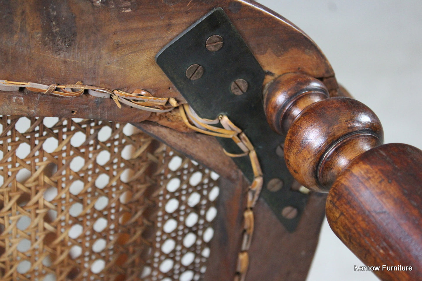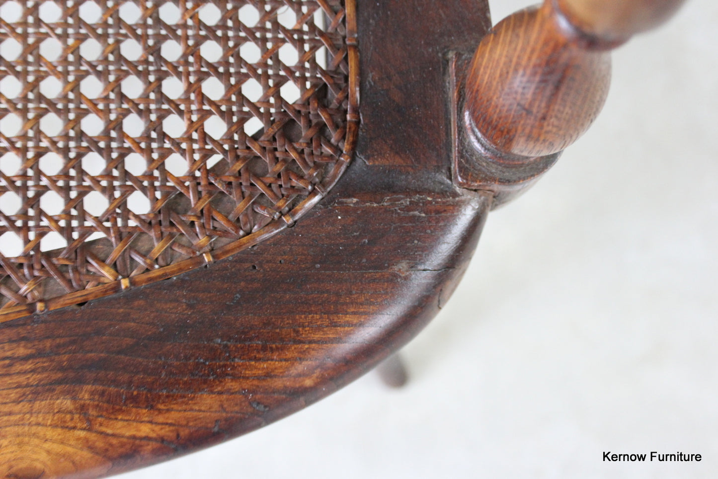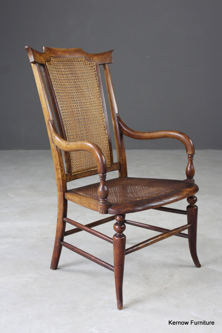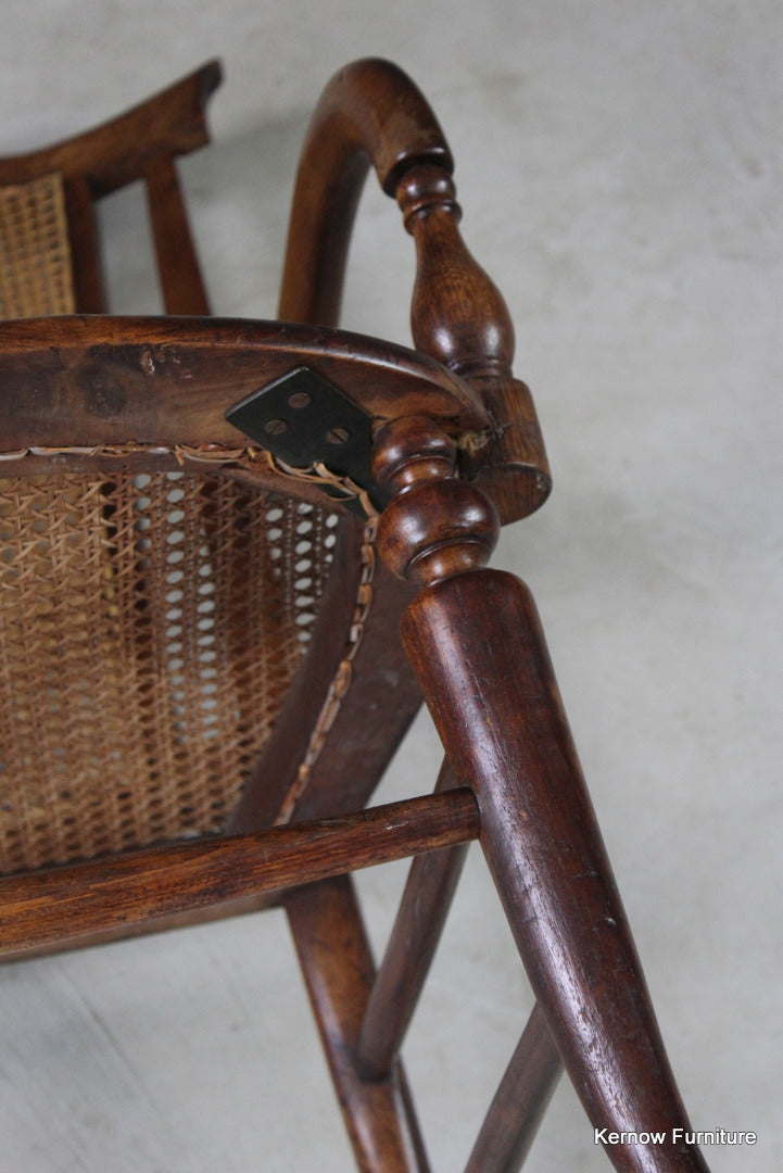 Condition: Solid condition, historic repair to the underside of the seat and arm, ,some small breaks and damage to the cane, evidence of historic woodworm - this has been treated as a precaution.