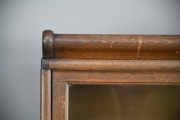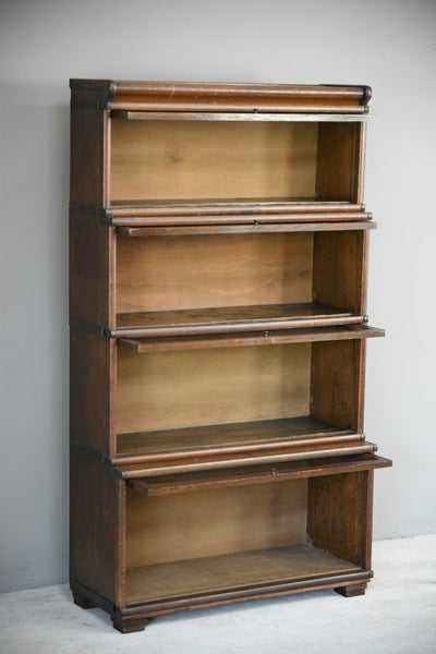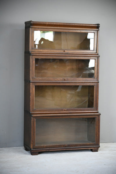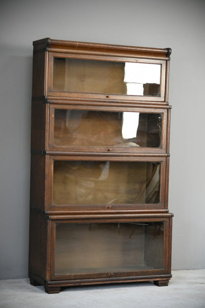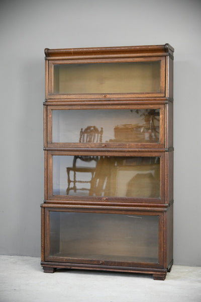 Four Tier Glazed Sectional Bookcase. Early 20th Century oak bookcase, four sectional tiers with glazed up and over doors, on small block feet.