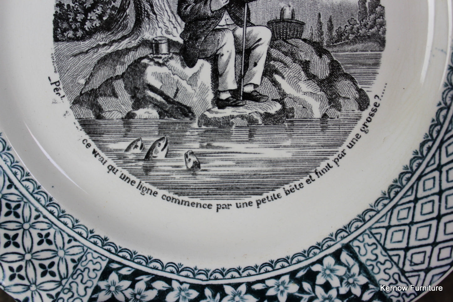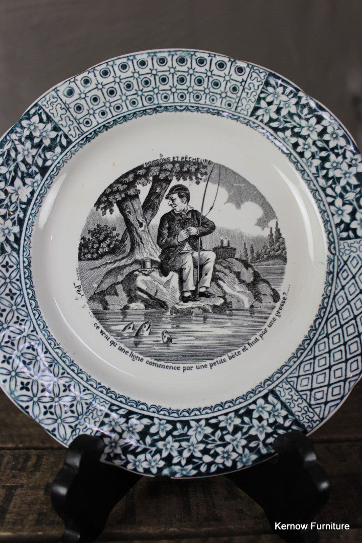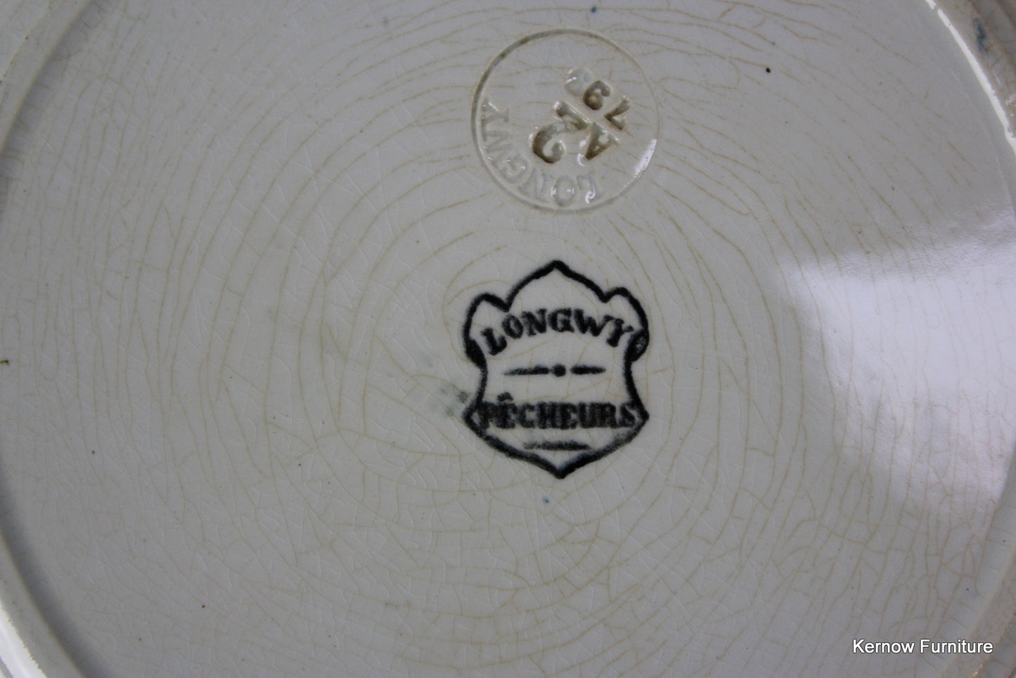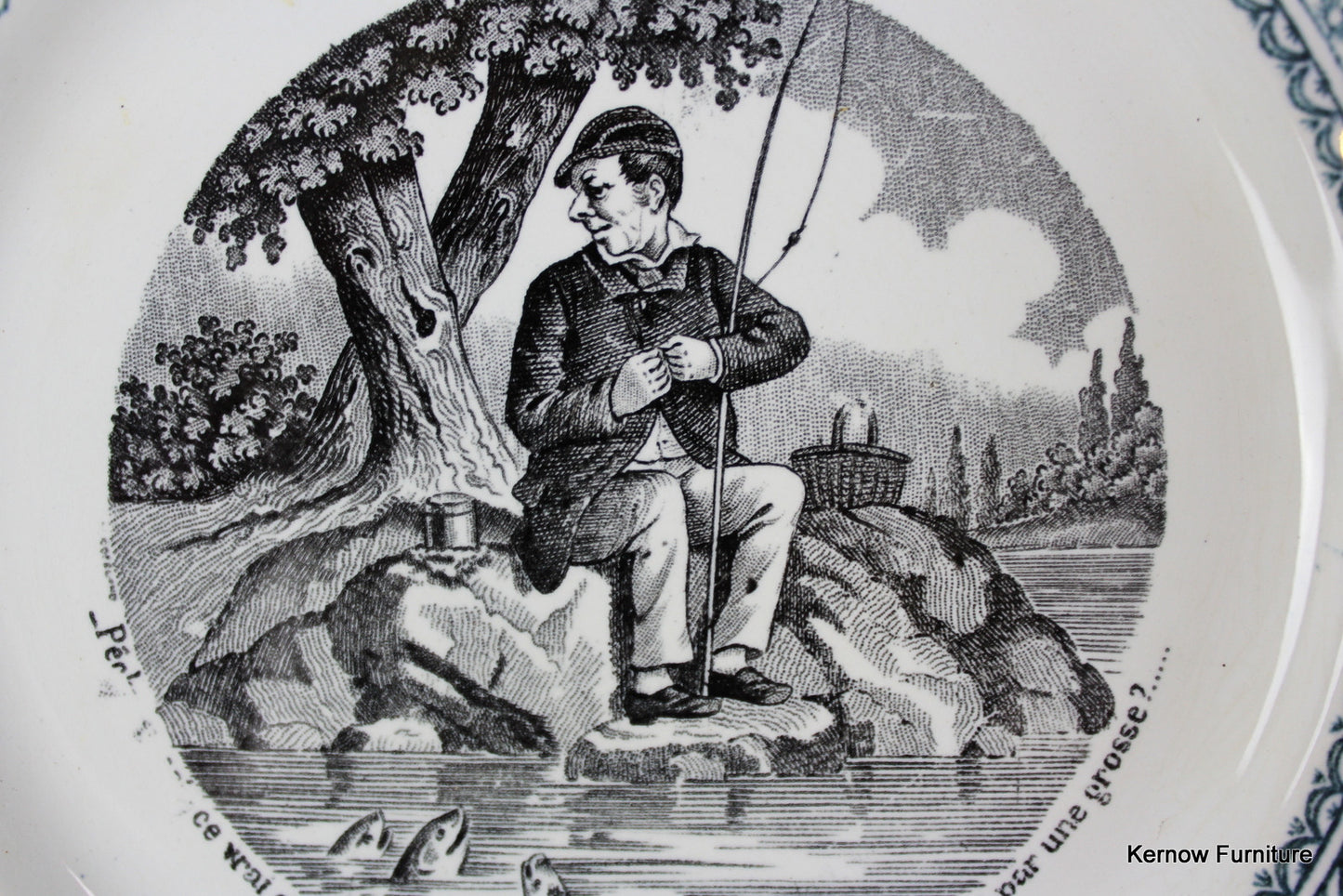 French transferware plate. Poissons et Pecheurs, marked Longwy pecheurs to the rear.