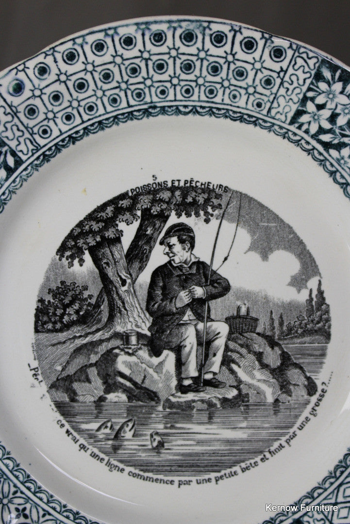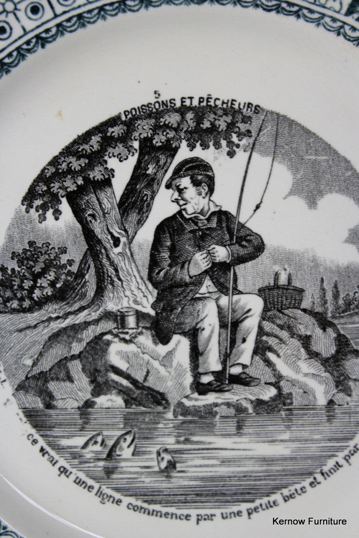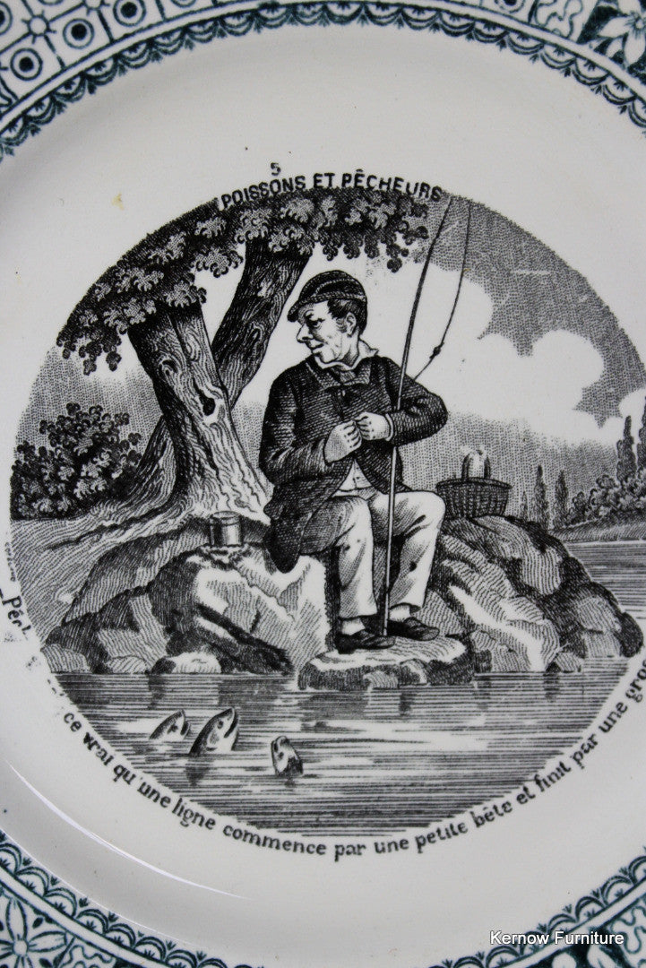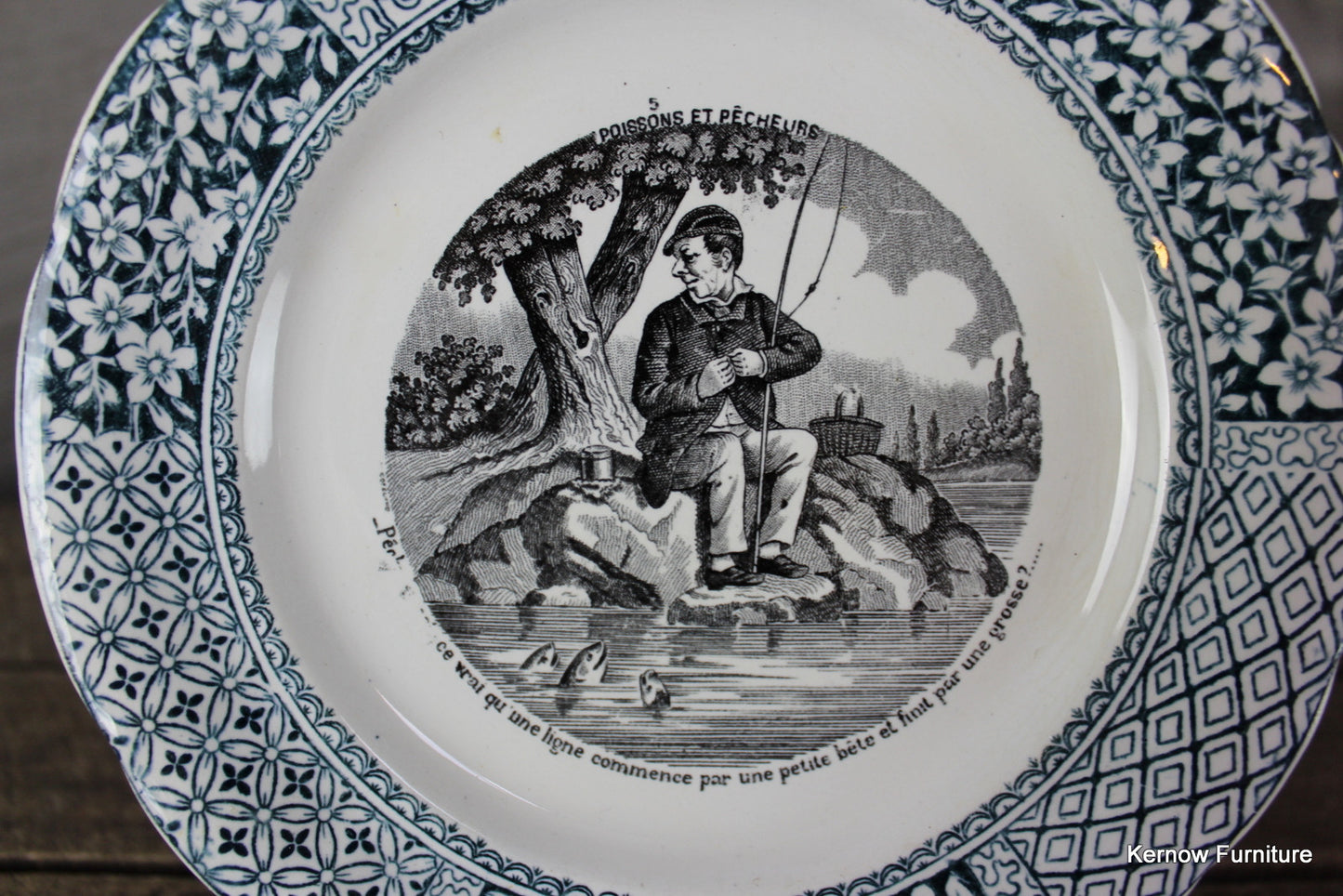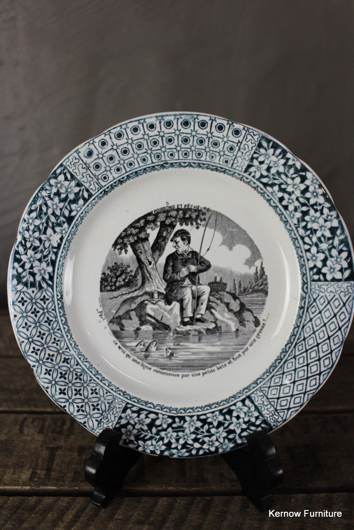 French transferware plate. Poissons et Pecheurs, marked Longwy pecheurs to the rear.