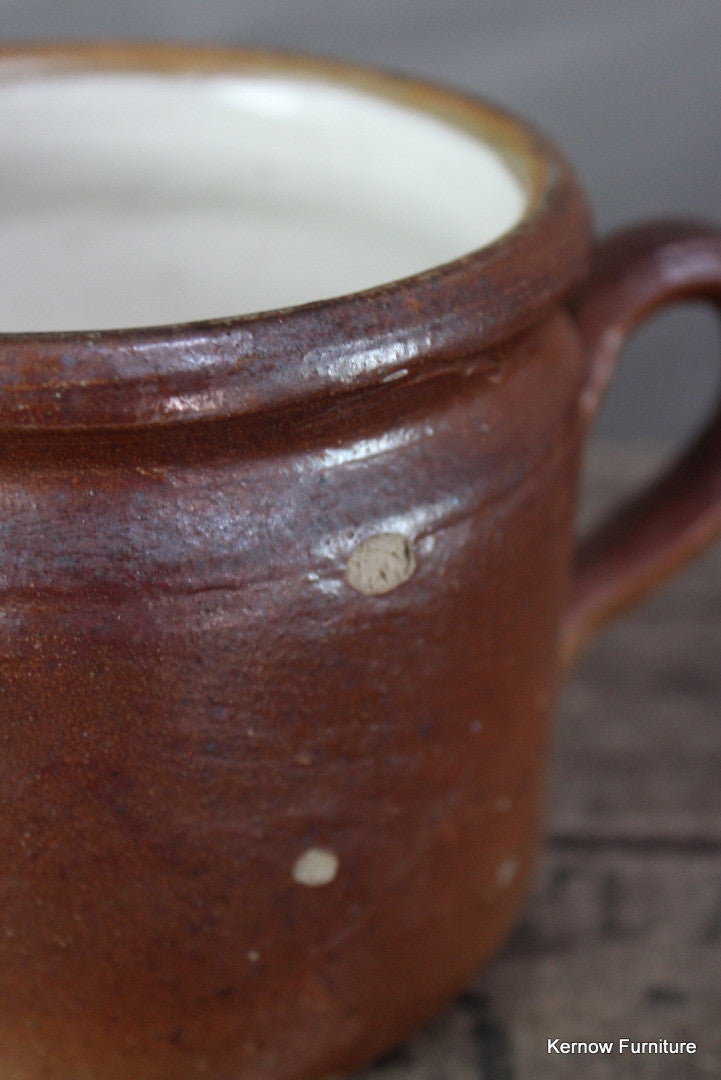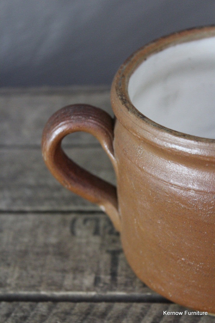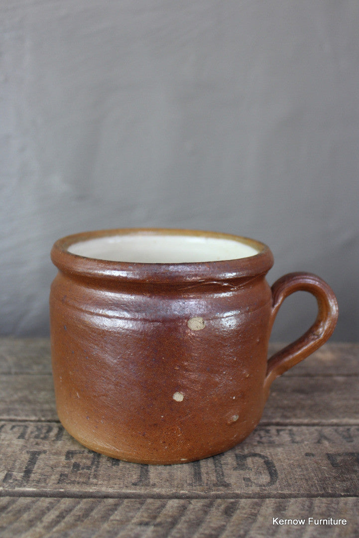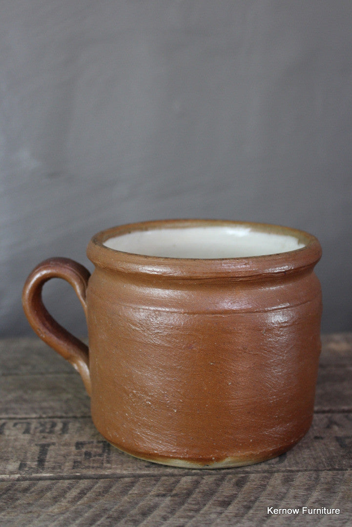 French stoneware large mug. Glazed interior and exterior. Good size.