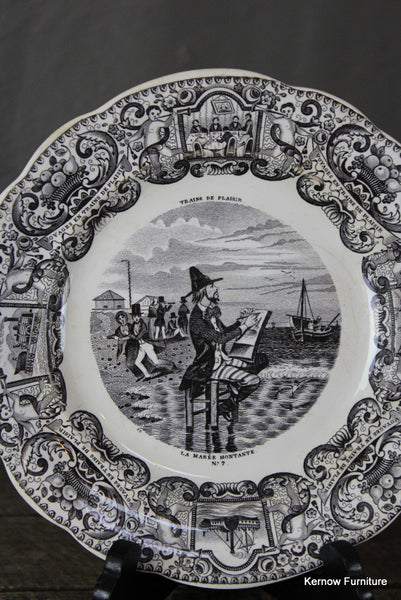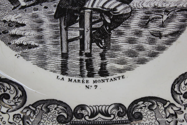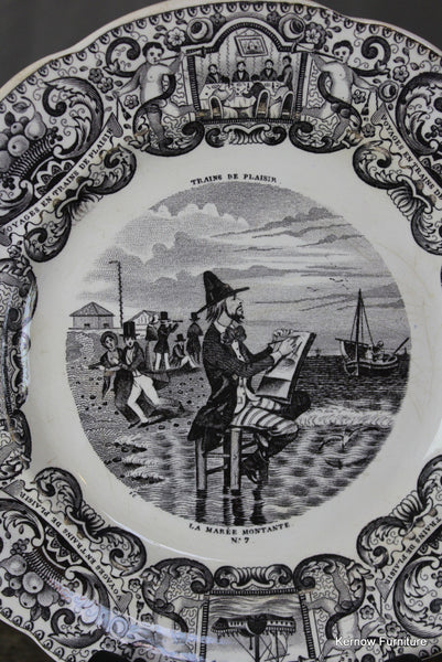 French transferware plate. Trains de plaisia - La Maree Montante No 7 - Marked Geoffrey do Boulen to the rear.