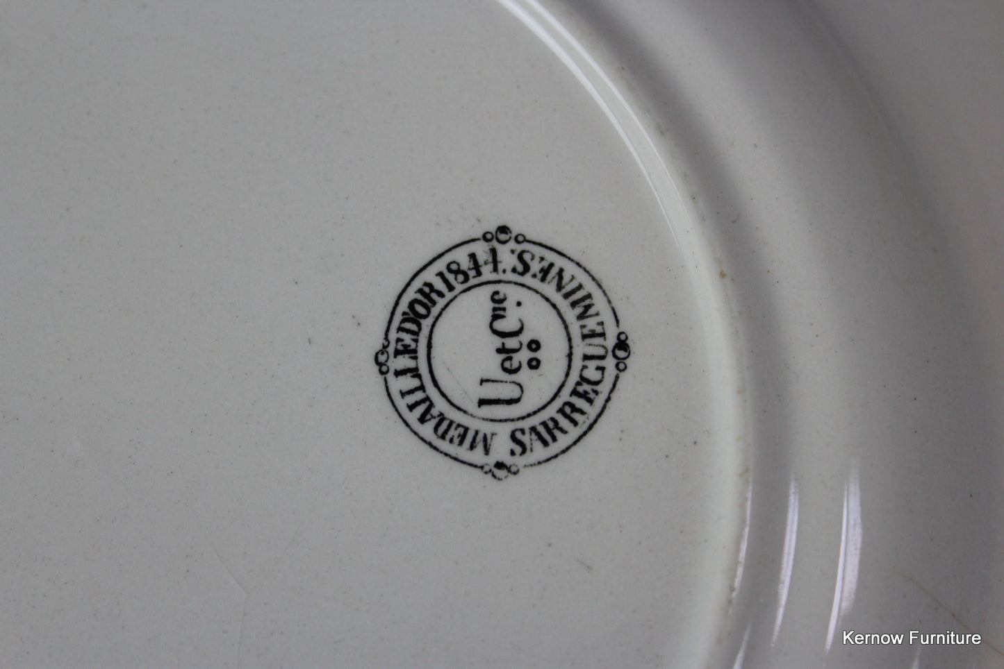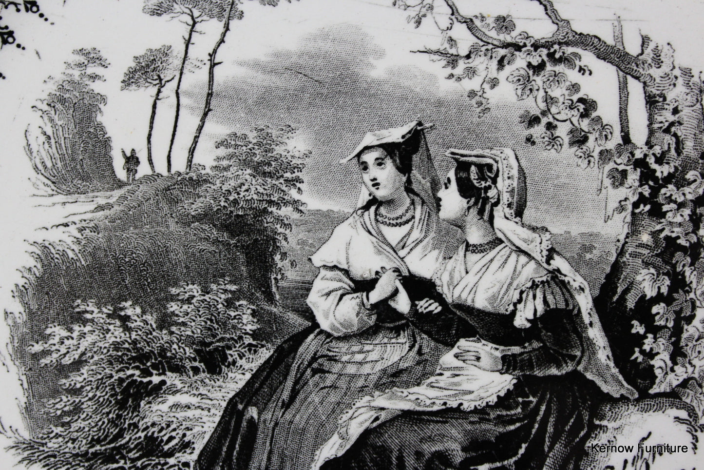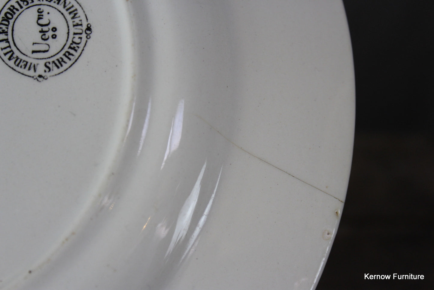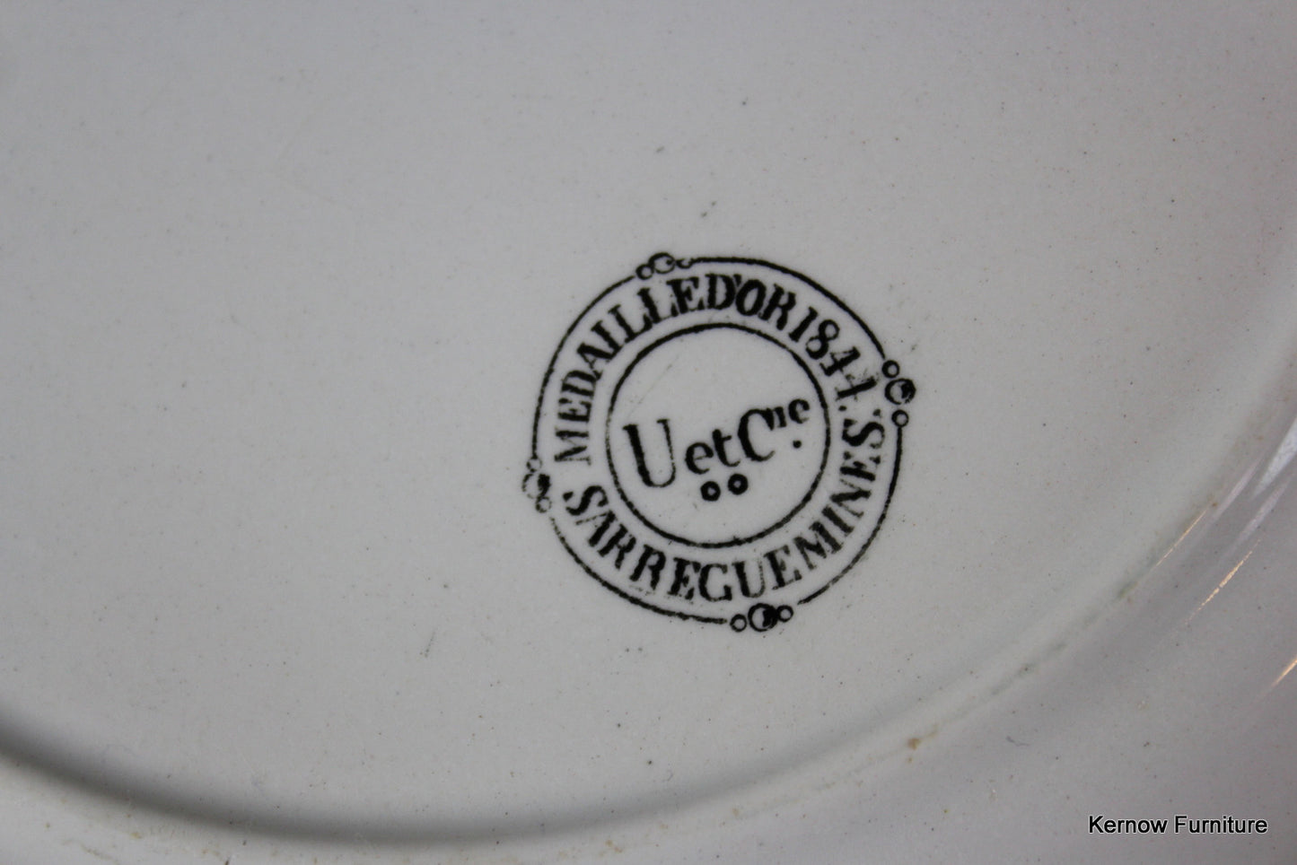 French transferware plate. Antique French decorative plate, Le Rendez-vous, marked medaille d'or 1844 sarreguemines to the rear.