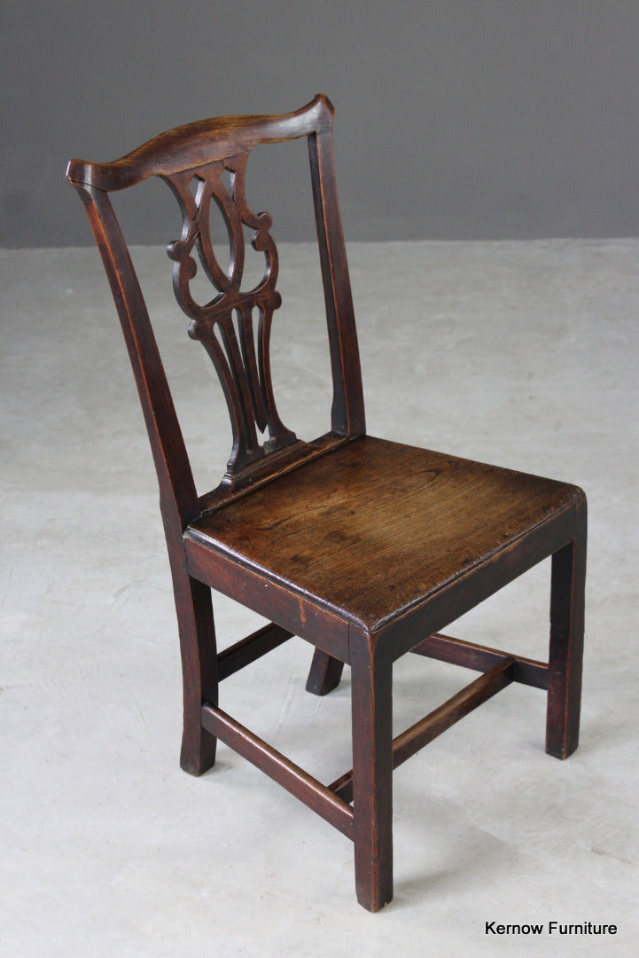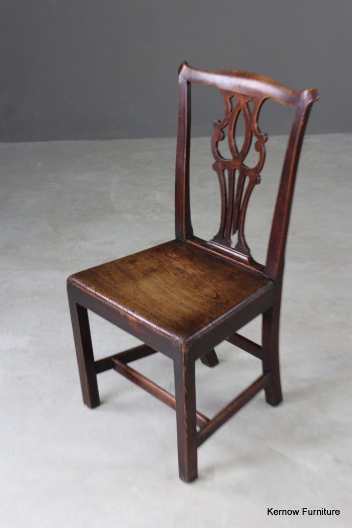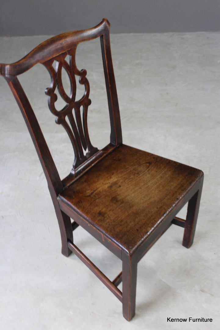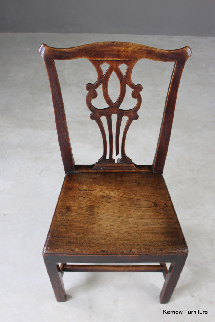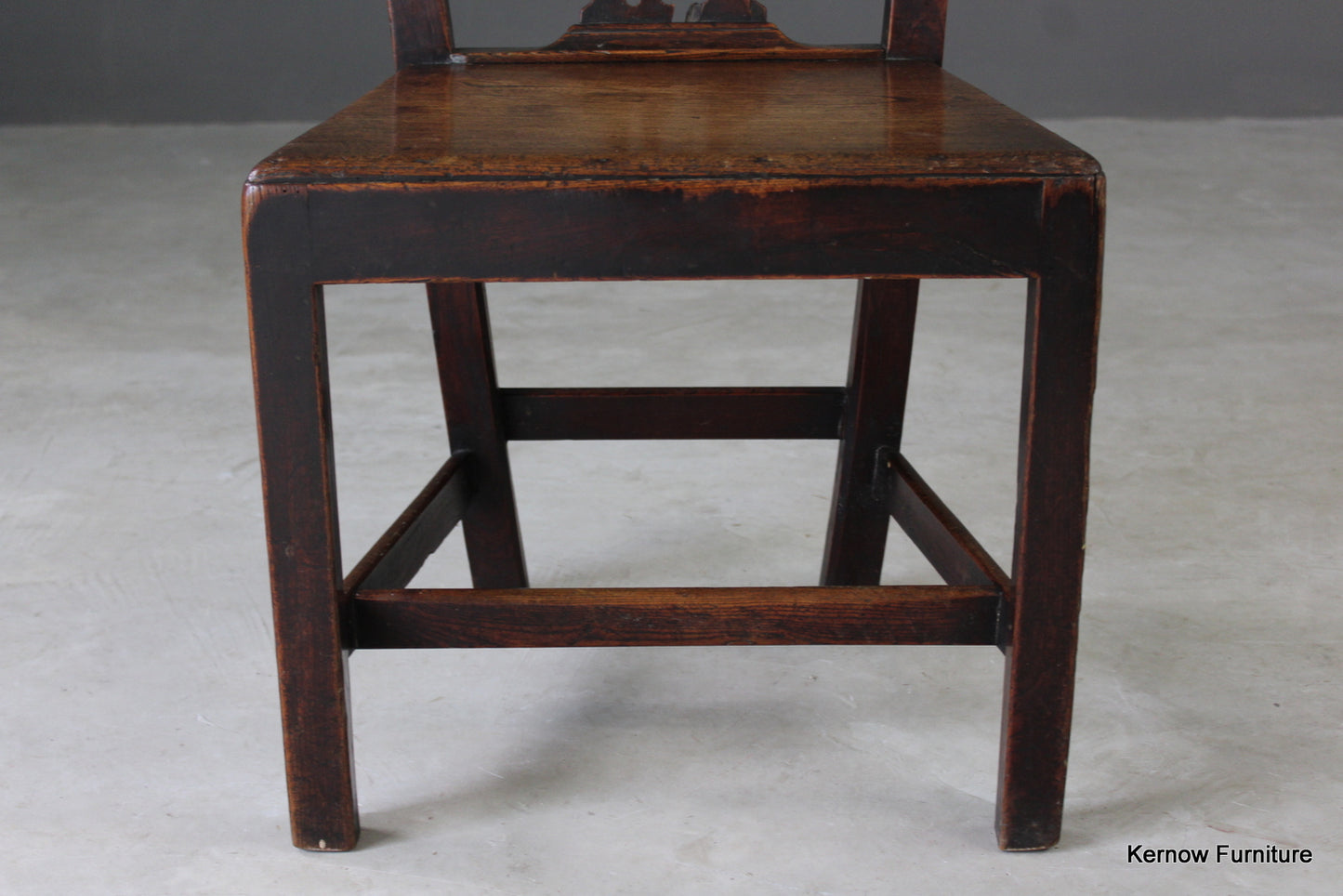 Georgian elm hall chair. Antique Georgian elm chair with pierced back splat, solid seat on square section legs.