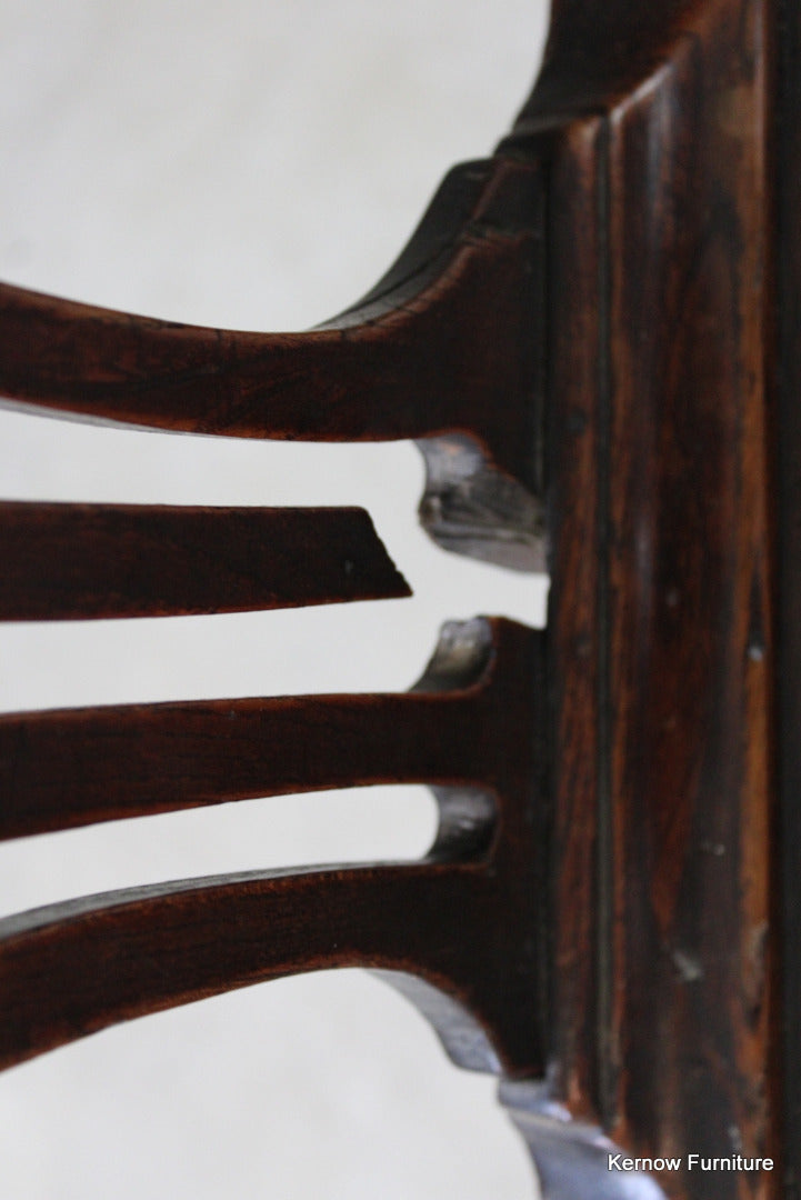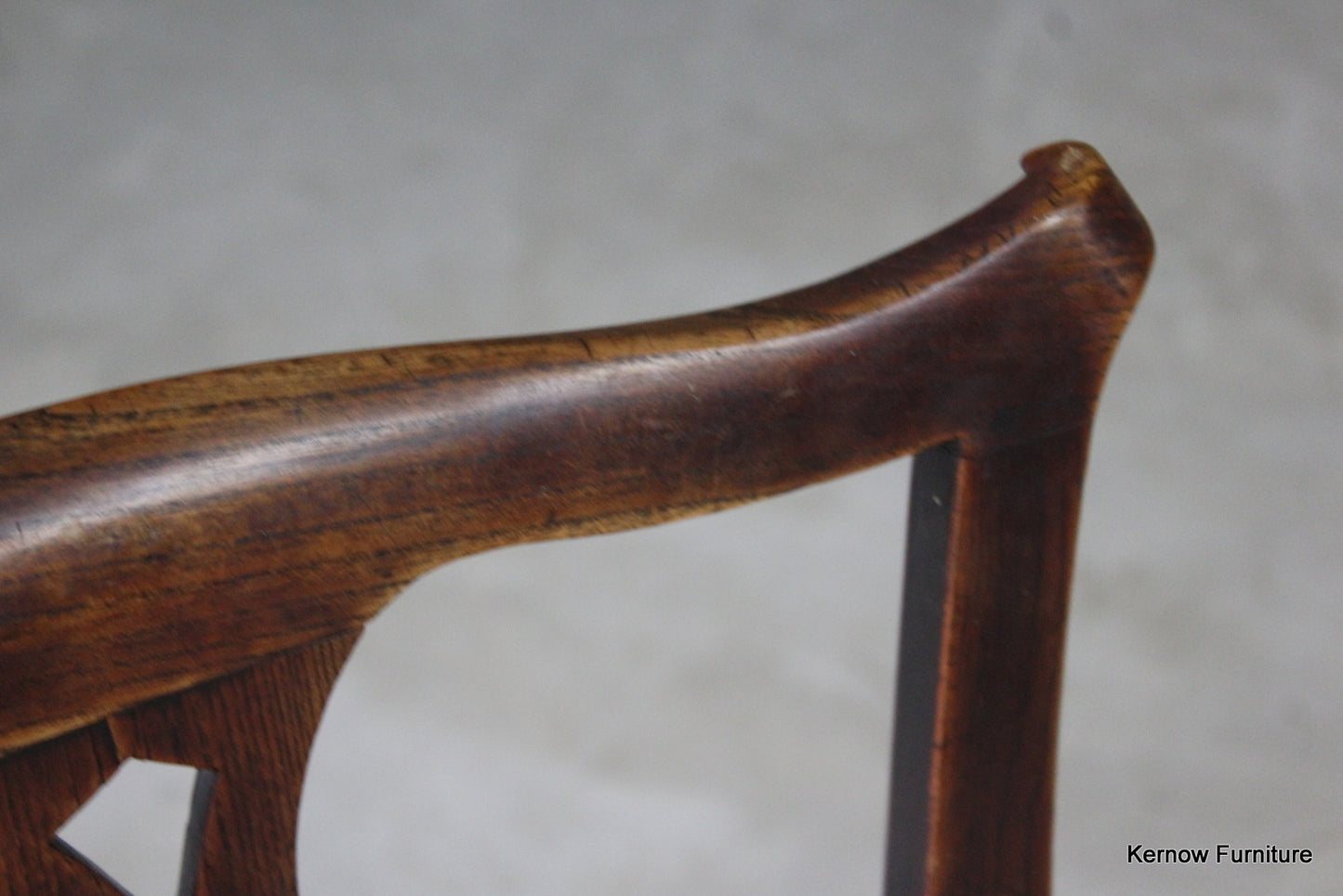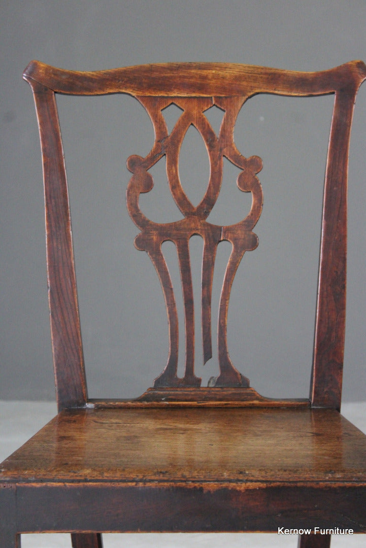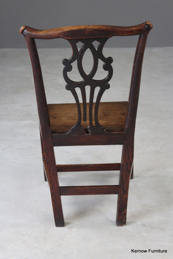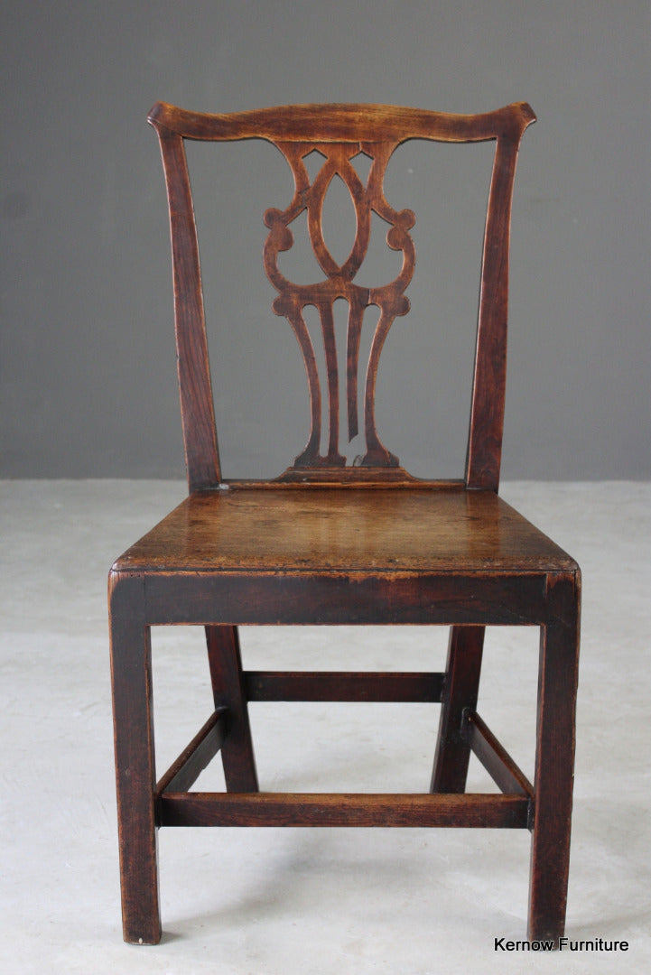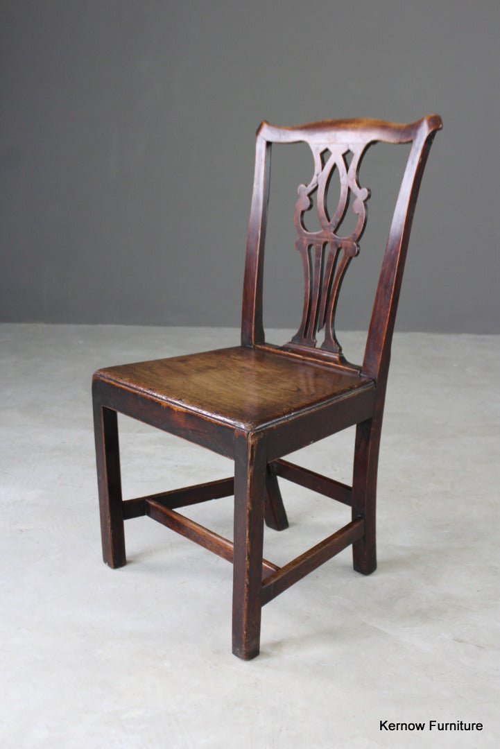 Georgian elm hall chair. Antique Georgian elm chair with pierced back splat, solid seat on square section legs.
