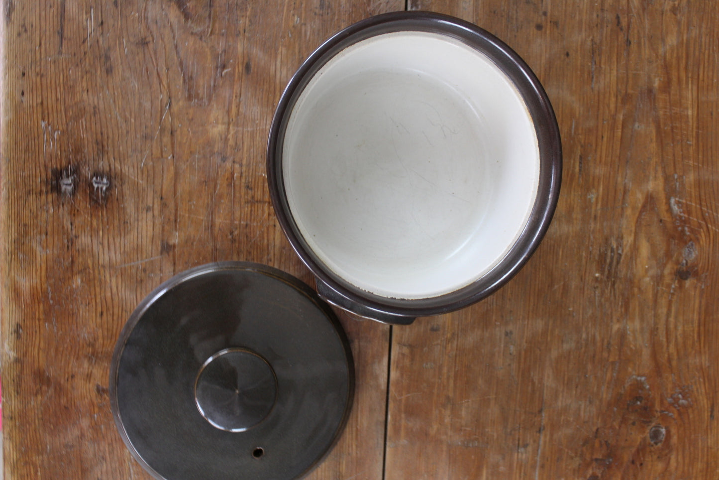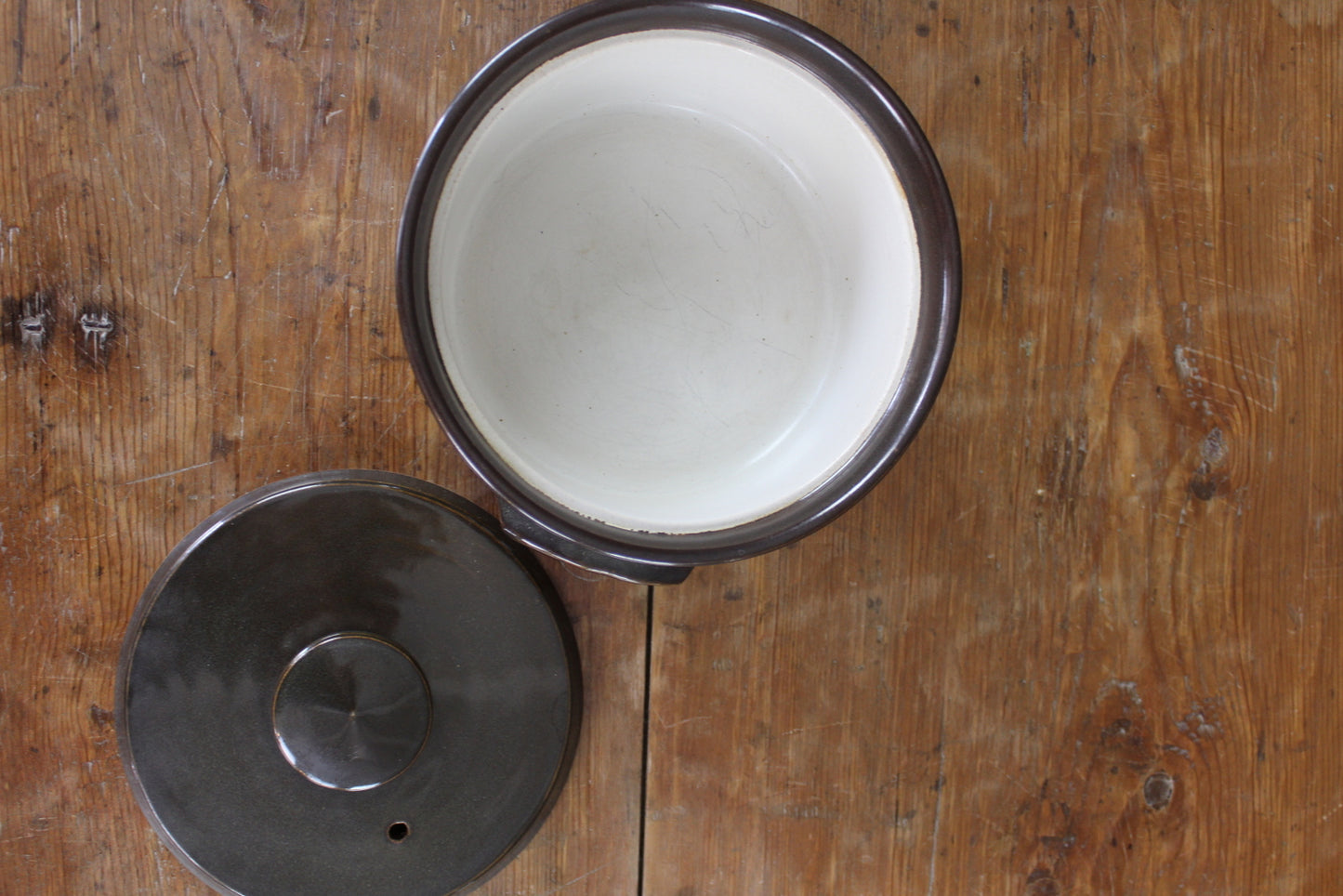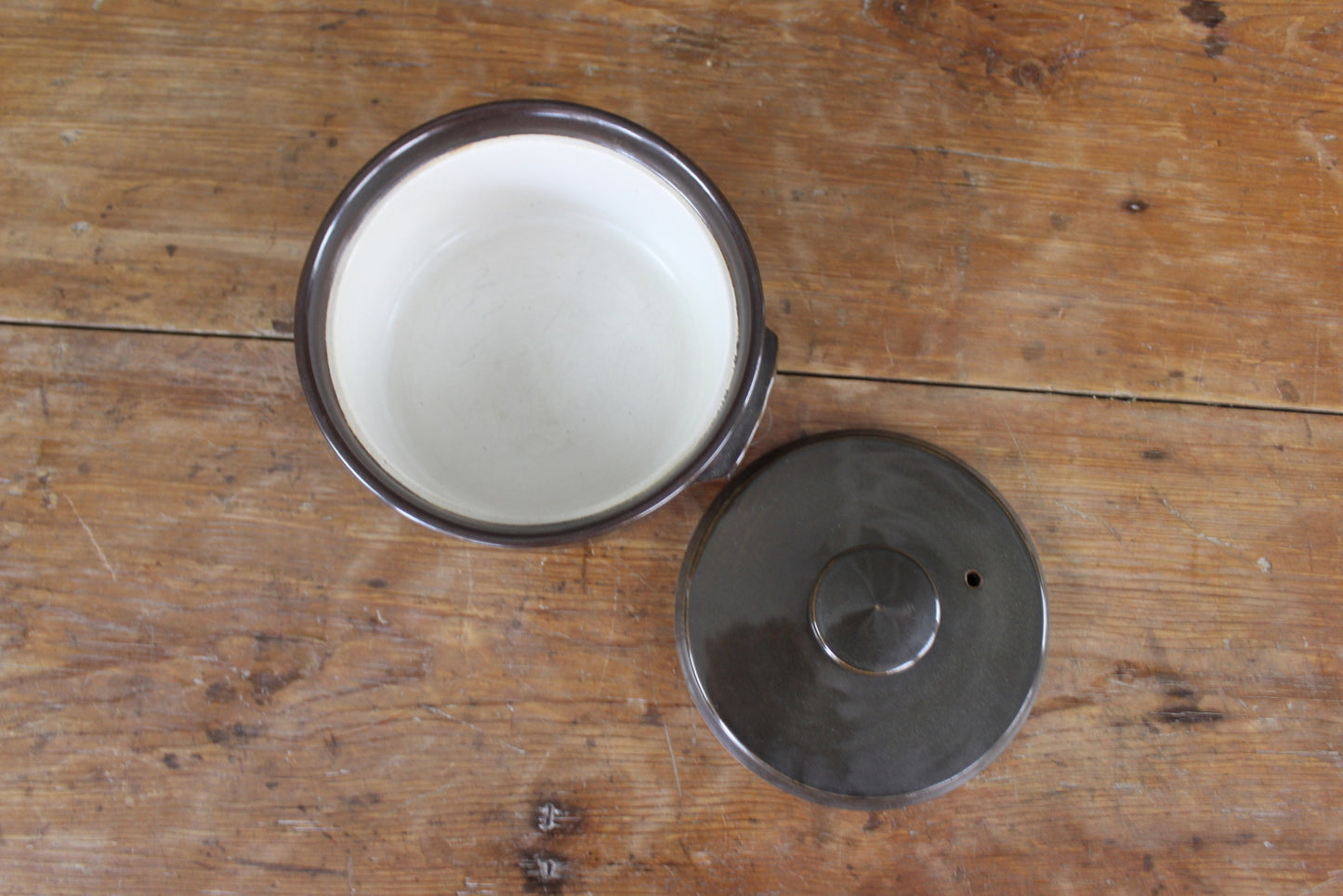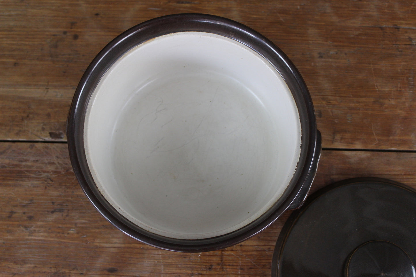 Govancroft Lauffer casserole dish. Retro glazed stoneware casserole dish & lid.