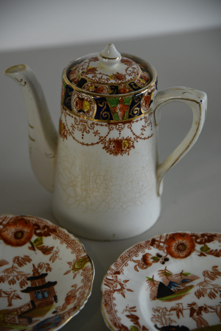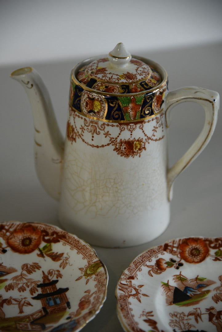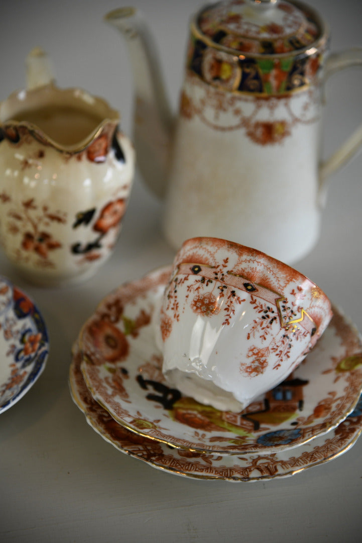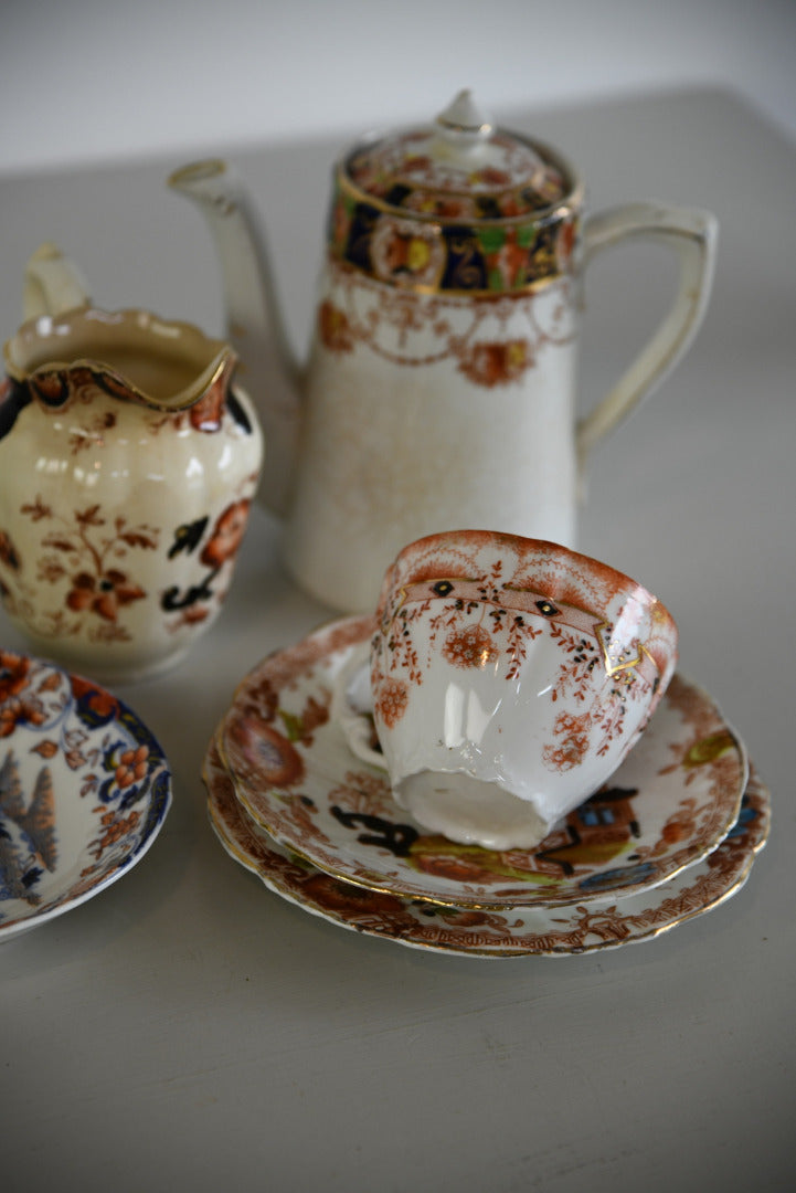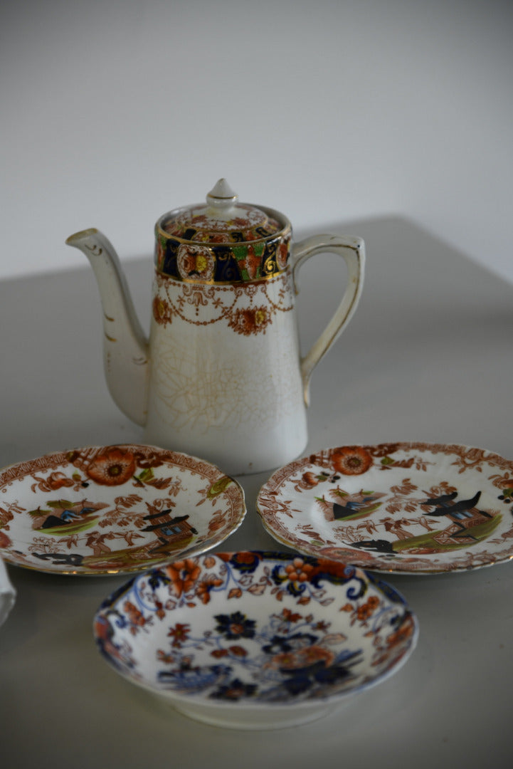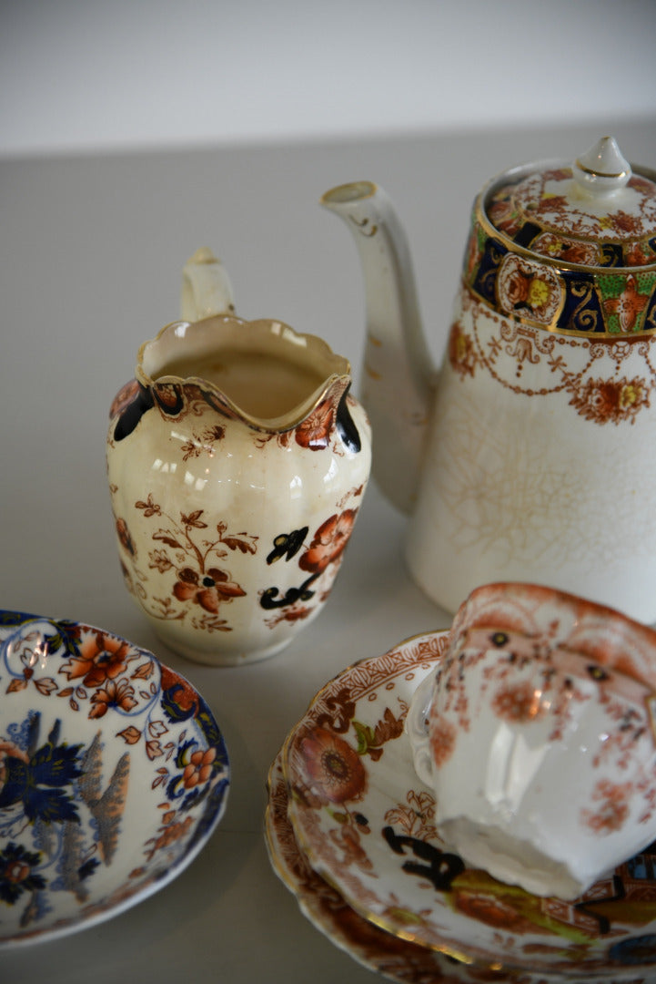 Imari Coffee Pot & Jug. Edwardian mistmatched Imari & Oriental tableware, coffee pot , jug, saucer, cup & plate.