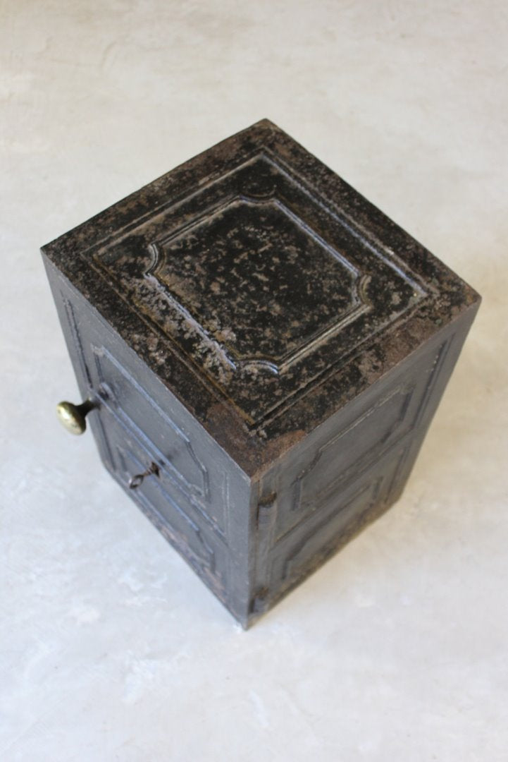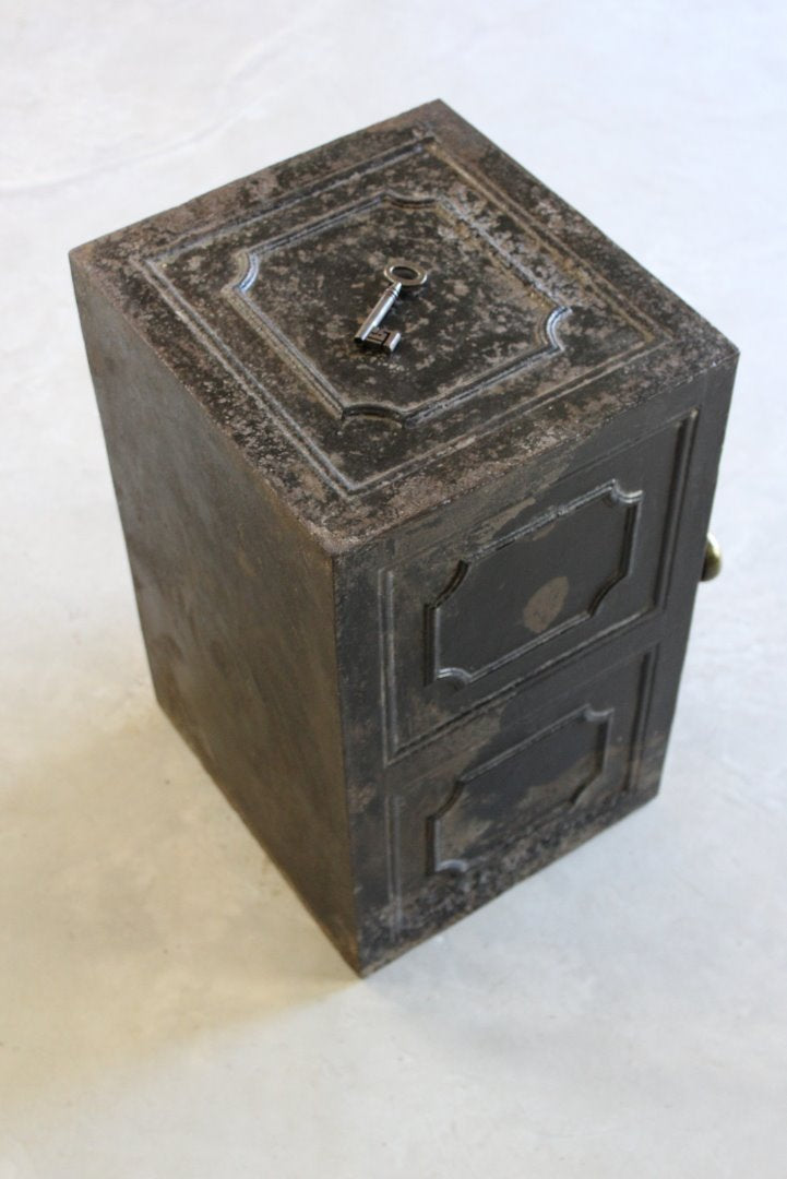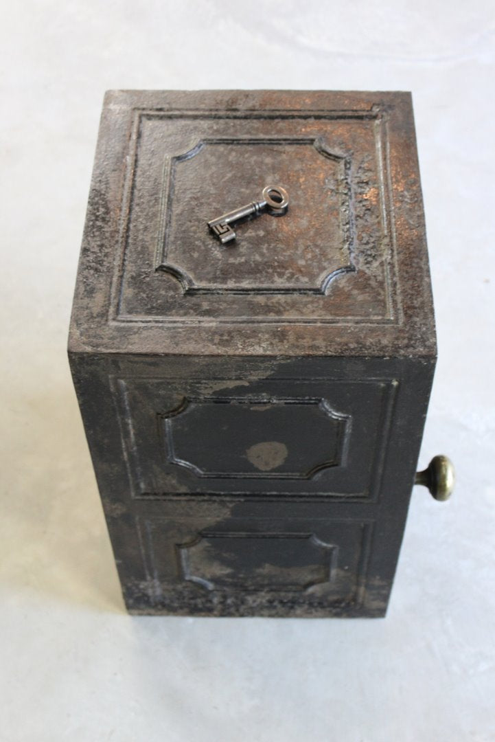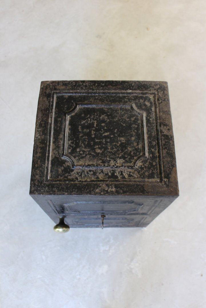 J Jones antique cast iron safe. Small Victorian cast iron safe with internal drawer & key.