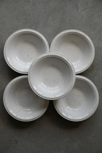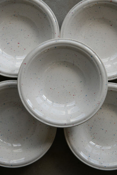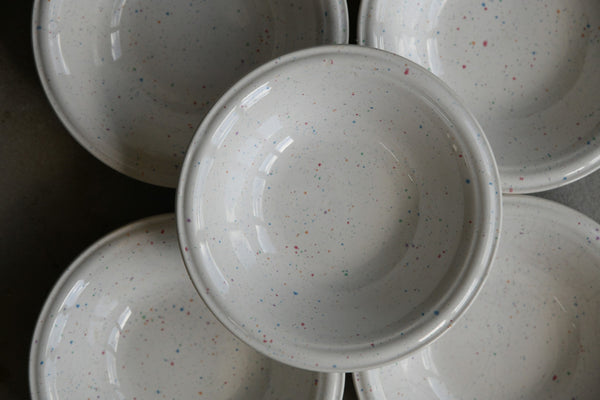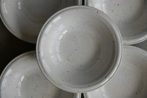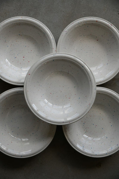 John Tams Confetti Bowls. Set 5 1980s multi colour speckle cereal bowls.