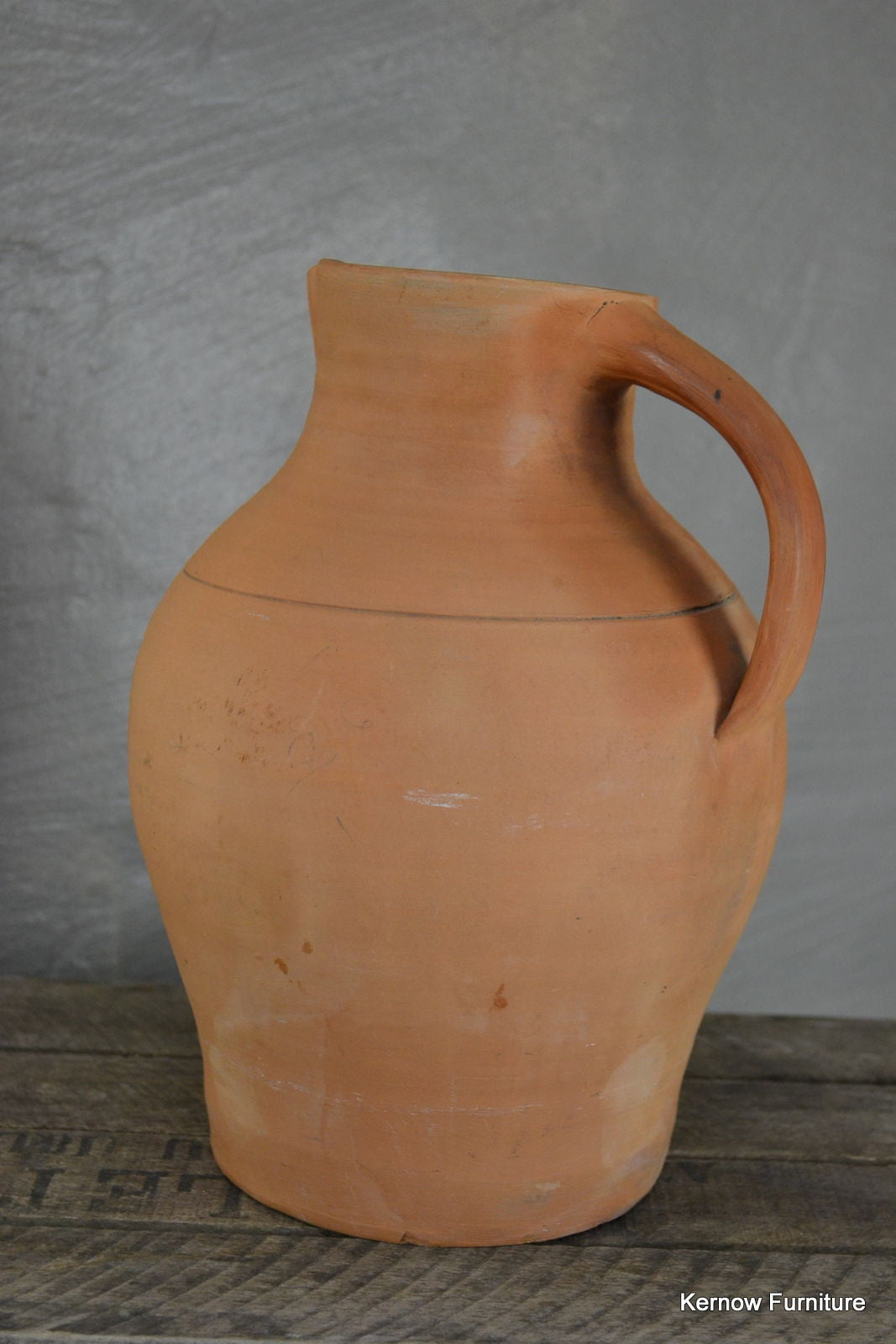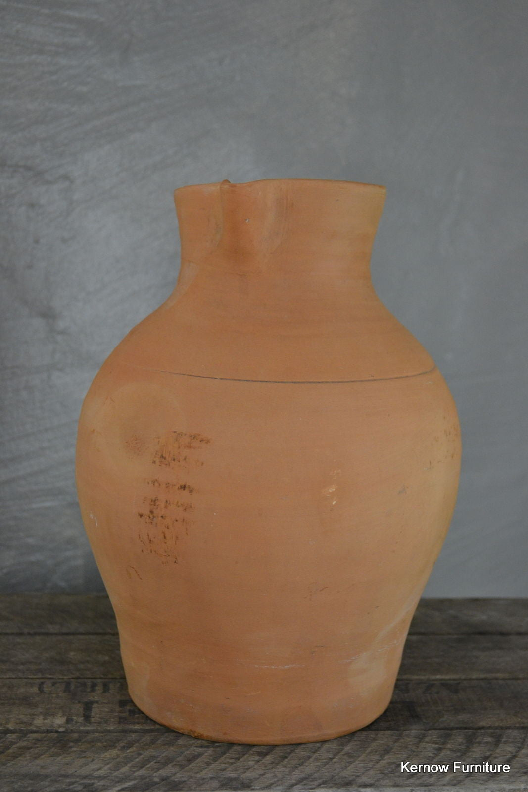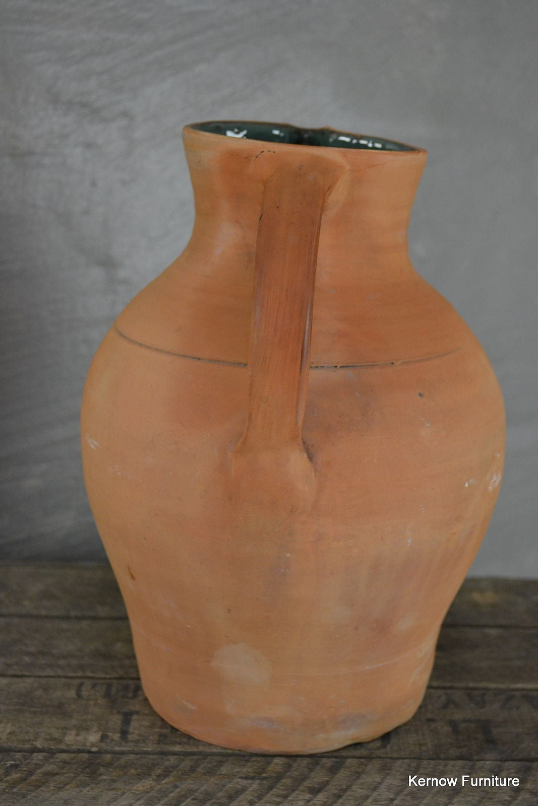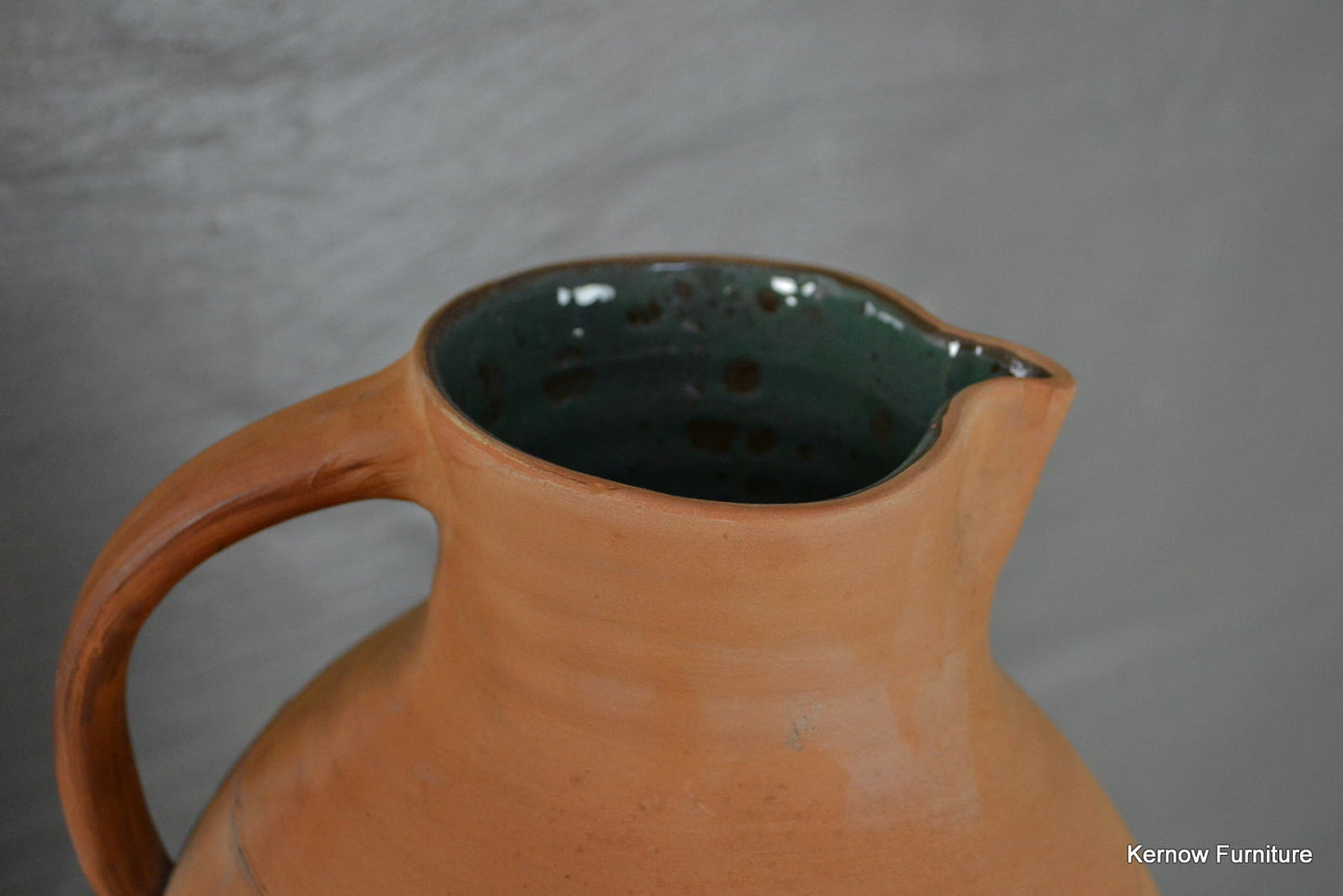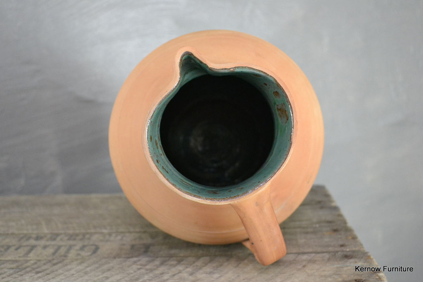 Lakes of Truro Cornish pottery large earthernware jug with green glazed interior.