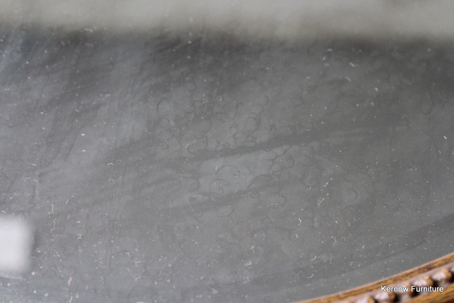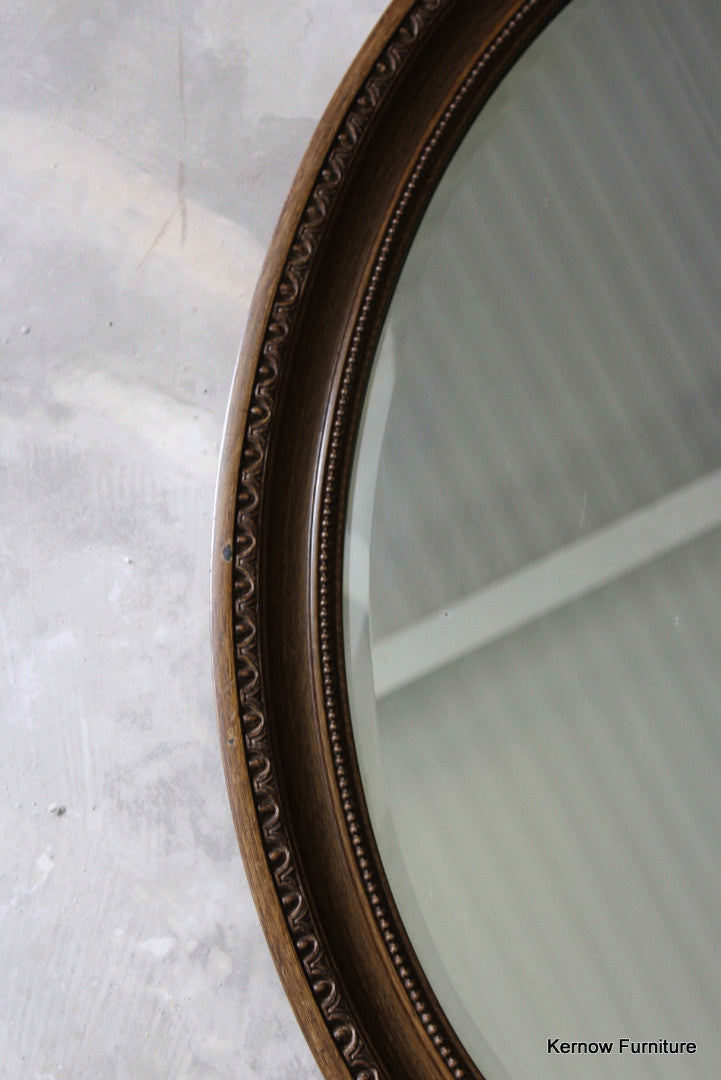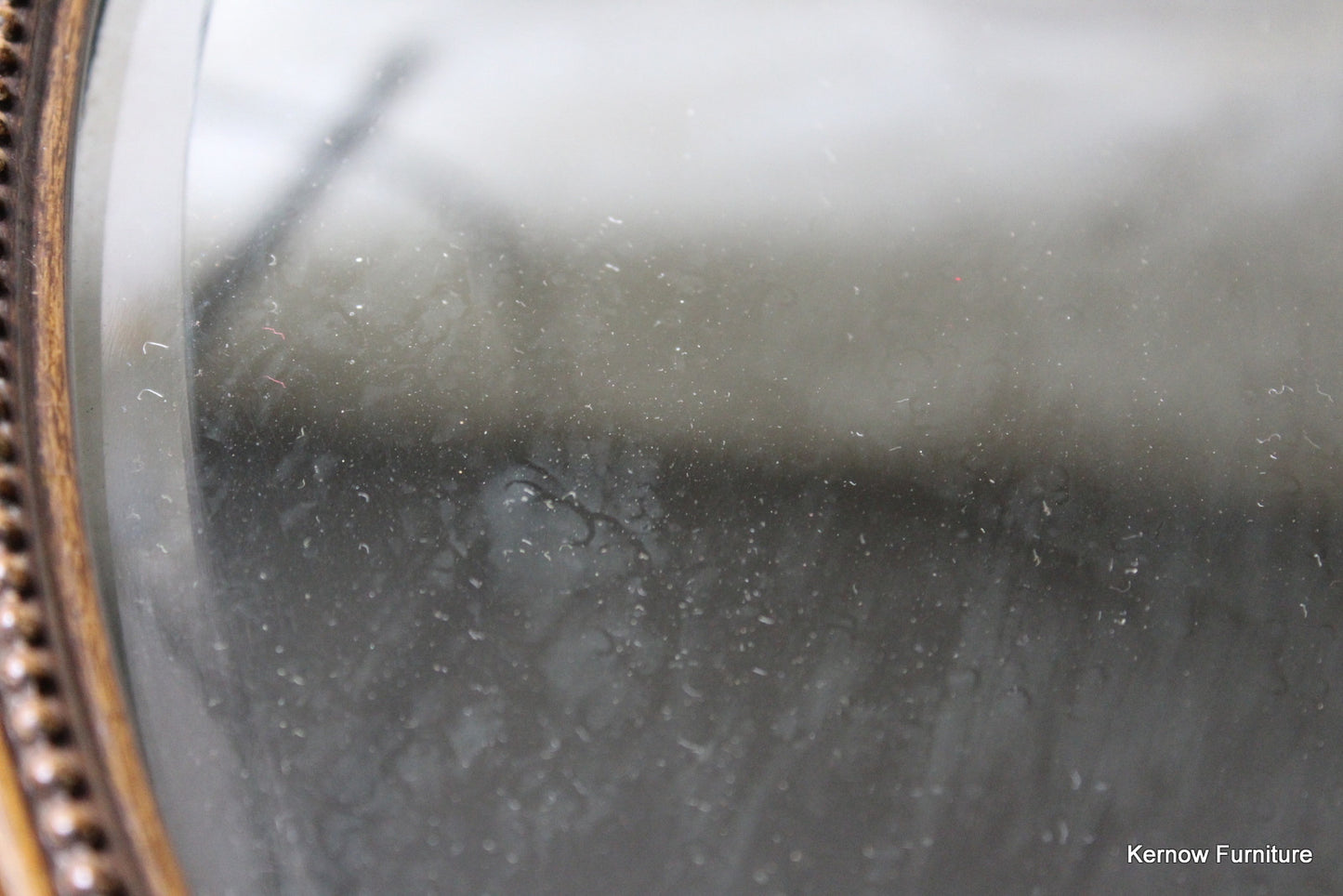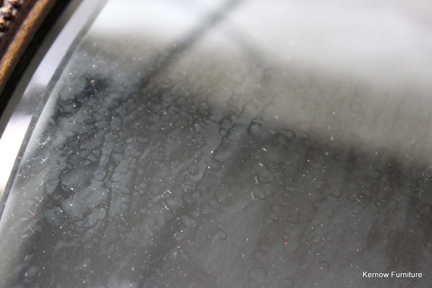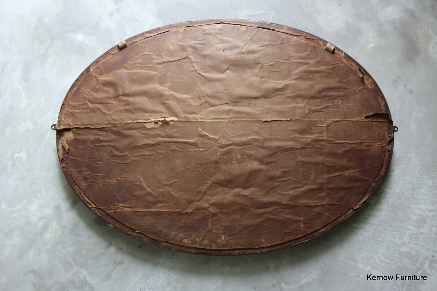 Large antique oval wall mirror. Large oval mirror with original glass and wood effect plaster frame.