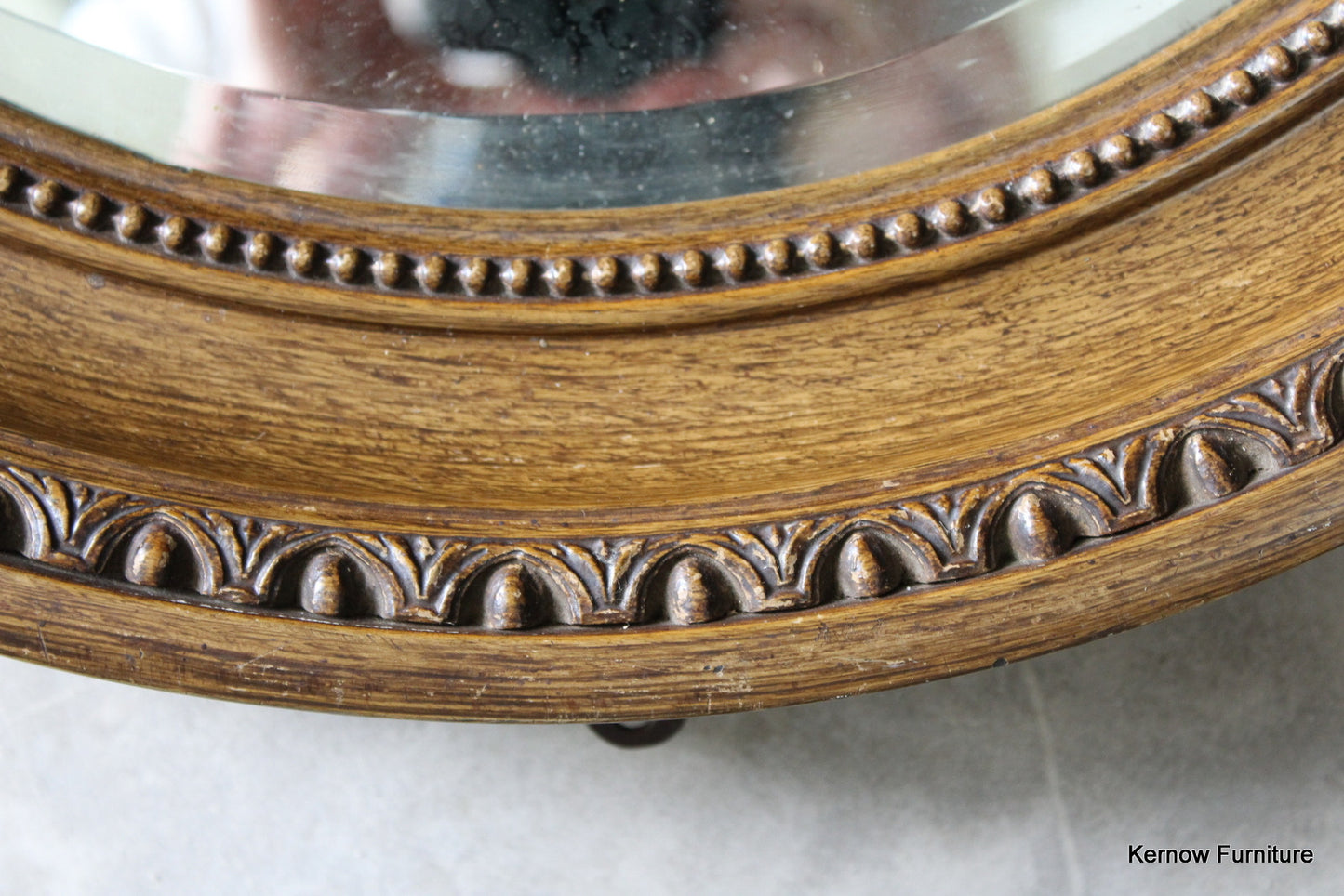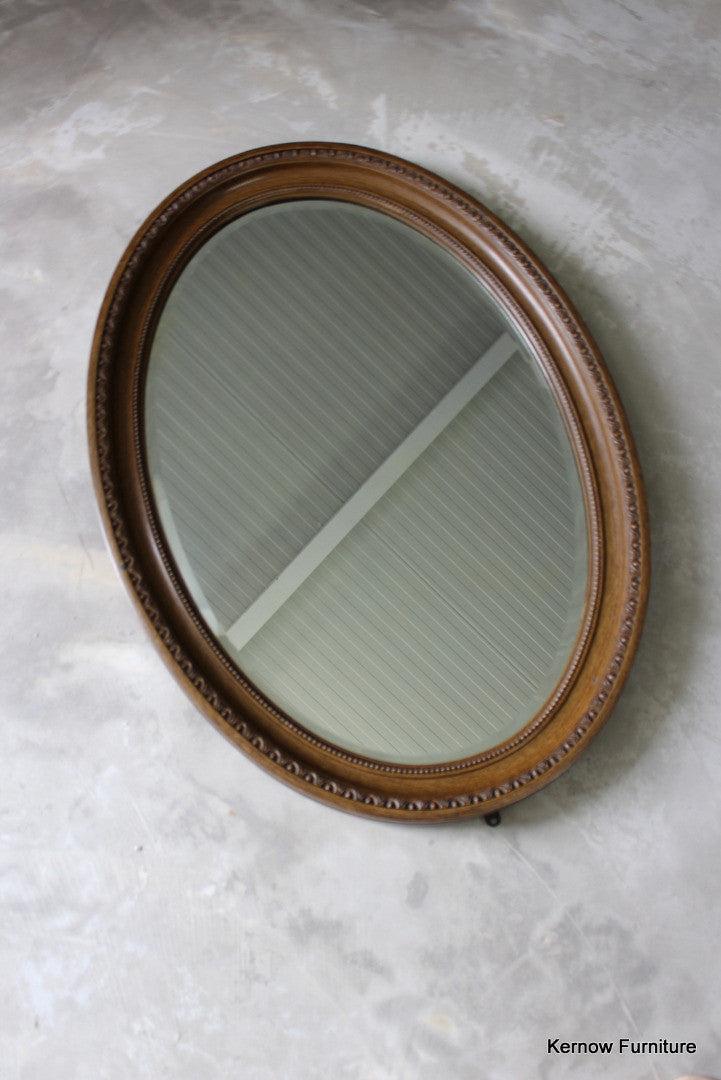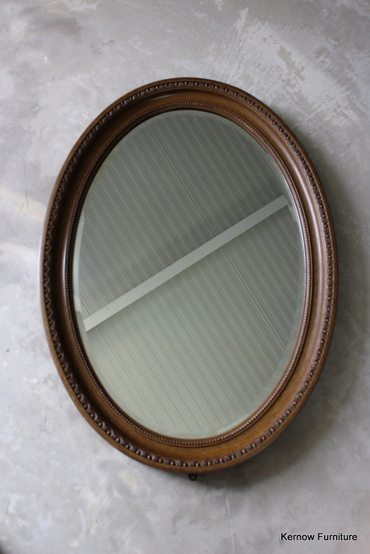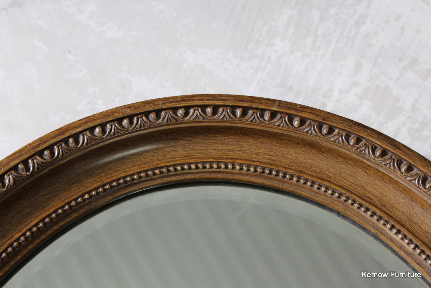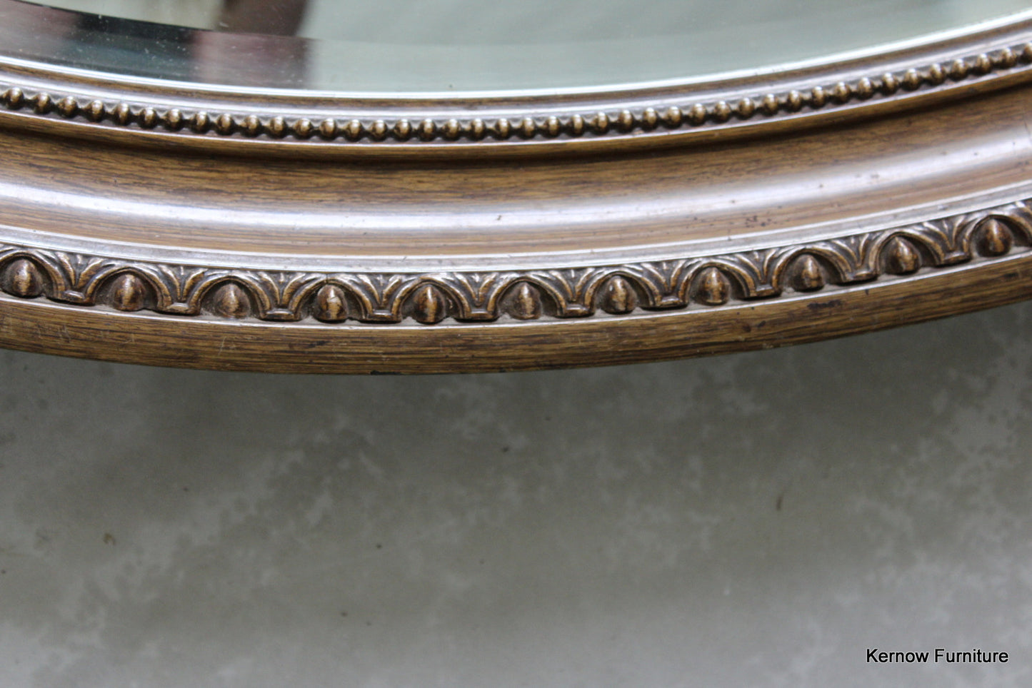 Large antique oval wall mirror. Large oval mirror with original glass and wood effect plaster frame.