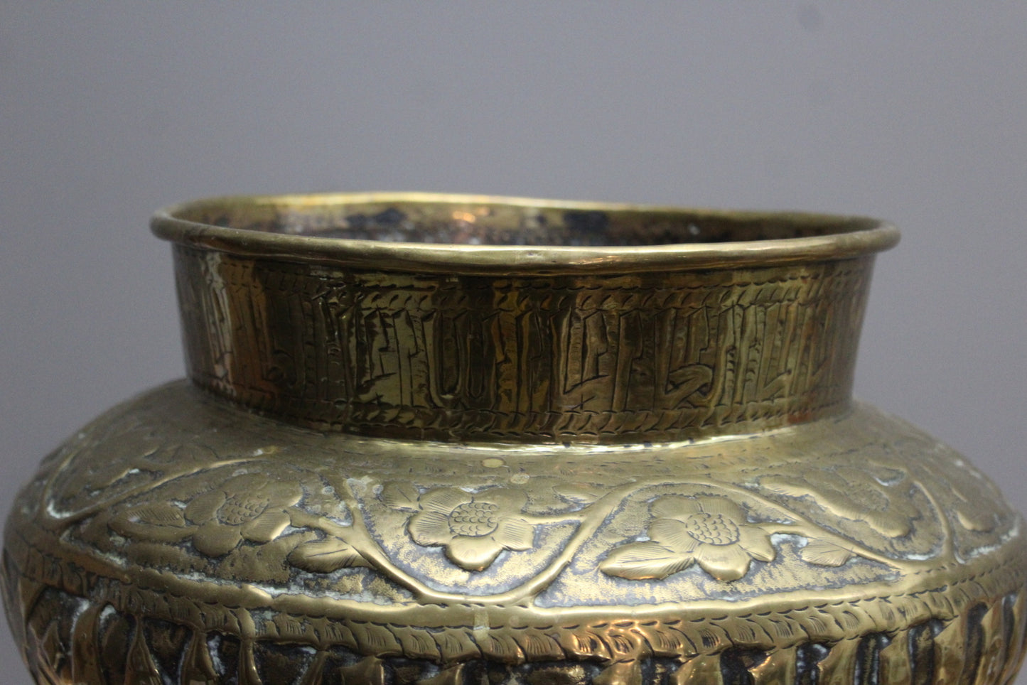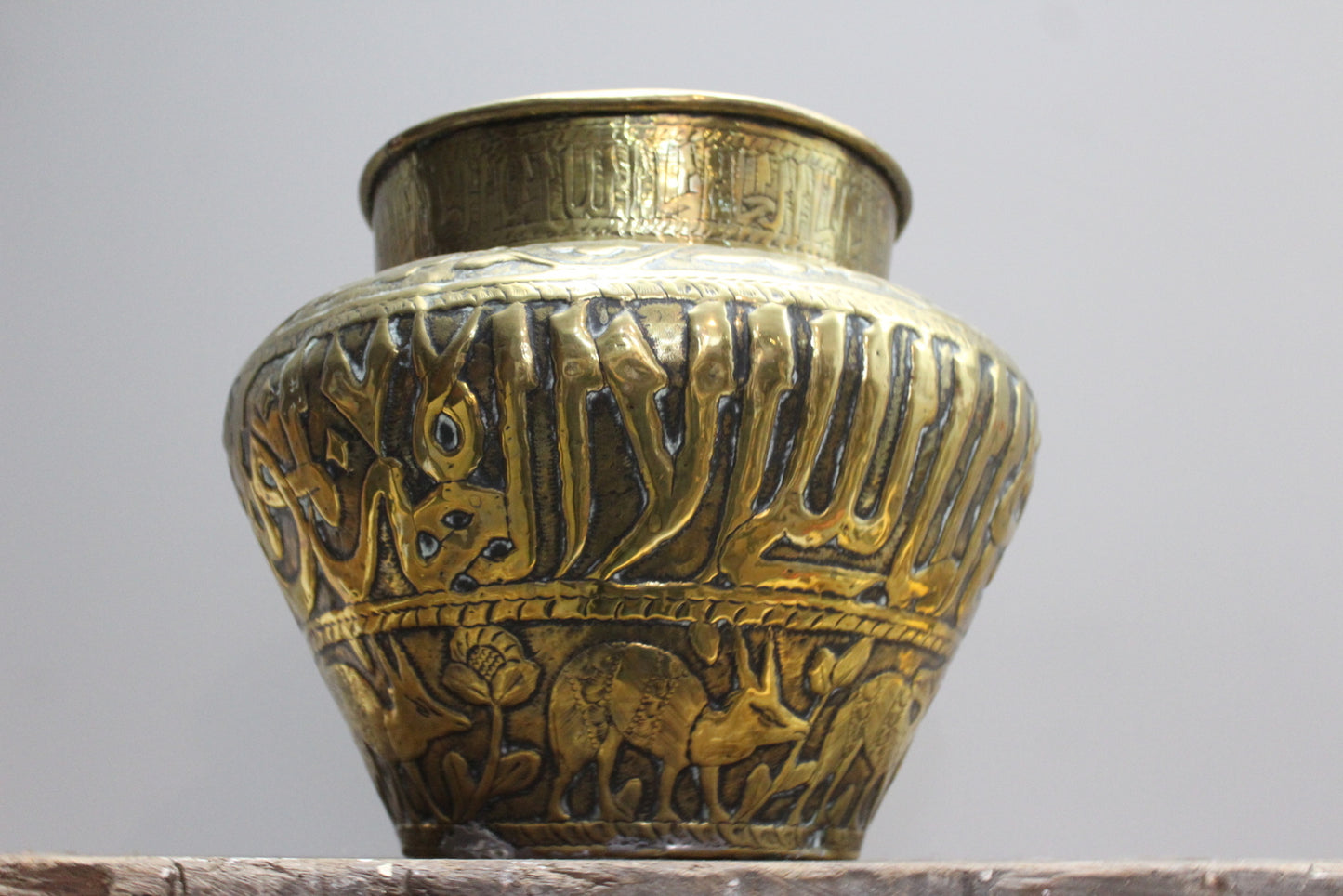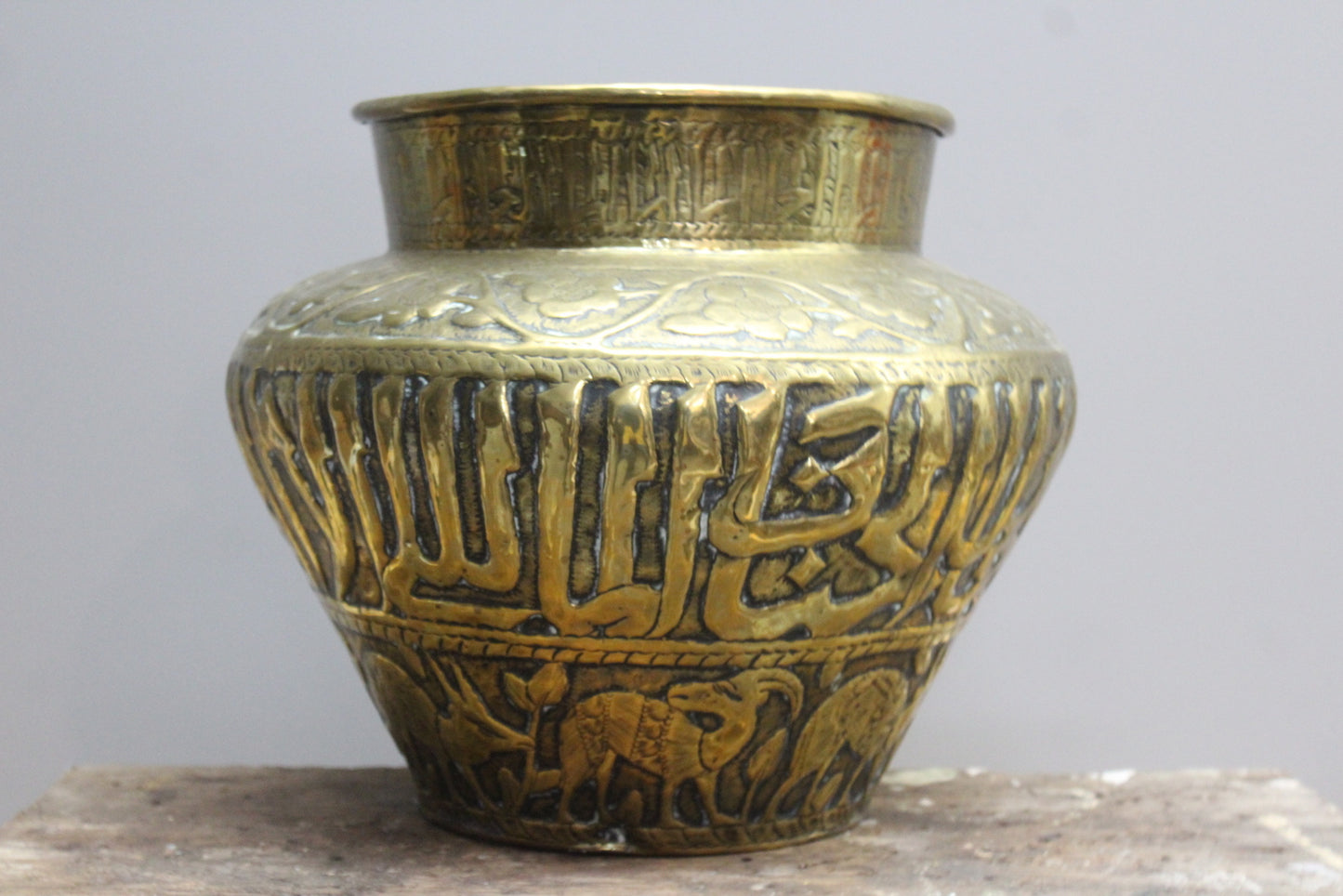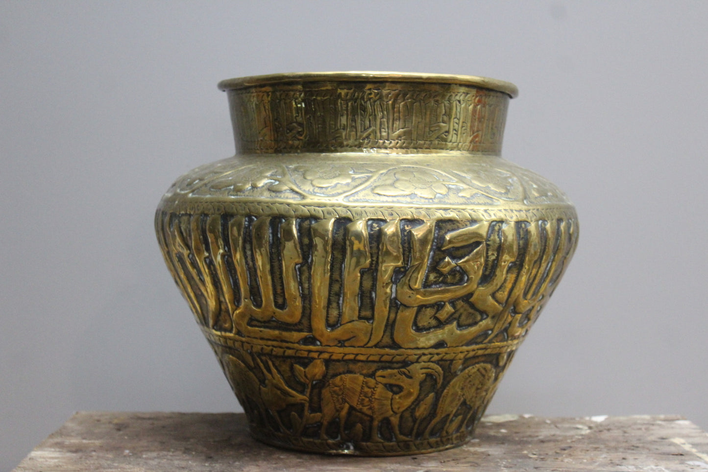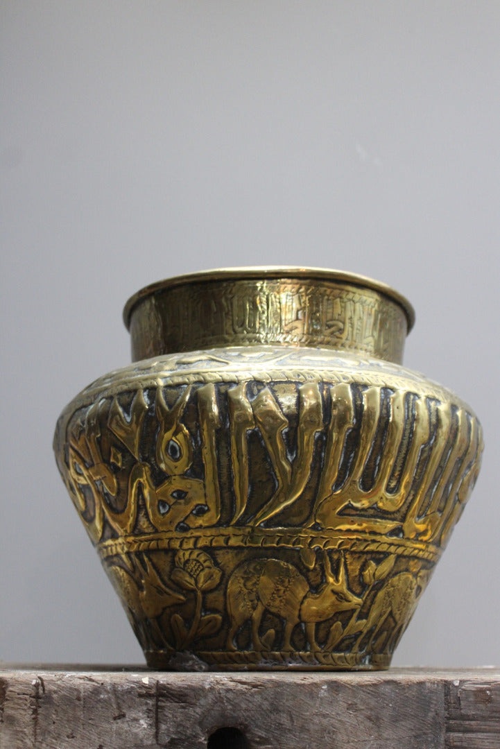 Large Brass Eastern Planter. Decorated with Flora & Fauna.