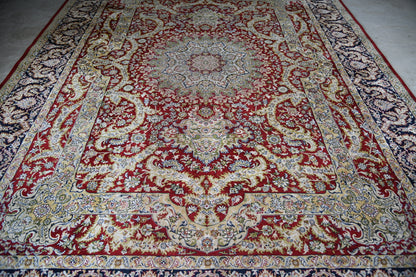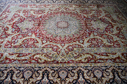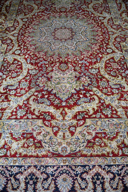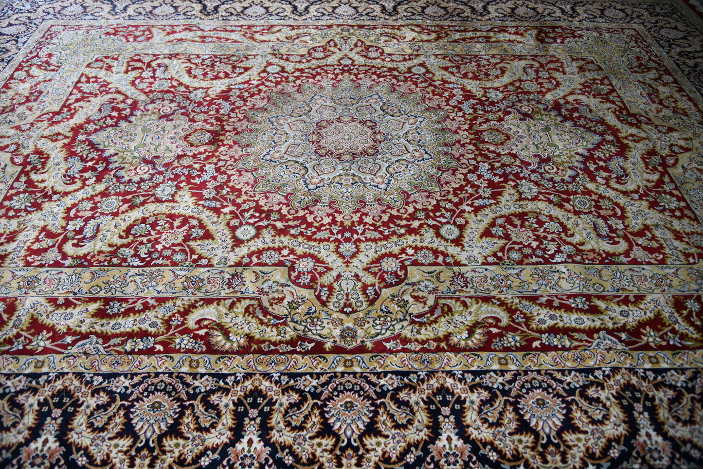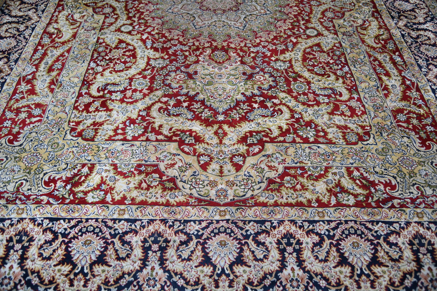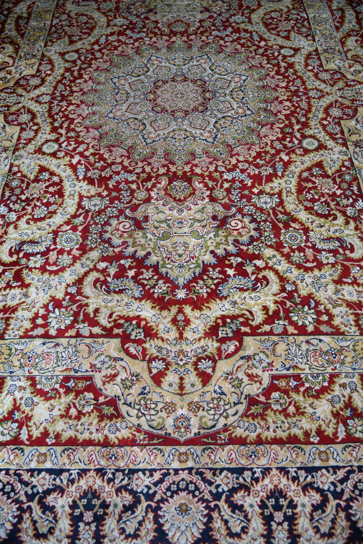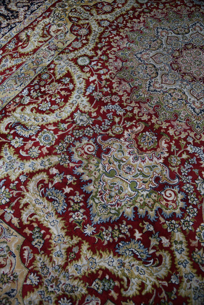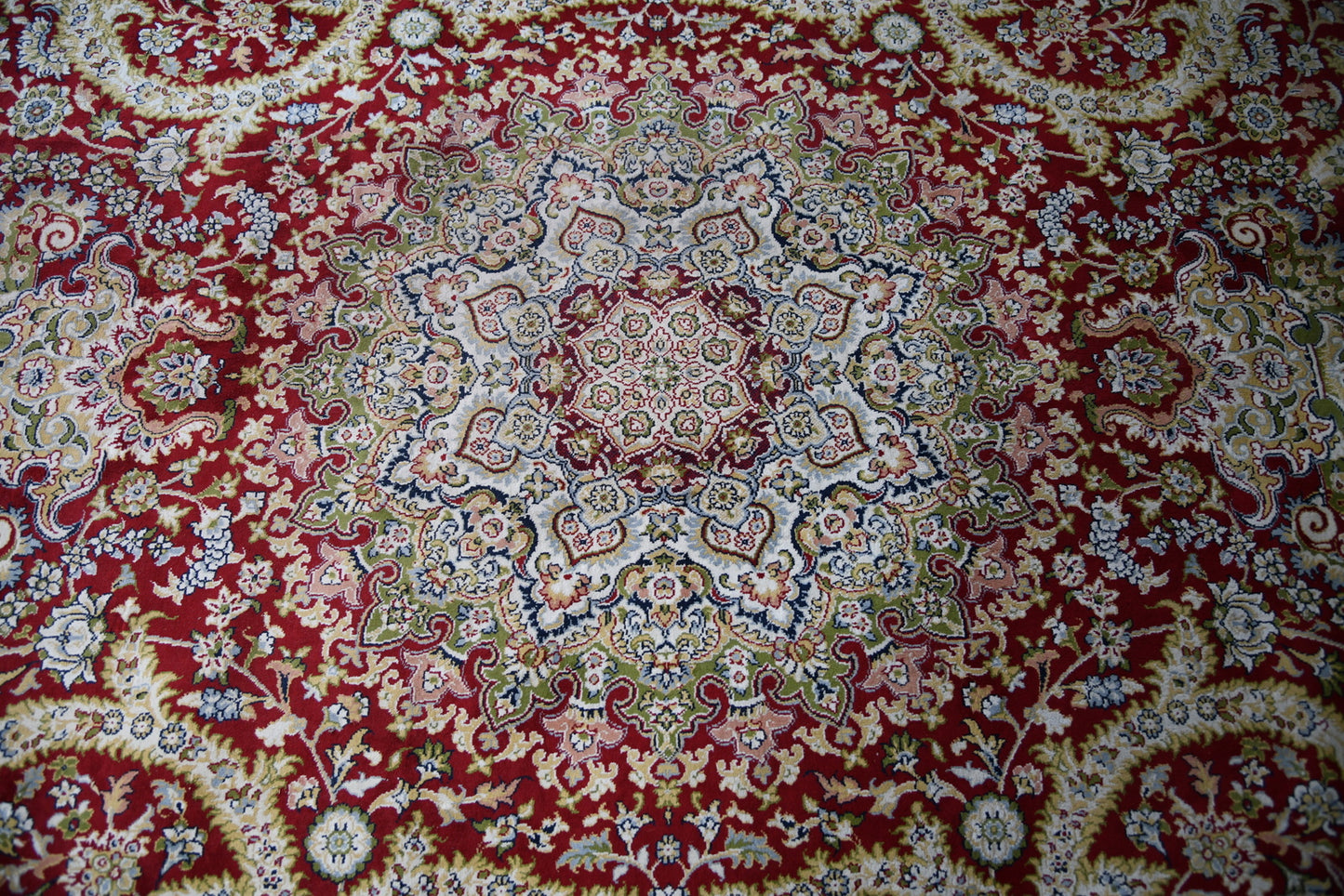 Large Indian Rug. 20th Century large Indian rectangular rug with central medallion & floral decoration on red and blue ground.