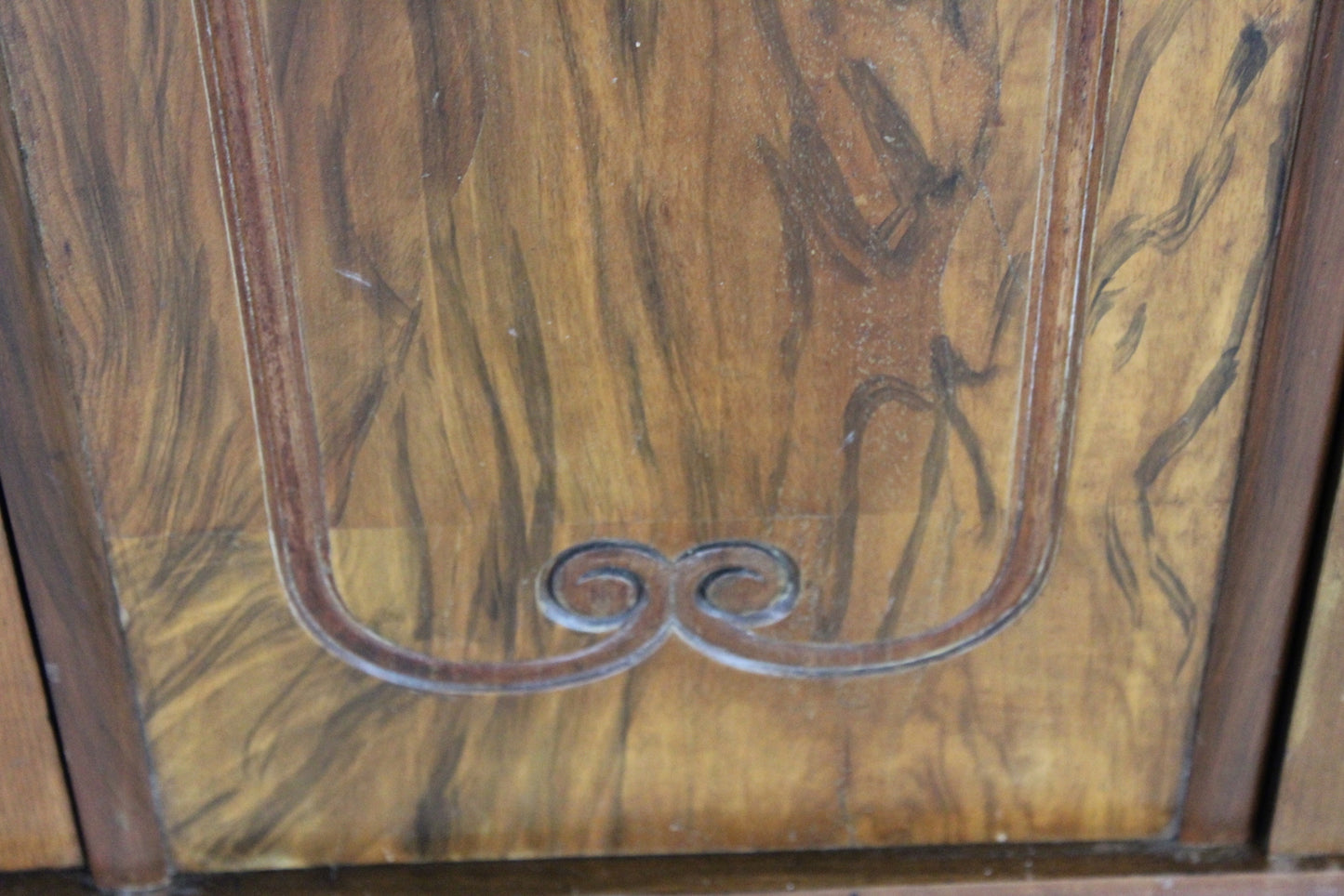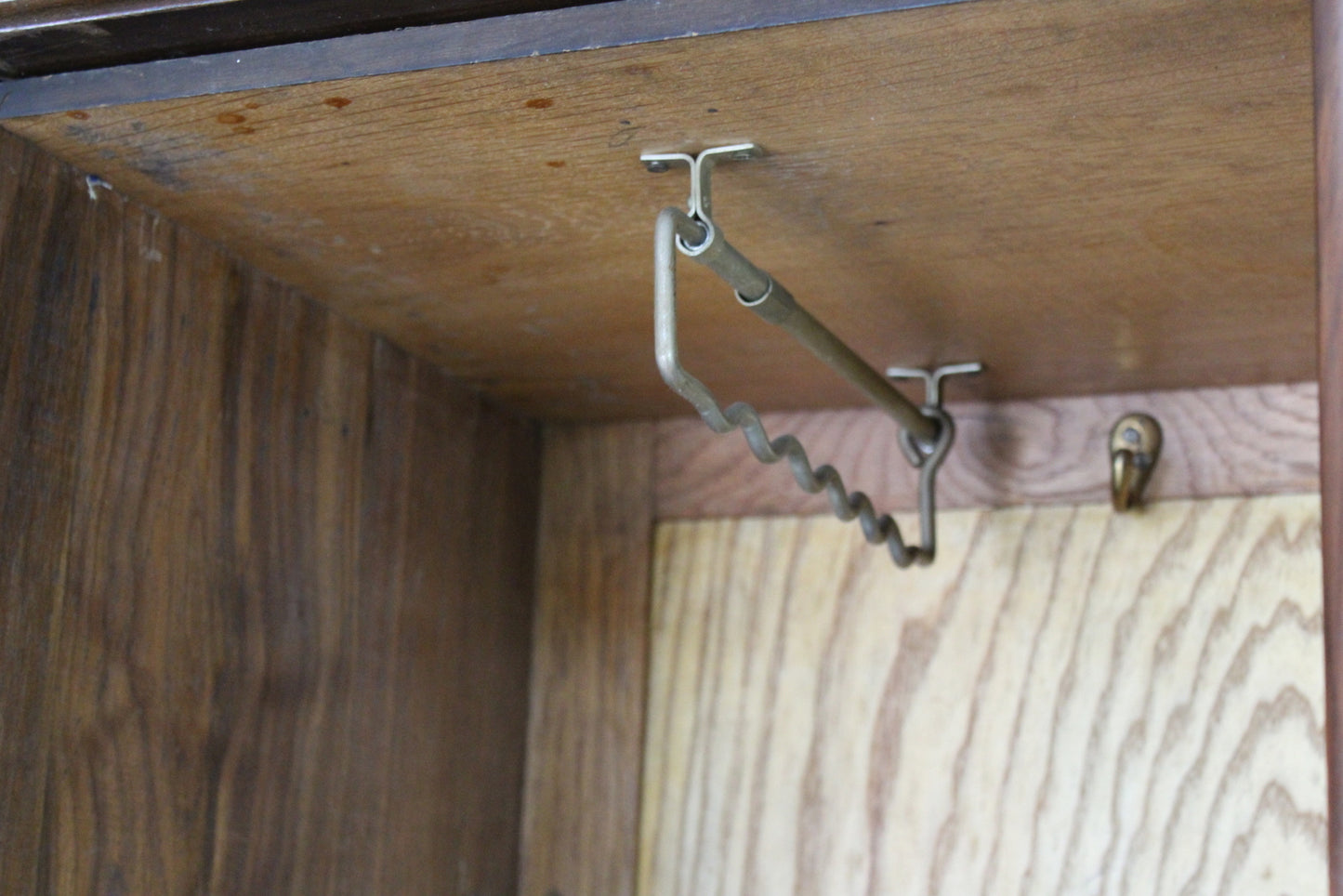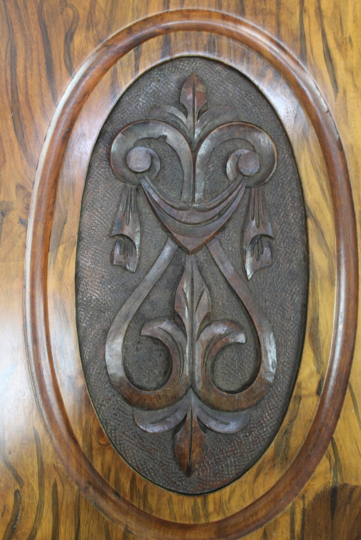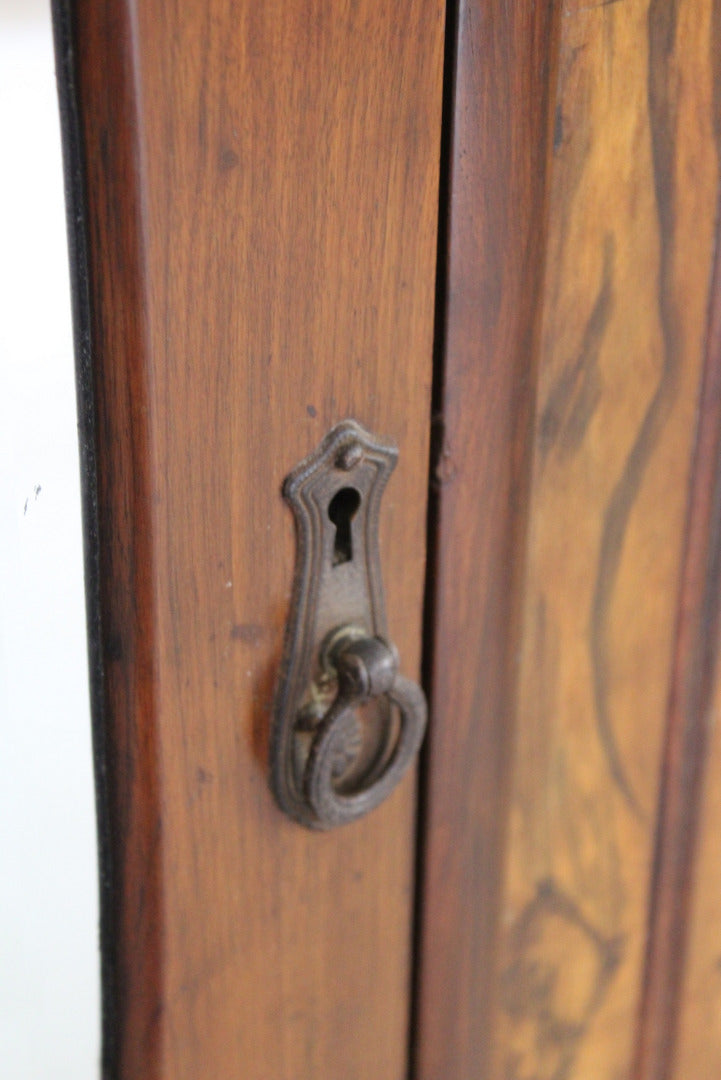 Late Victorian walnut wardrobe. Antique wardrobe, pair of doors with bevel edge oval mirror, extending internal hanging rails that run front to back, single drawer in the base.