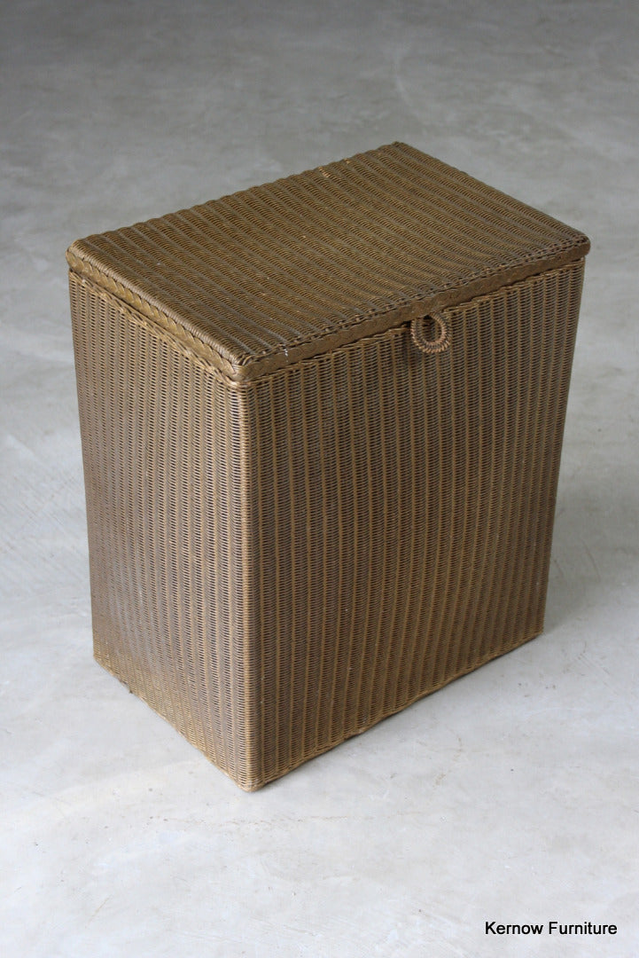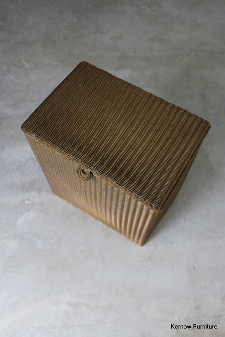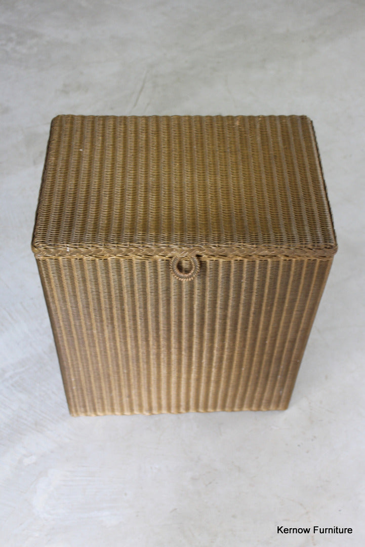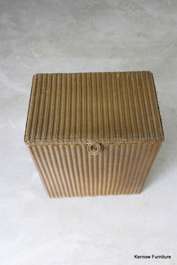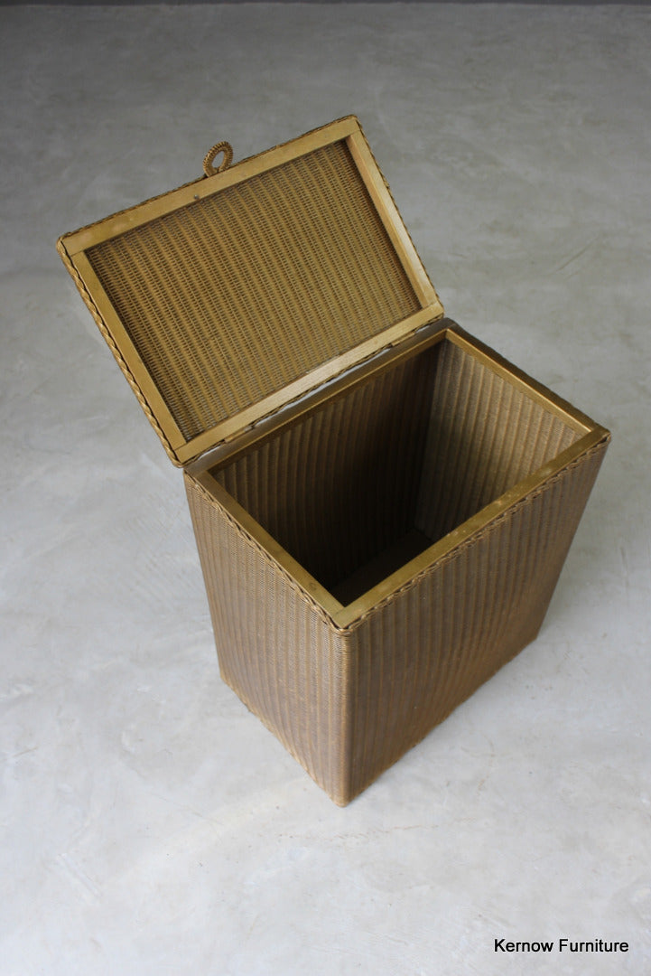 Lloyd Loom Lusty Linen Basket. Original gold finish, hinged lid.