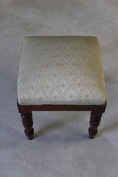 Mahogany dressing stool. Small square upholstered dressing stool on turned mahogany legs.
