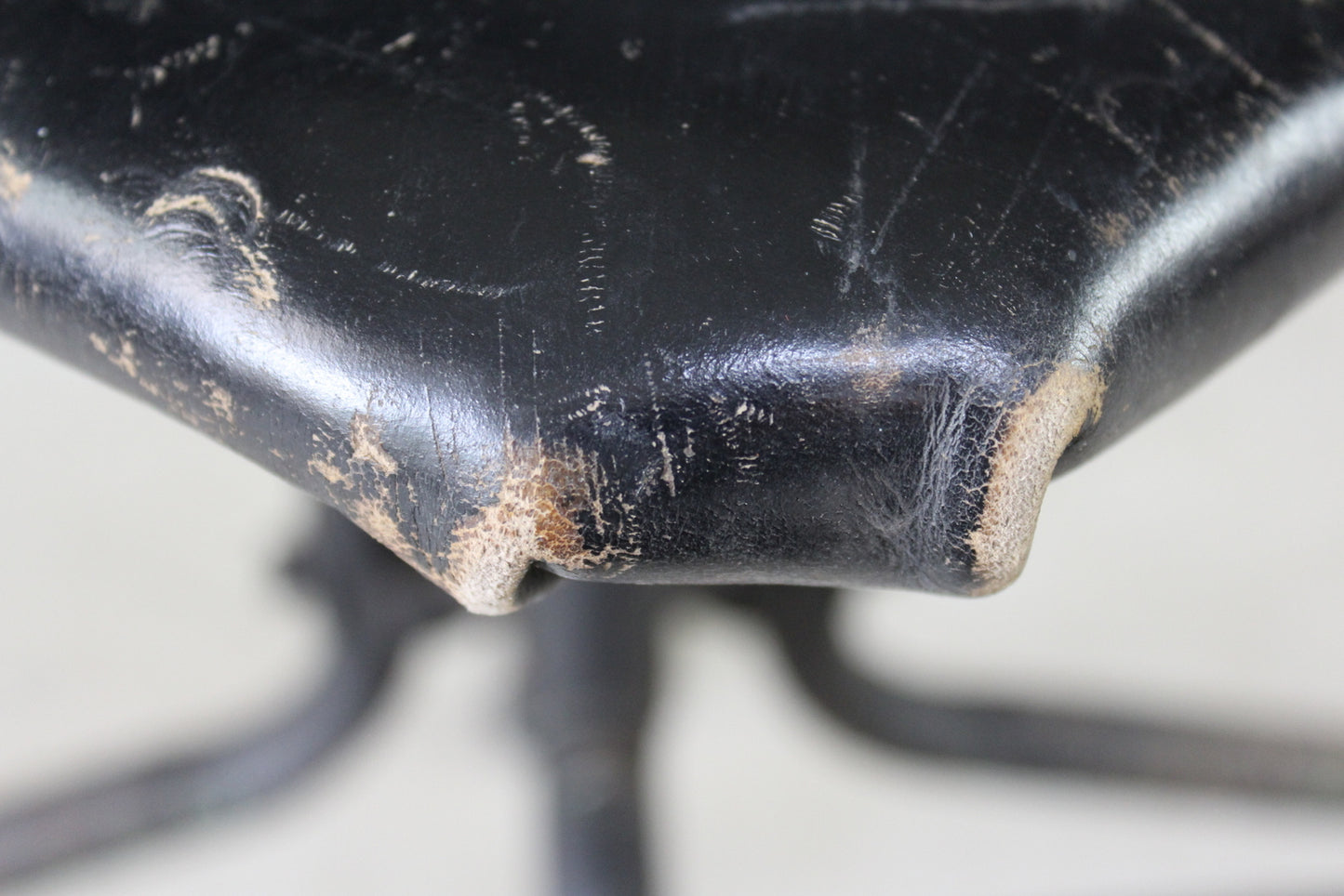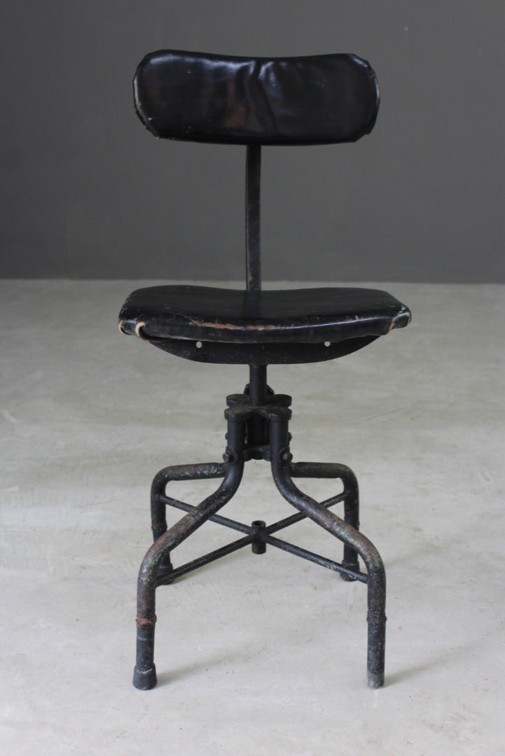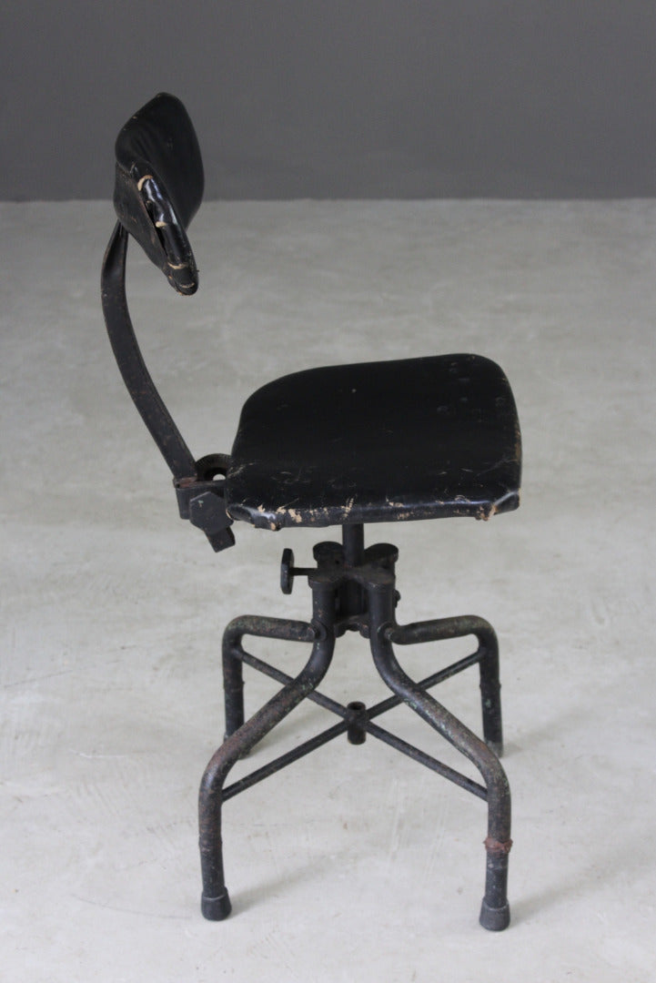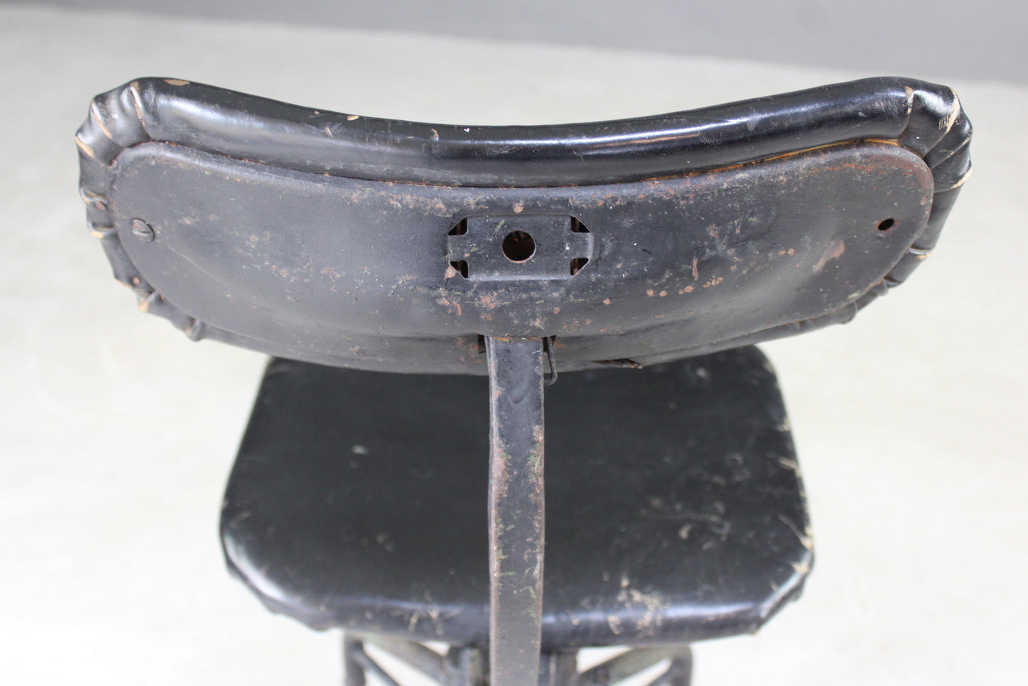 Mid Century Machinist Chair. Steel frame tall work chair with later black leather to the seat and back.