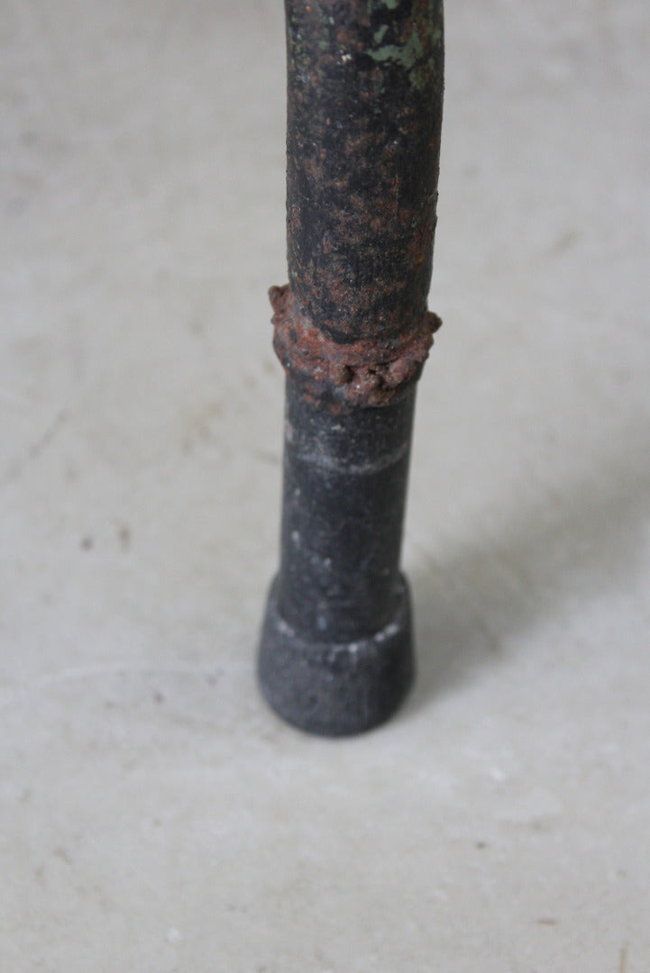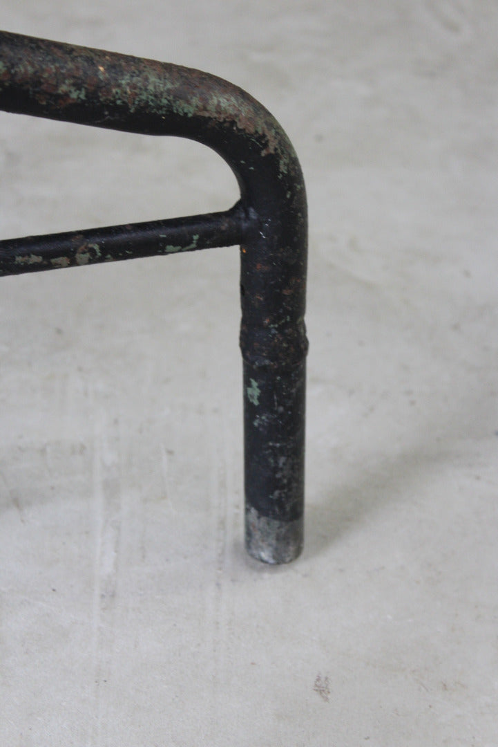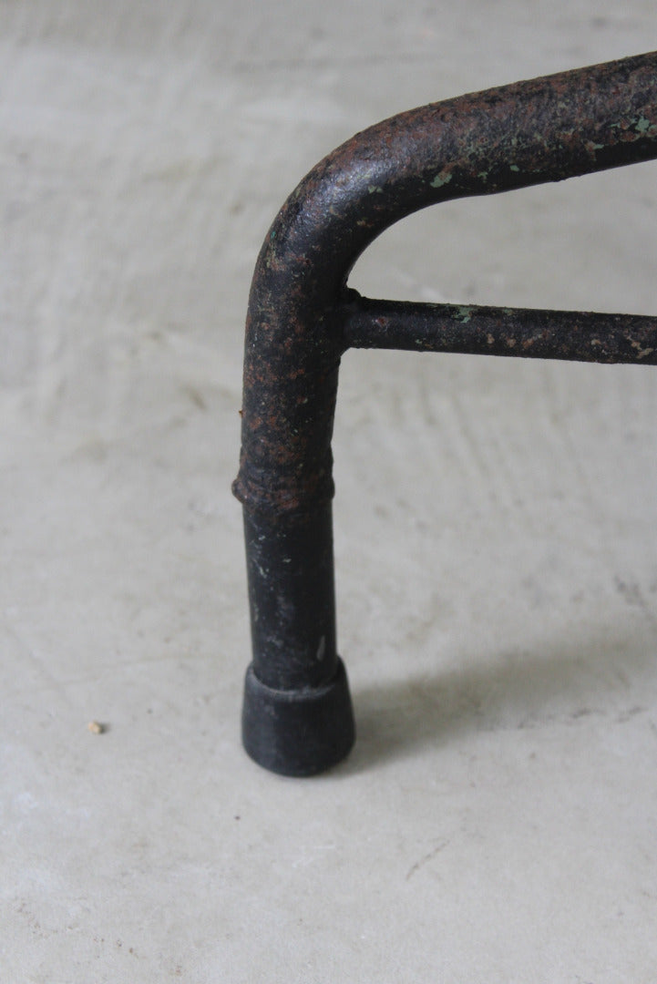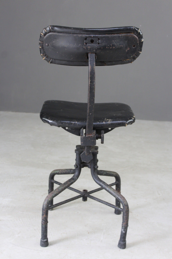 Mid Century Machinist Chair. Steel frame tall work chair with later black leather to the seat and back.