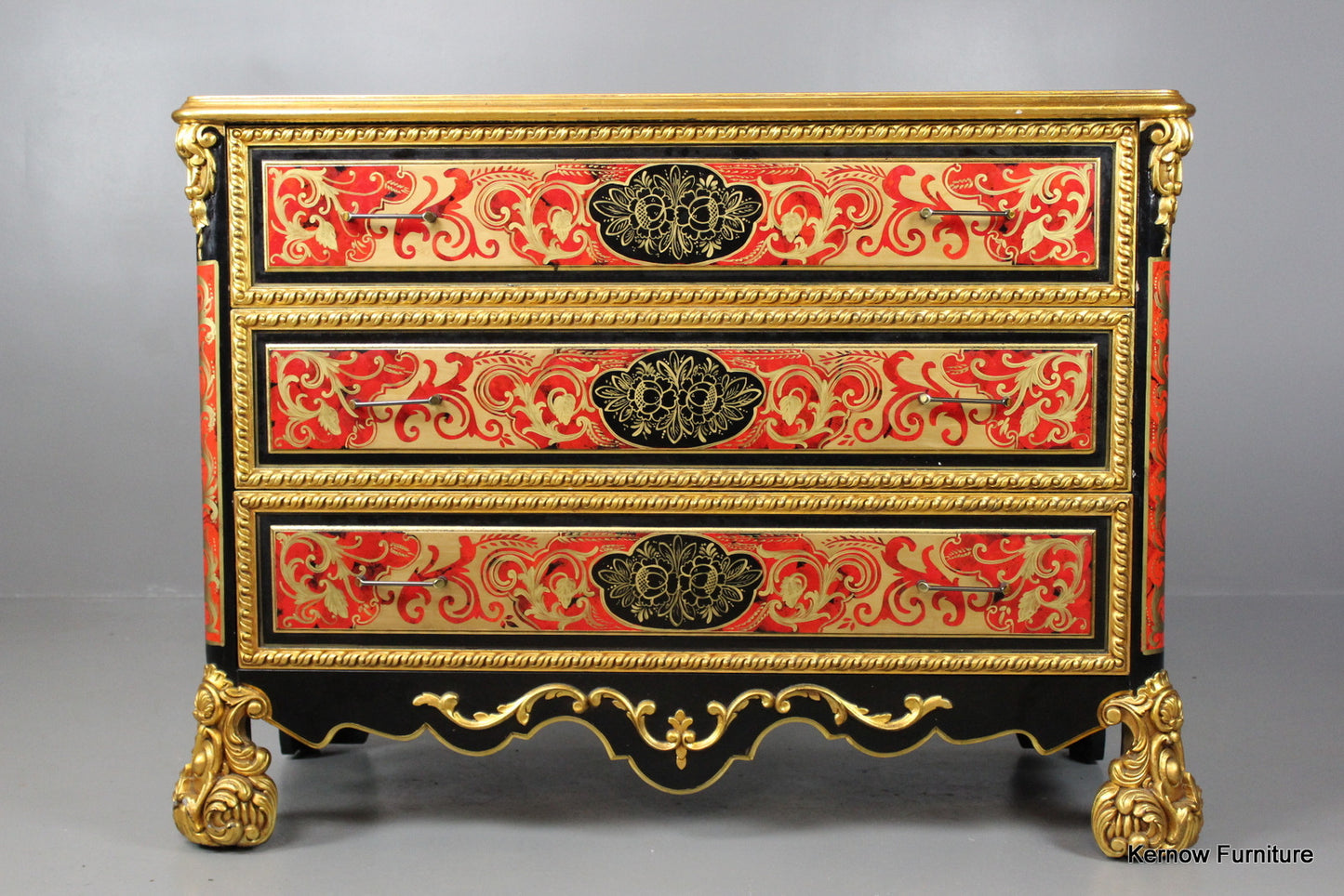 Late 20th Century ornate gilt handpainted chest of 3 drawers.