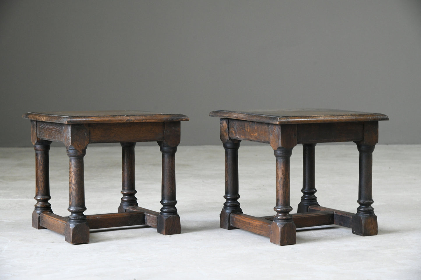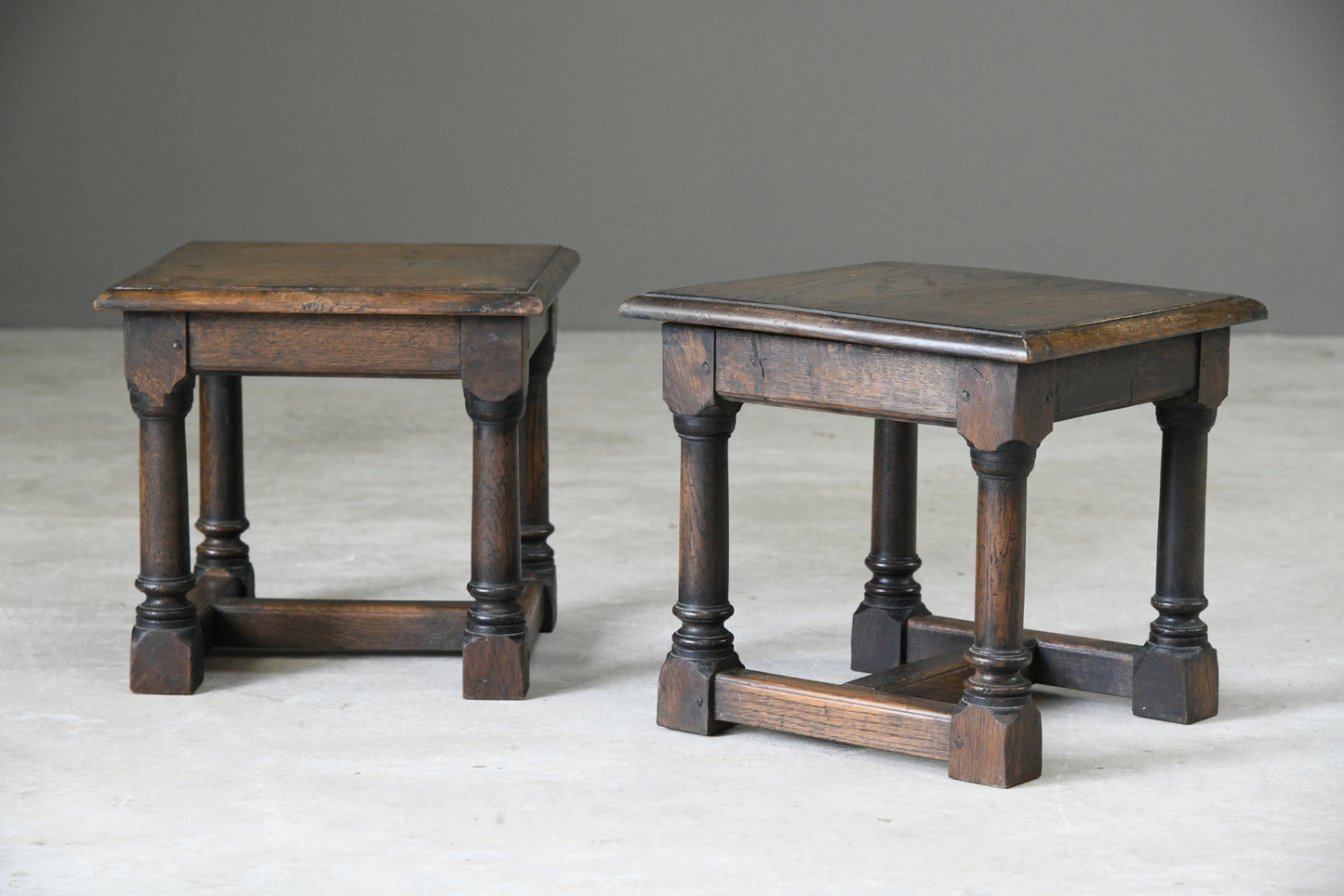 Pair 17th Century Style Oak Side Tables