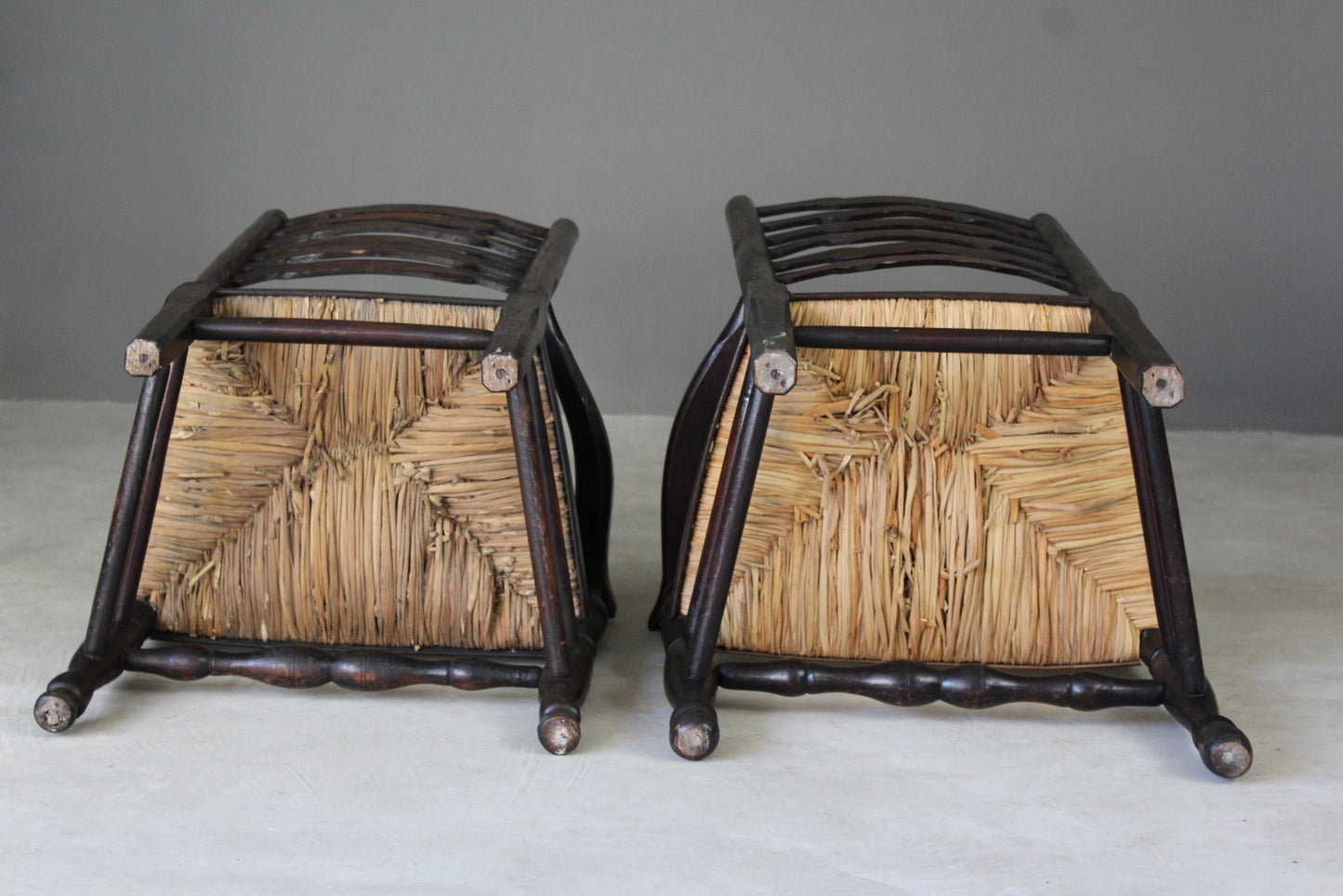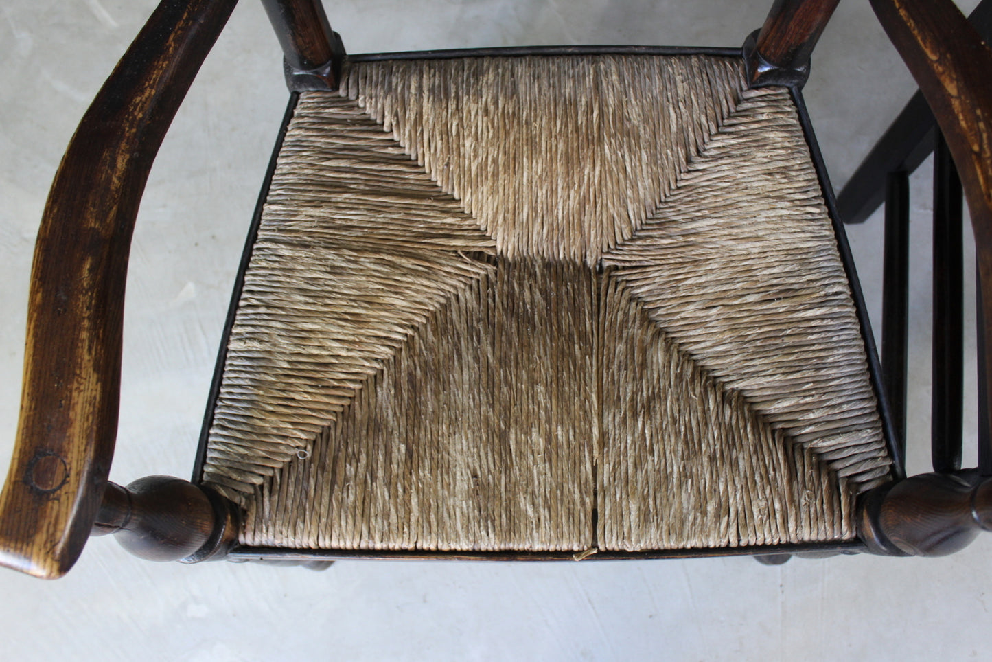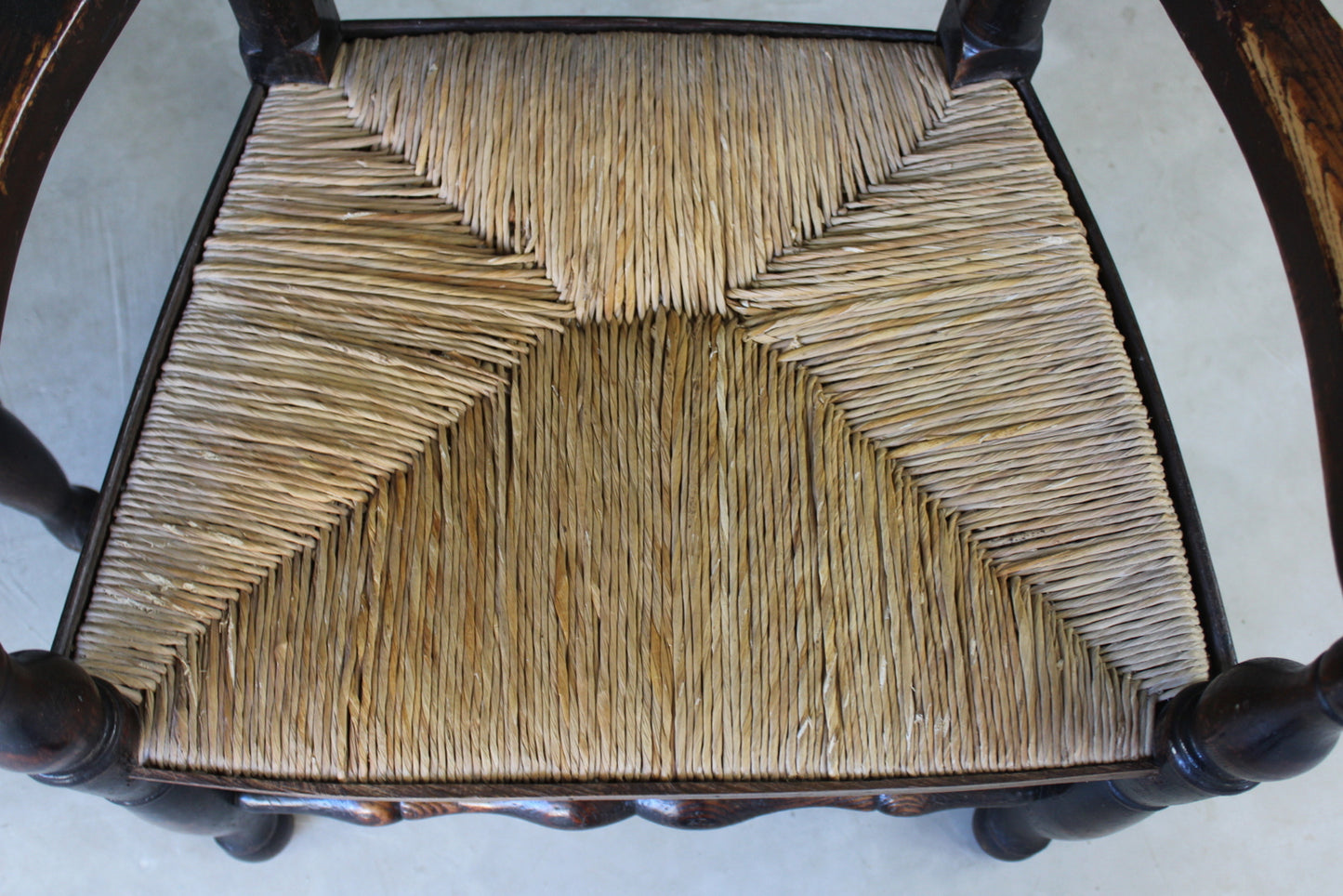 Pair antique elm ladderback carver chairs. Victorian elm ladderback carver chairs with rush seat on turned legs. Find more antique dining chairs here.