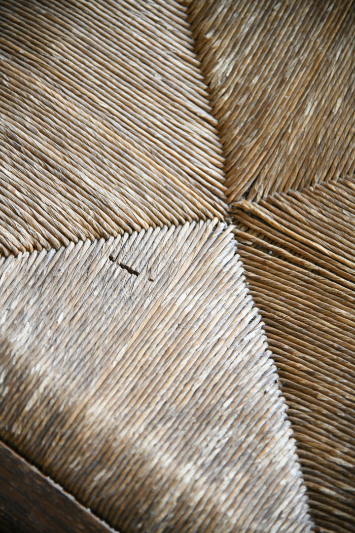 Pair Arts & Crafts Dining Chairs. Pair Early 20th Century Oak Dining Chairs in Arts & Crafts Style. Each with a rectangular back with vertical splats and woven rush drop-in seat, raised on square legs united by stretchers.