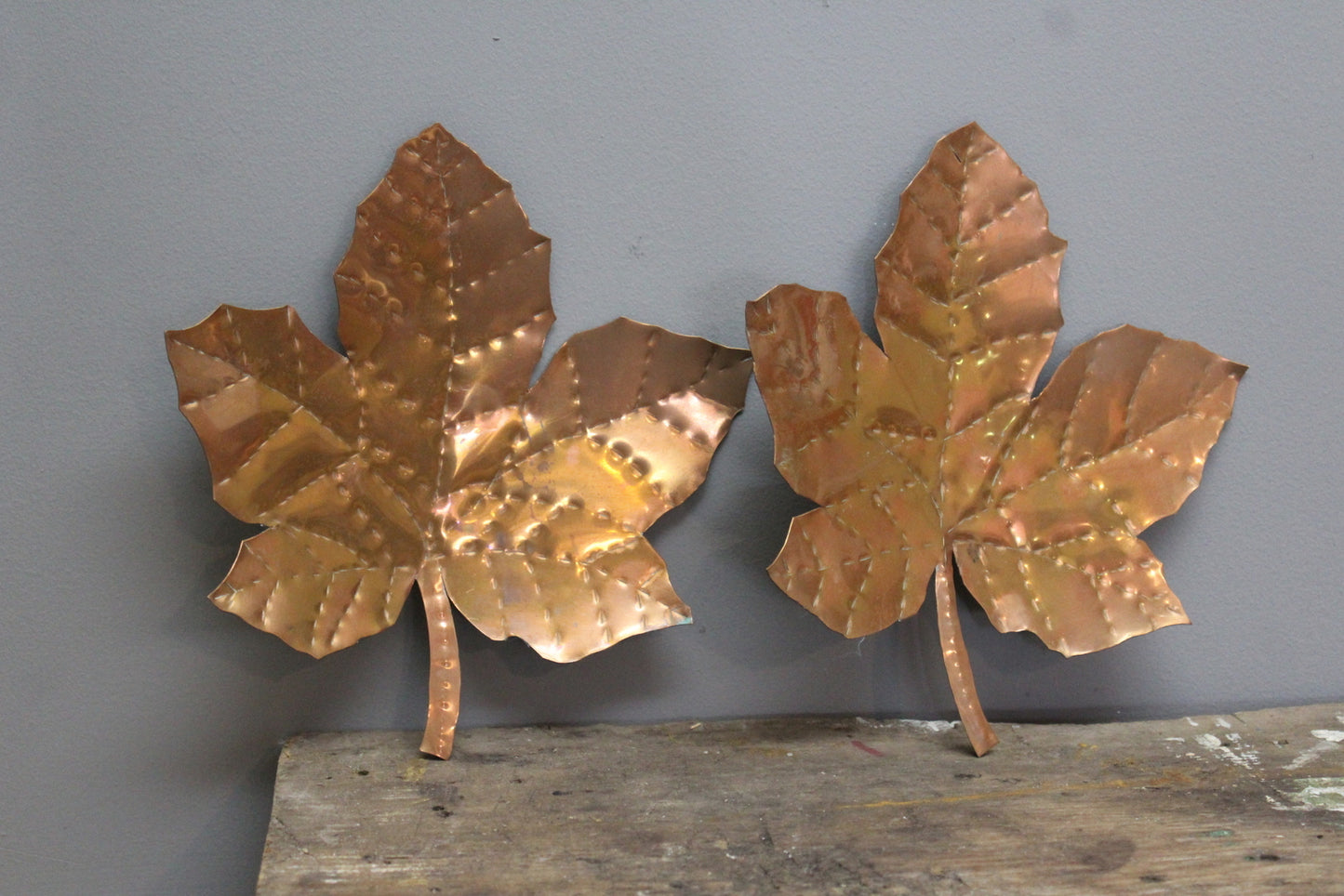 Pair Decorative Copper Leaves