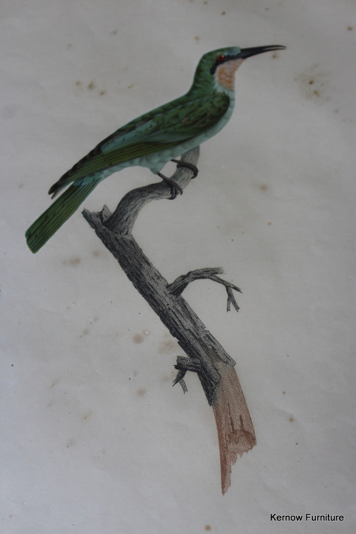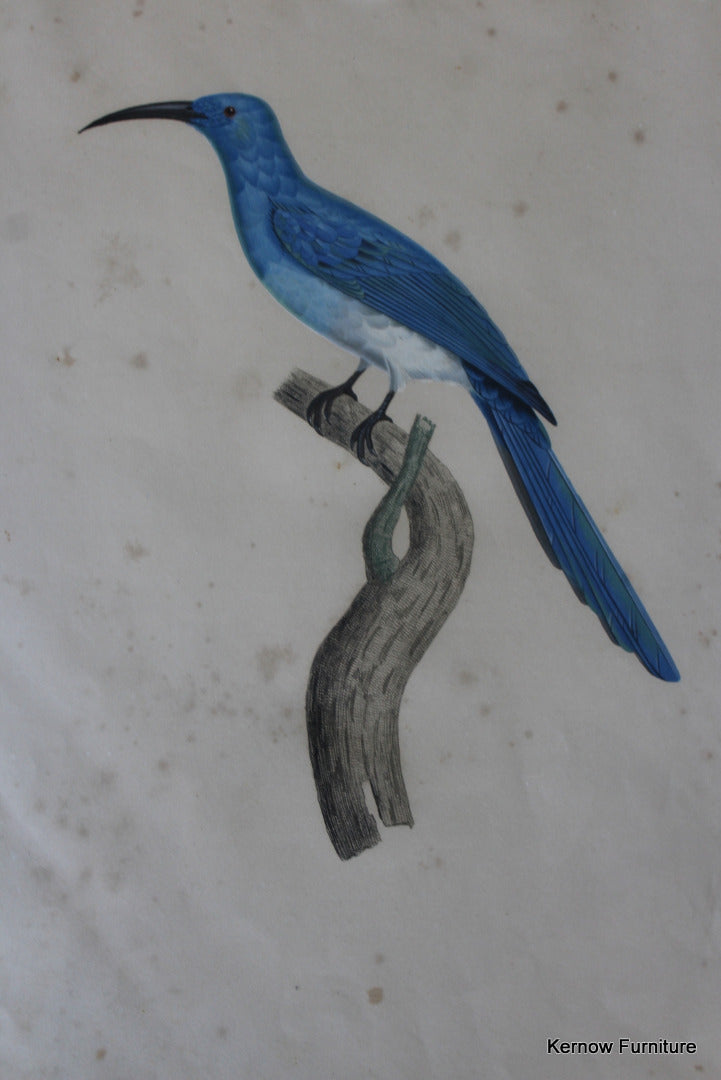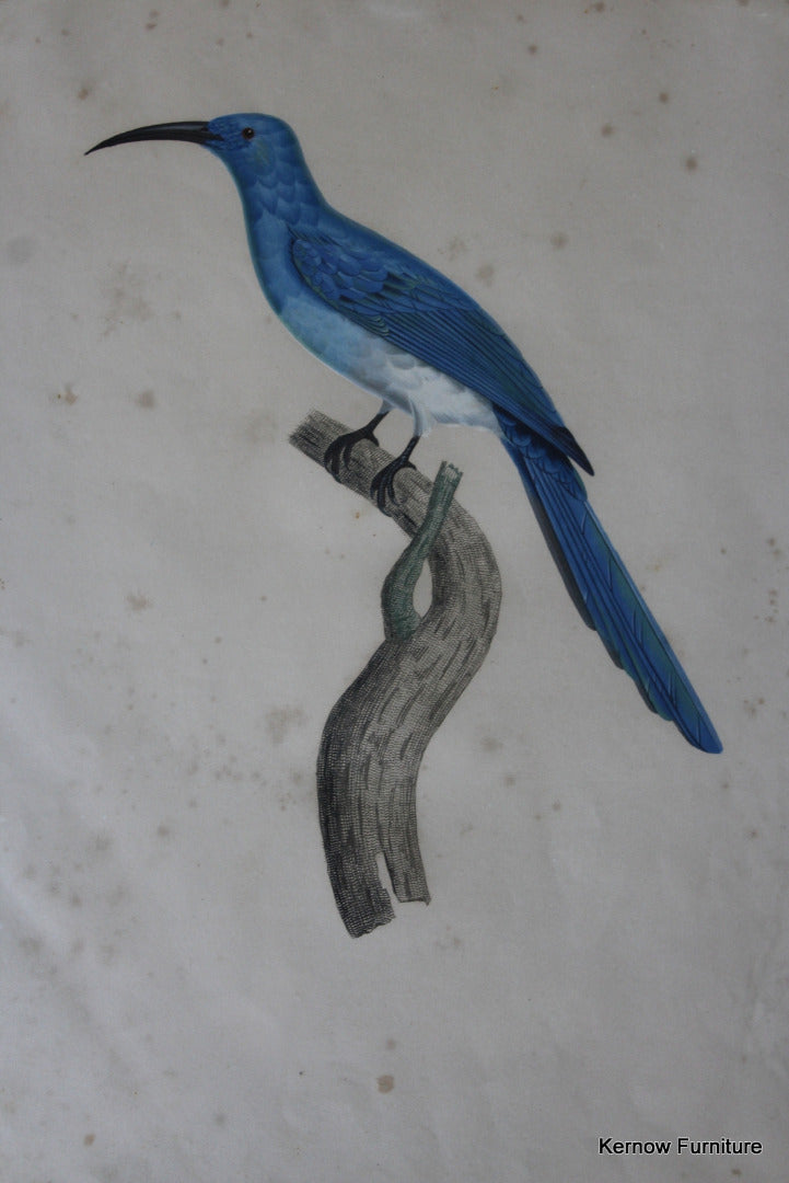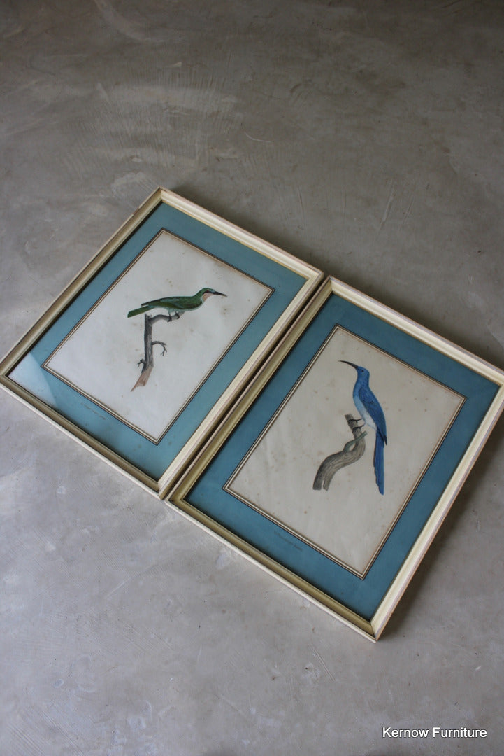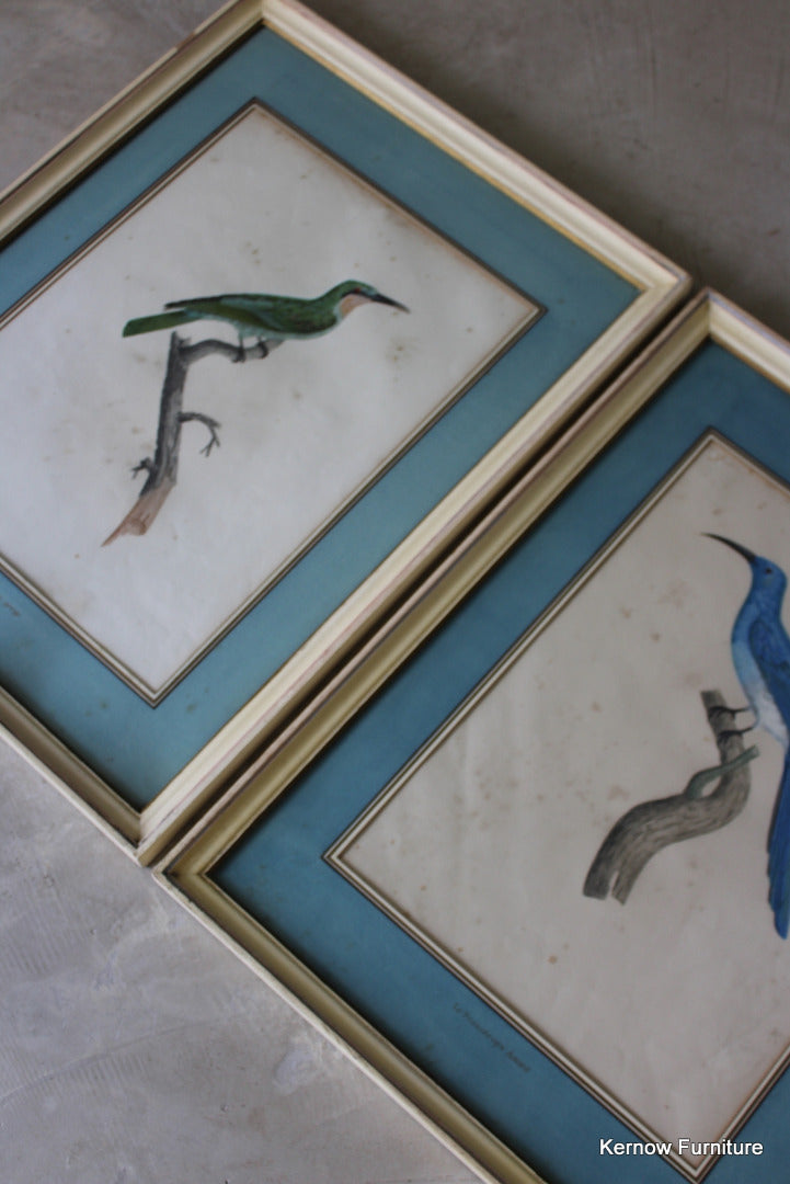Pair Framed French Bird Engravings. Antique hand coloured engravings of exotic birds.