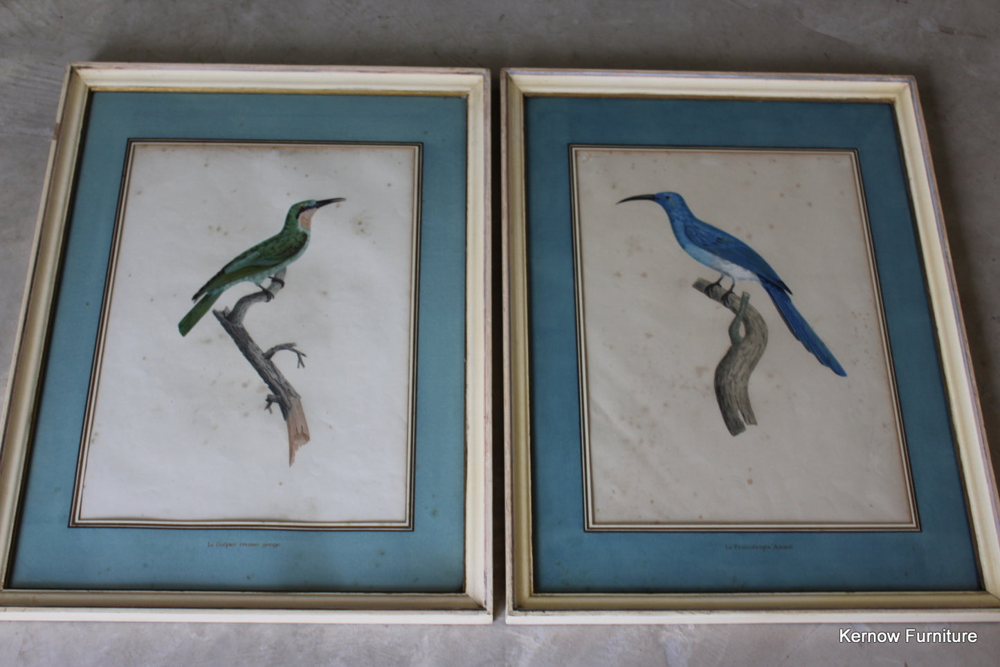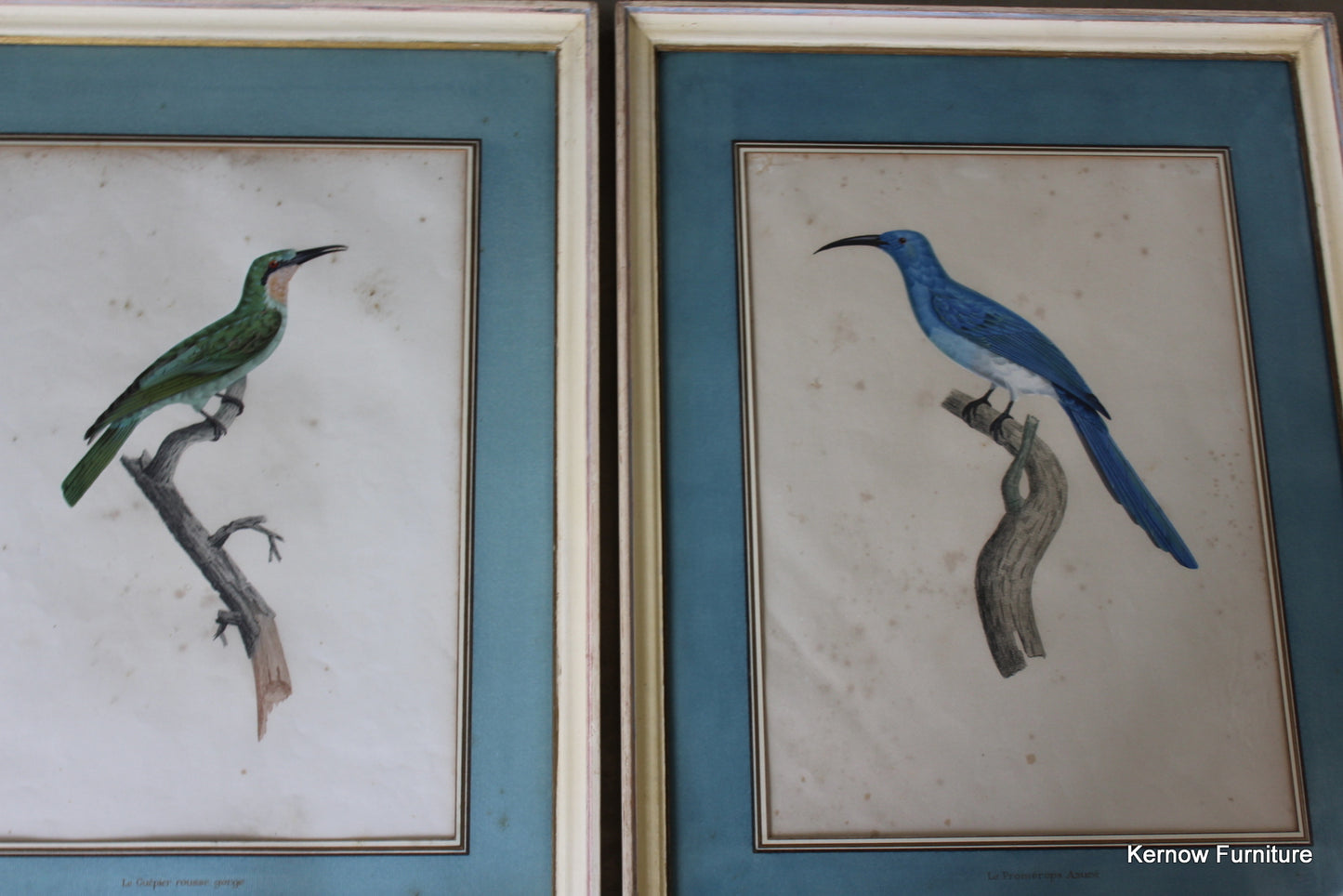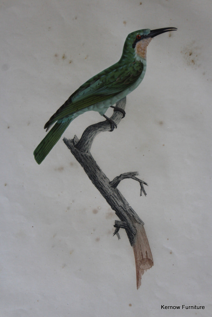Pair Framed French Bird Engravings. Antique hand coloured engravings of exotic birds.