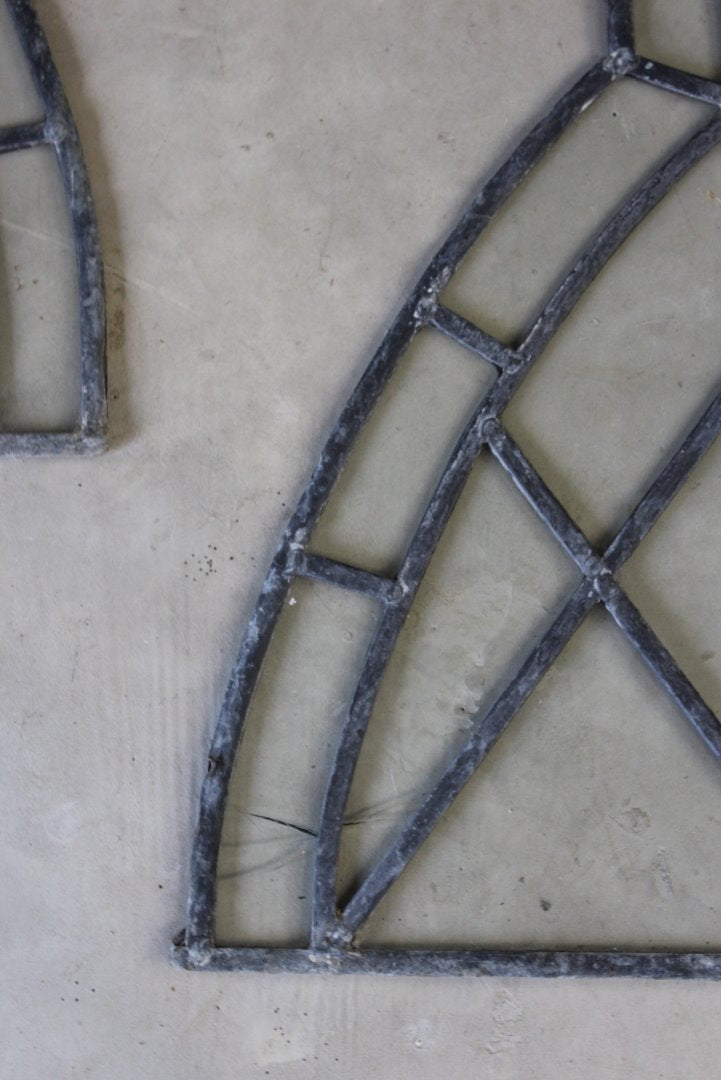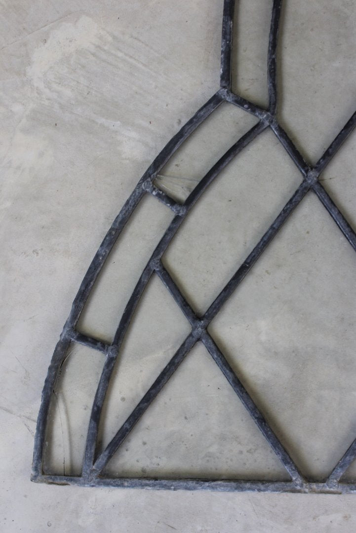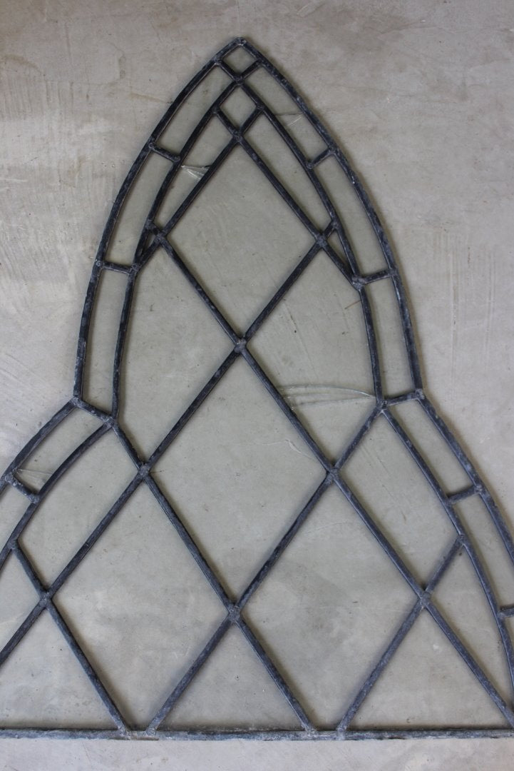 Pair gothic lead glazed windows. Pair antique arched shaped lead windows with clear glass panels.