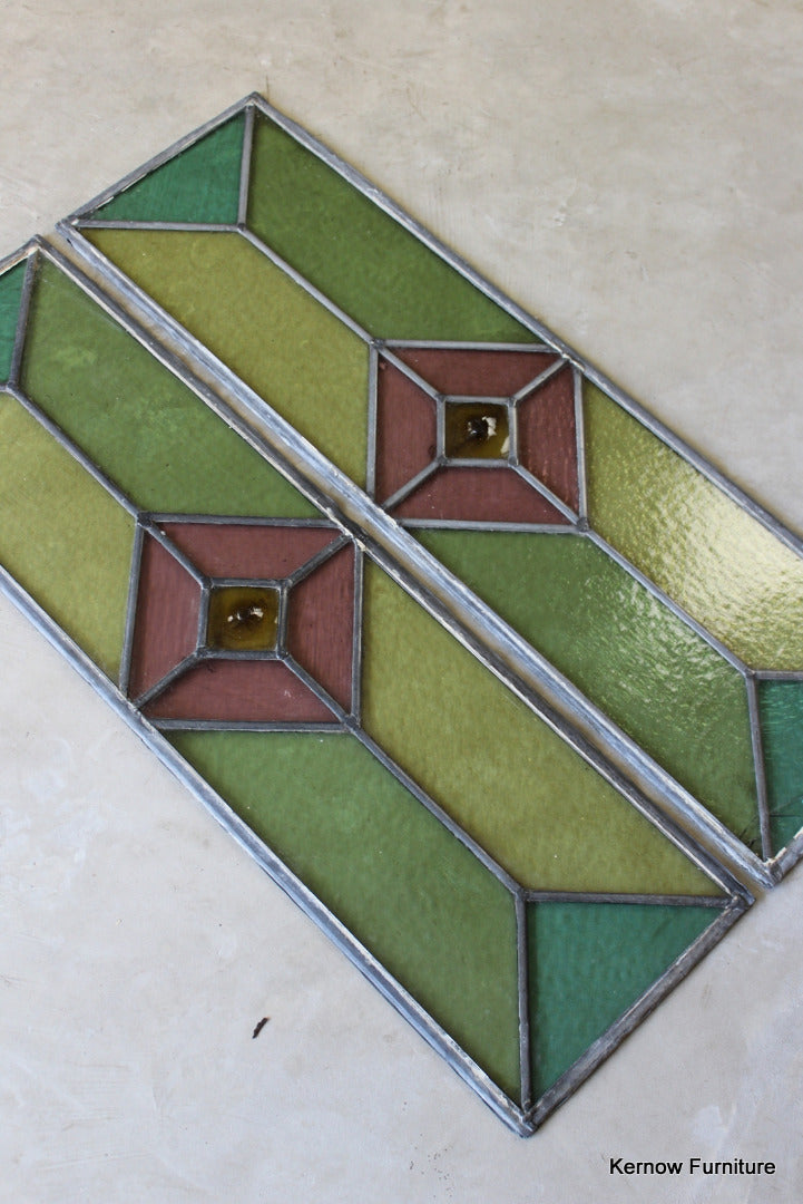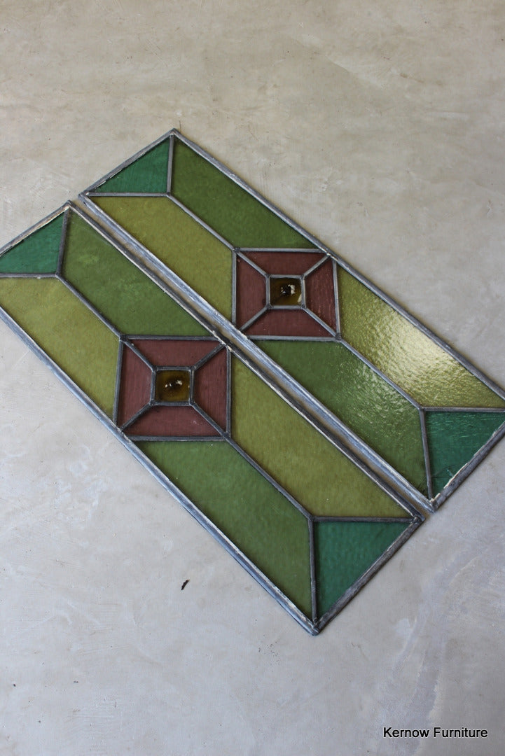 Pair Large Stained Glass Panes
