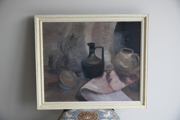 Pair Mid 20th Century Still Life. Pair of Mid 20th Century still life, studies of jugs and flowers, oil on canvas, unsigned, framed at John Mathieson & Co, Edinburgh.