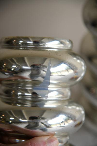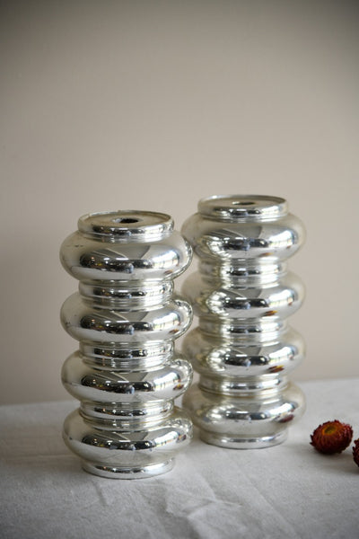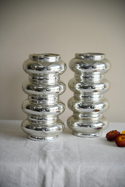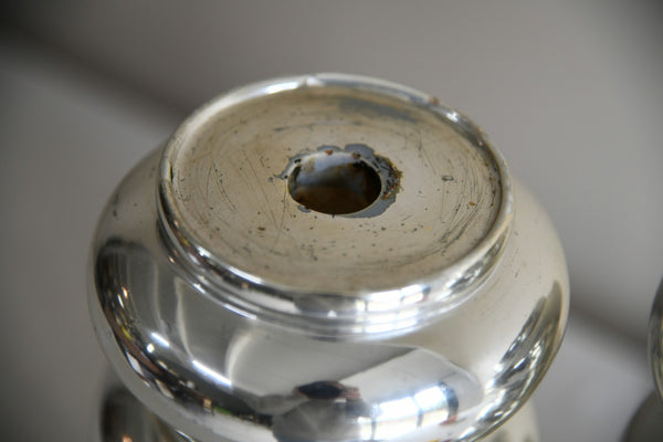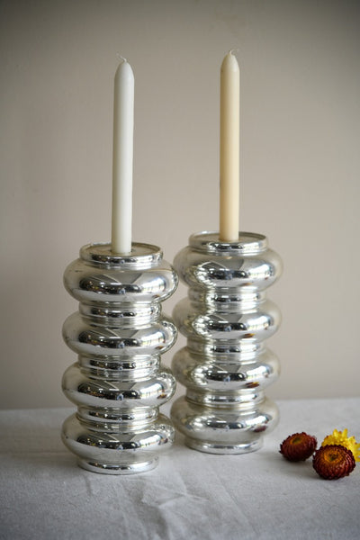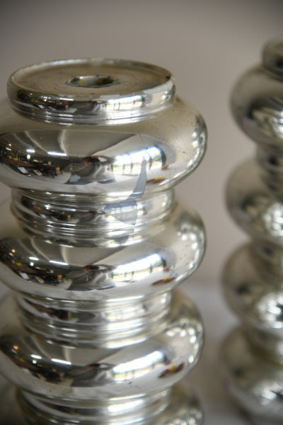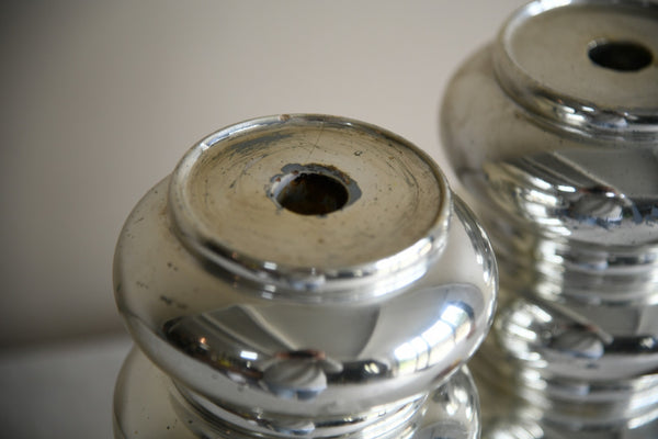 Pair Silvered Glass Candlesticks. Pair late 20th Century large glass candlesticks with silvered finish.