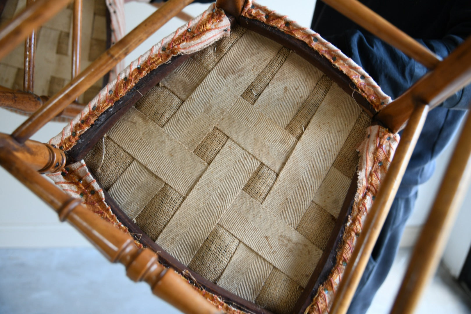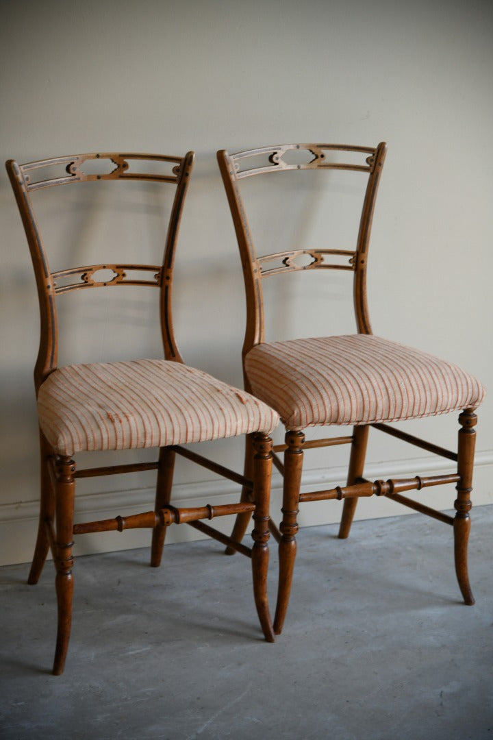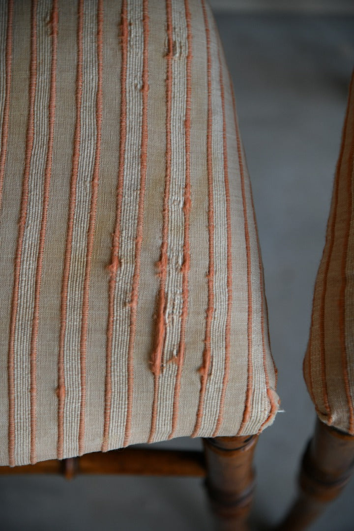 Pair Victorian occasional chairs. Pair of Victorian beech frame occasional chairs with upholstered seat on turned splayed legs.