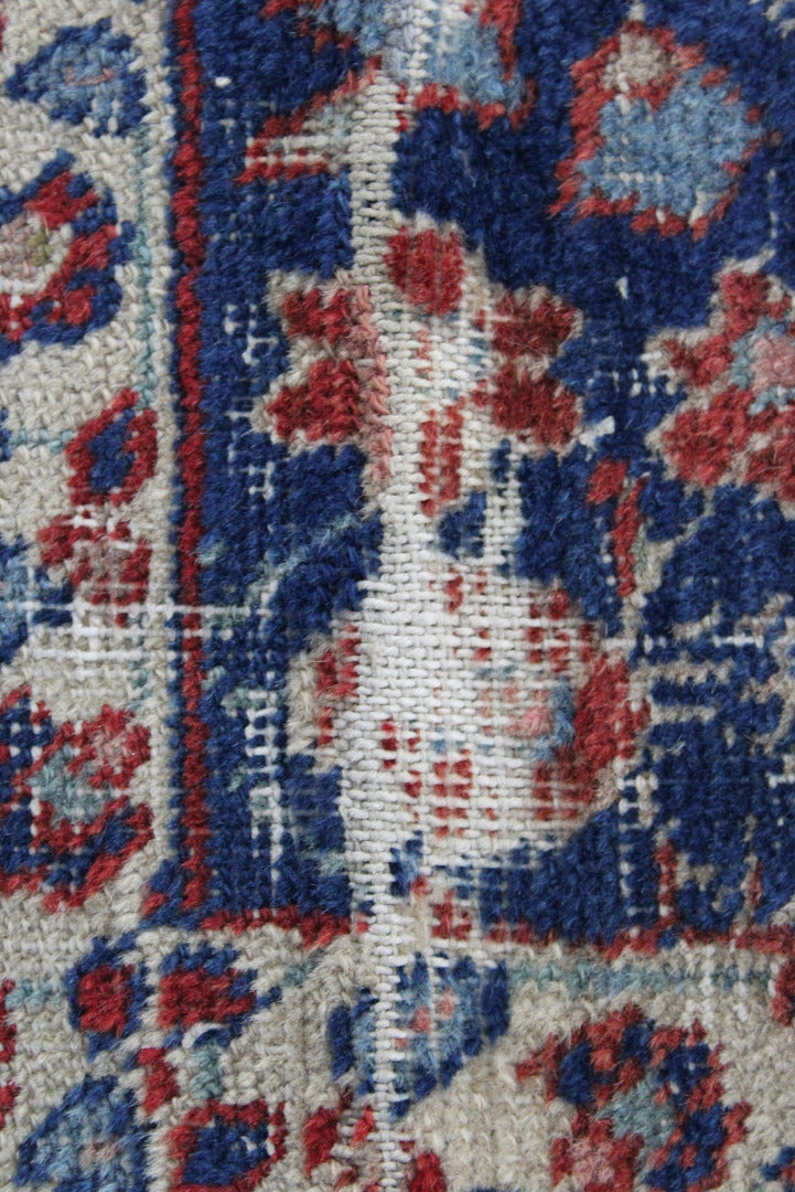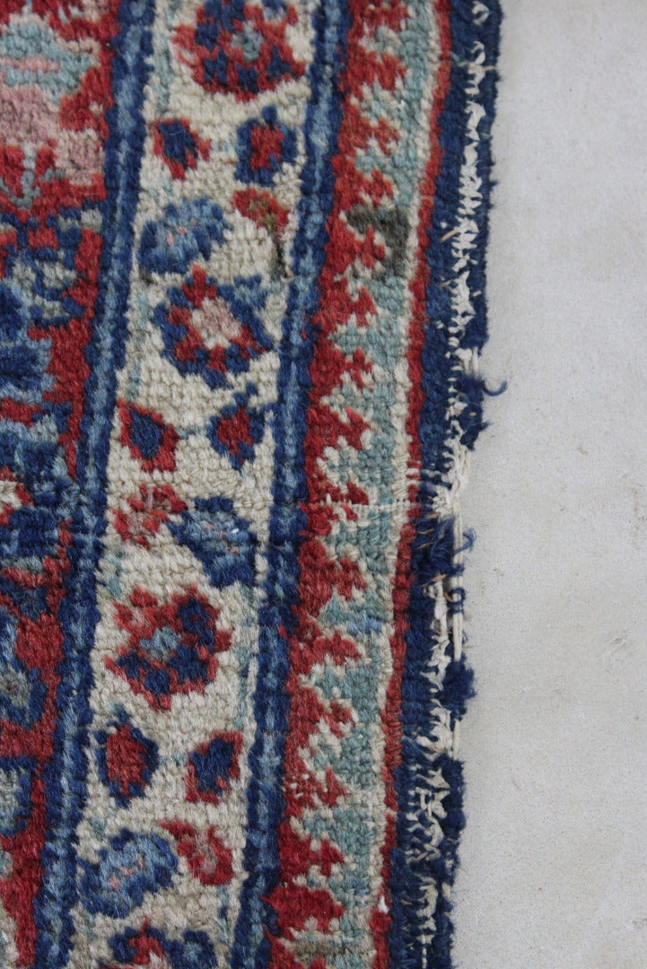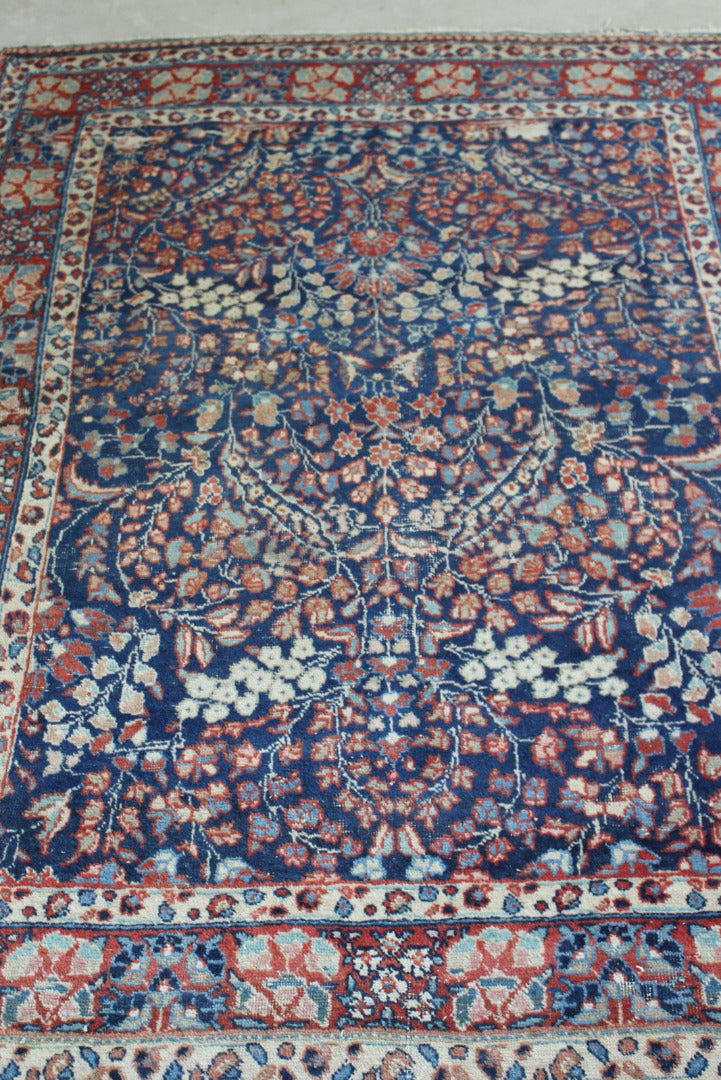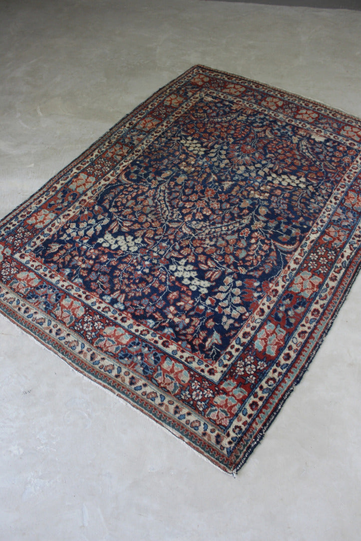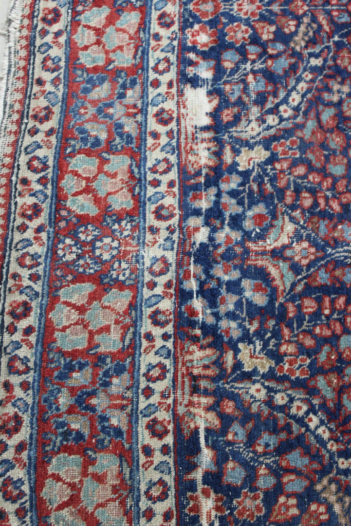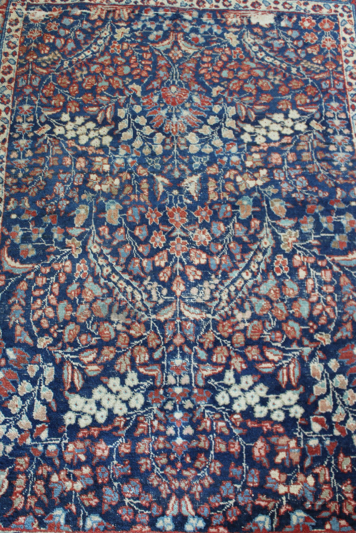 Persian Rug. Well worn Persian wool rug, blue ground with floral centre.