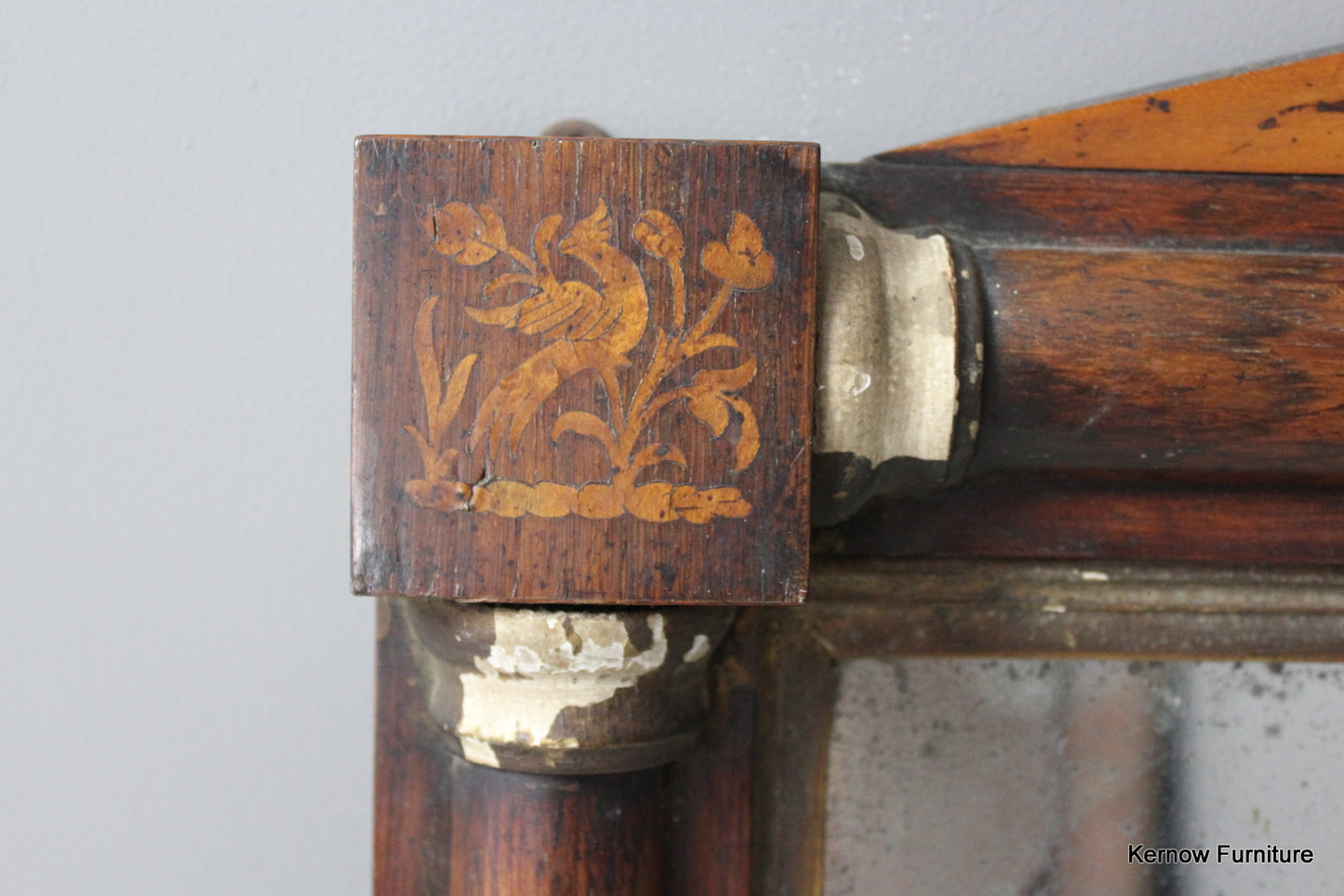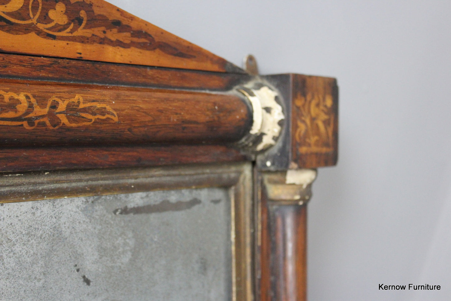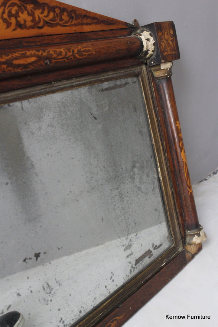 Regency marquetry mirror. Antique overmantle mirror with mahogany frame & ornate floral decorative inlay & original glass.